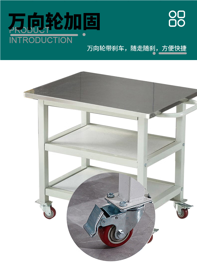 Zhang Shi Yijia double-layer 201 stainless steel workbench movable wheeled production line turnover trolley operating table packing table 60*80*75