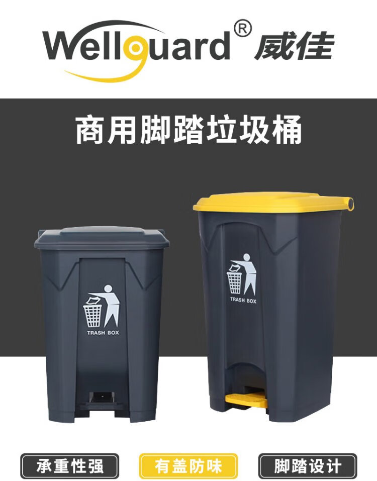 Weijia 80L commercial large trash can large foot pedal large capacity property kitchen hotel outdoor trash can with lid gray