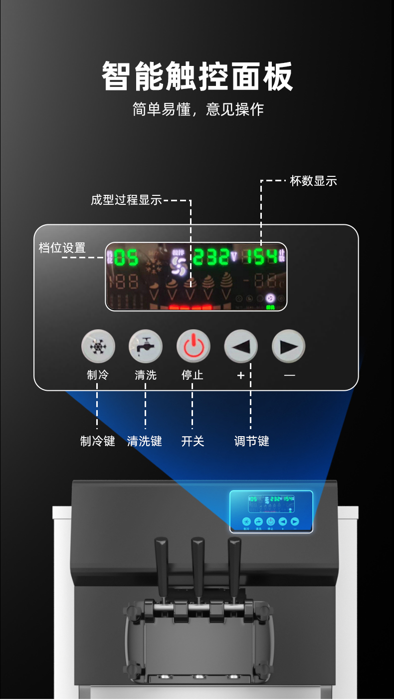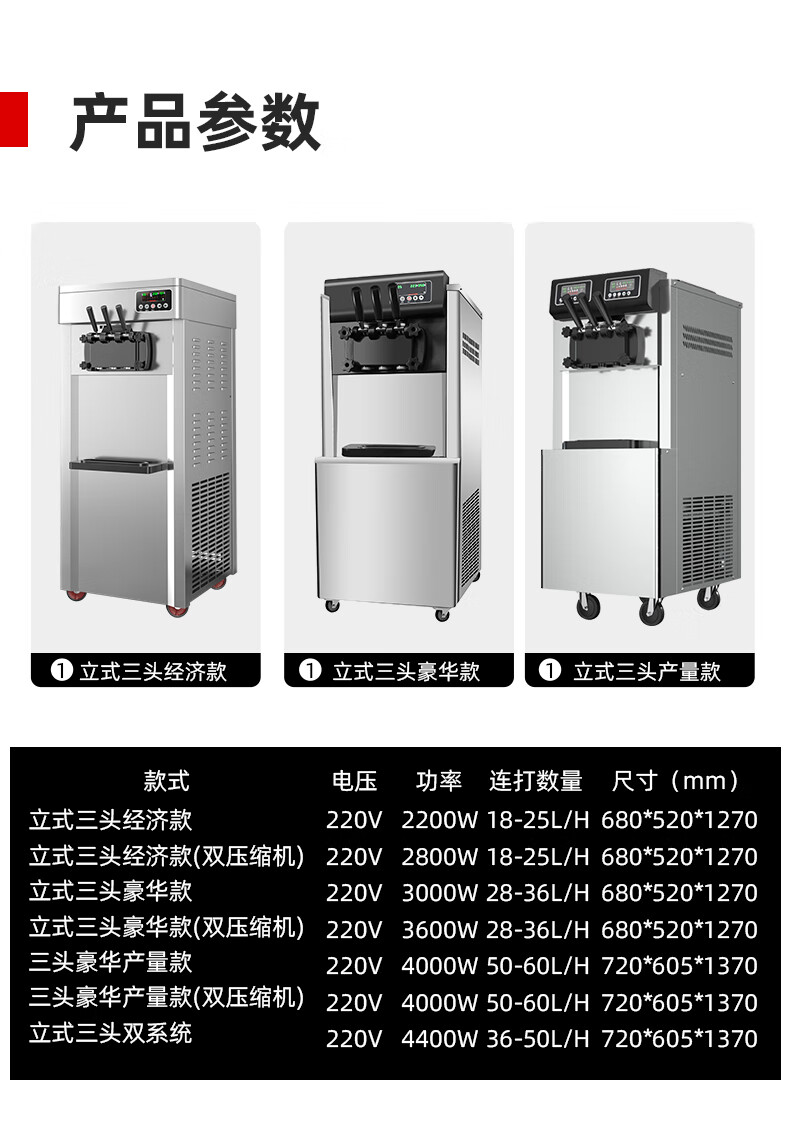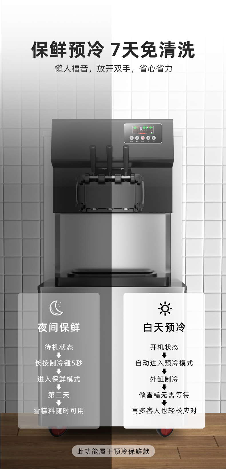 Xilaisheng Ice Cream Machine Commercial Ice Cream Machine Fully Automatic Vertical Ice Cream Machine Milk Tea Shop Fully Automatic Cone Ice Cream Machine Three-head Production Pre-cooled Fresh-keeping Model BQL-Y4000