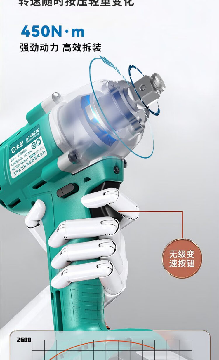 Dayi electric wrench 6822G high torque electric wrench a7 wind cannon charging impact wrench auto repair Jingdong self-operated bare metal