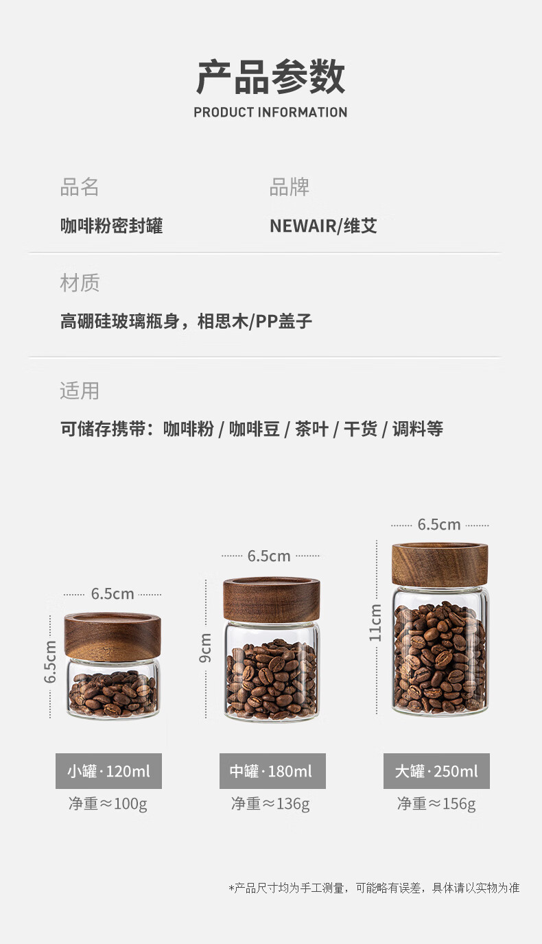 Newair glass coffee powder sealed jar coffee bean storage jar mini portable food grade tea storage jar