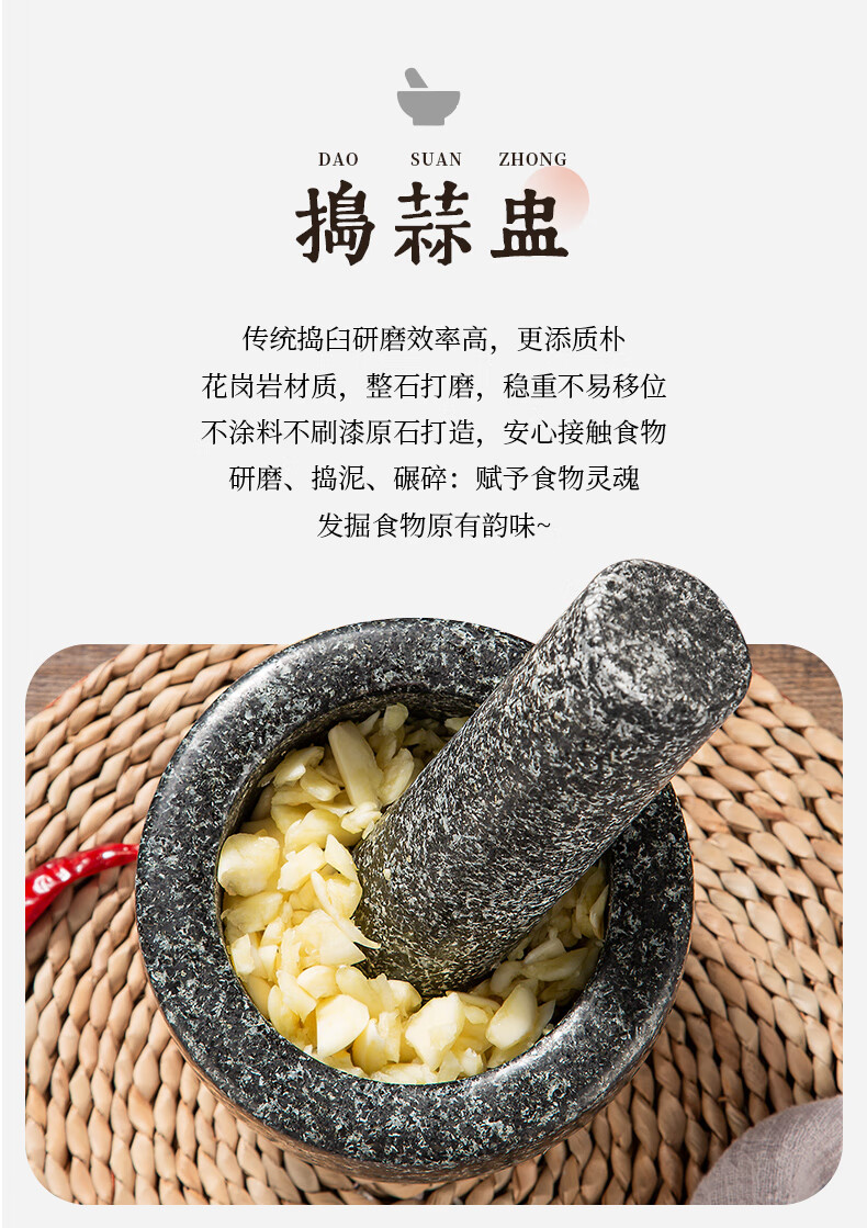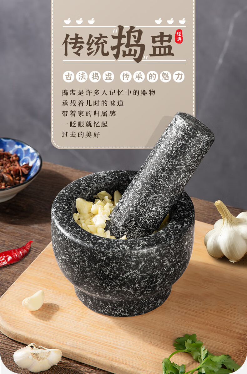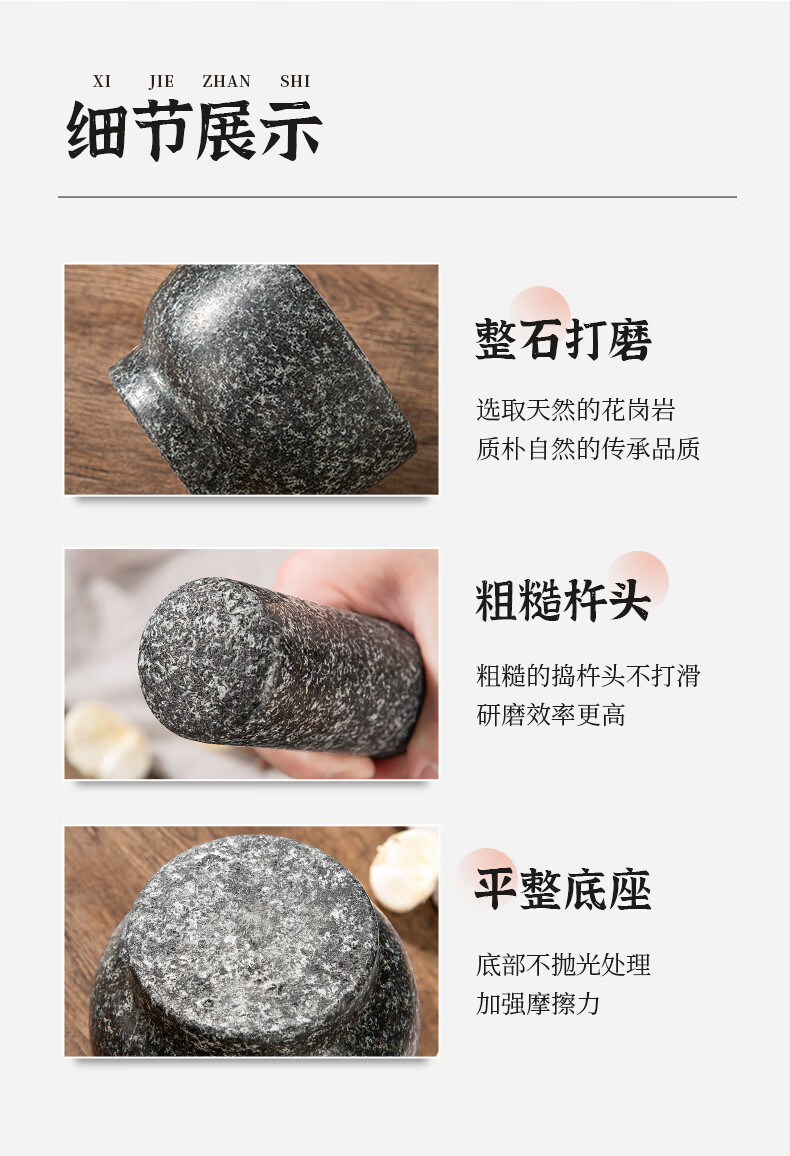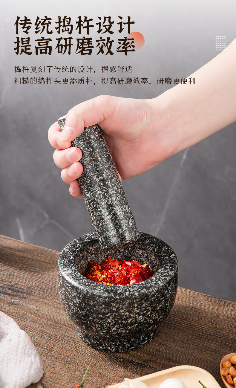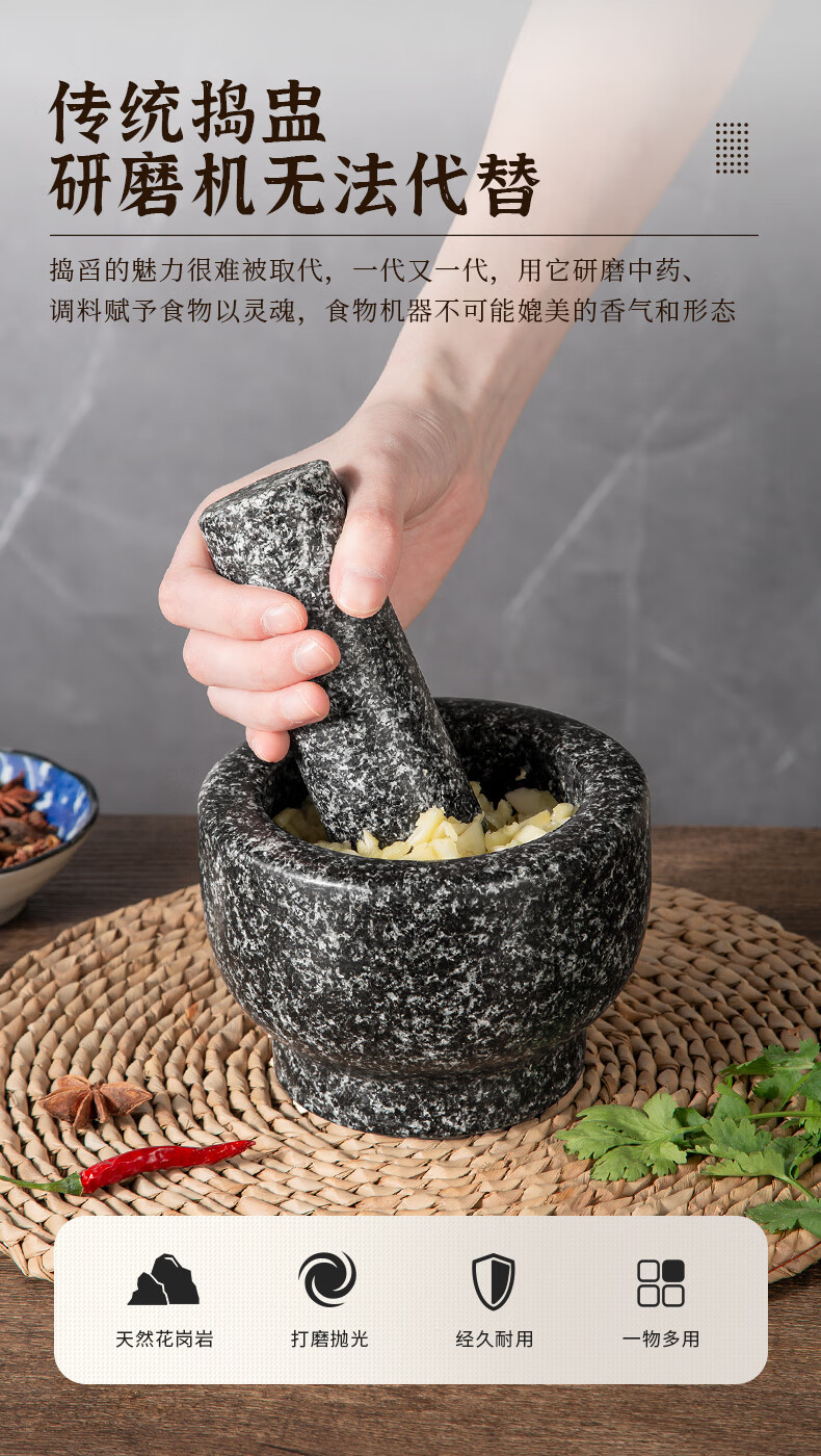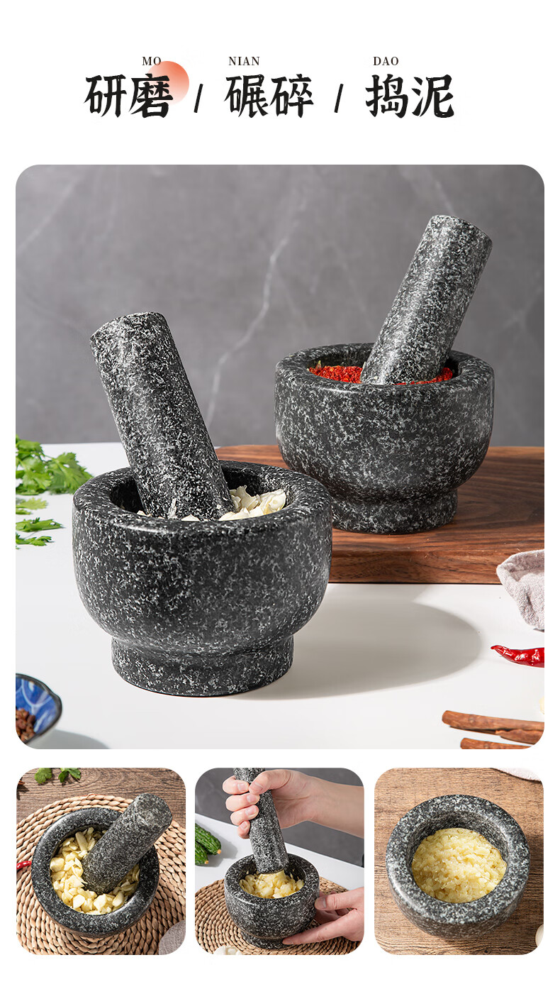 Newair stone mortar, garlic mortar, household garlic pounder, natural stone mortar, old-fashioned garlic mortar, medicine grinder