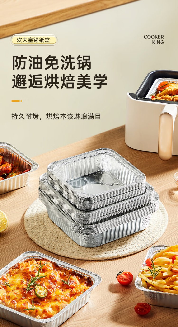 Chuidahuang air fryer tinfoil bowls and plates 7 inches 50 square tinfoil boxes aluminum foil plates barbecue oven baking pan