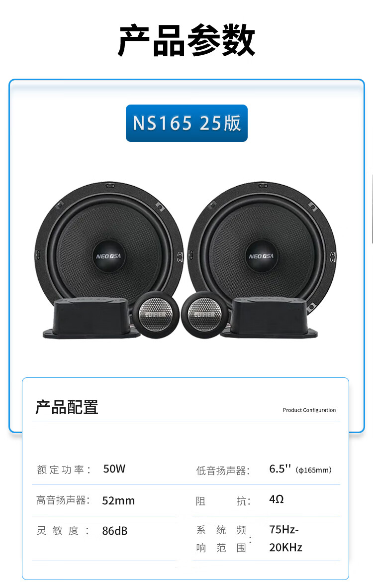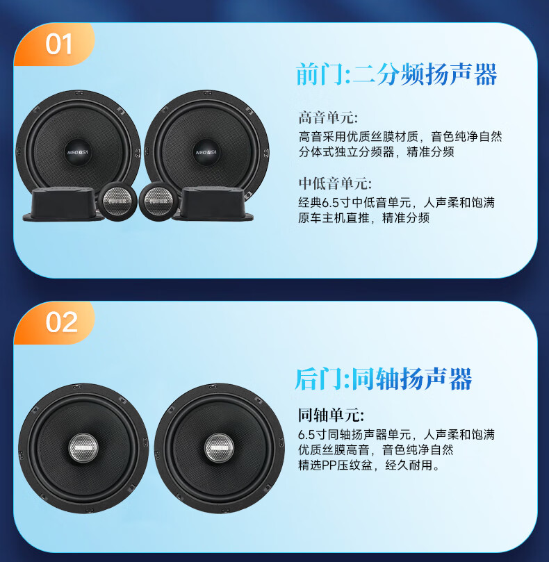 Edifier (EDIFIER) NEO series four-door 6-speaker balanced sound and high sensitivity original car machine direct push car audio modification and upgrade