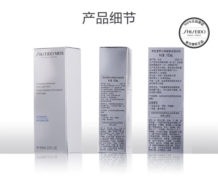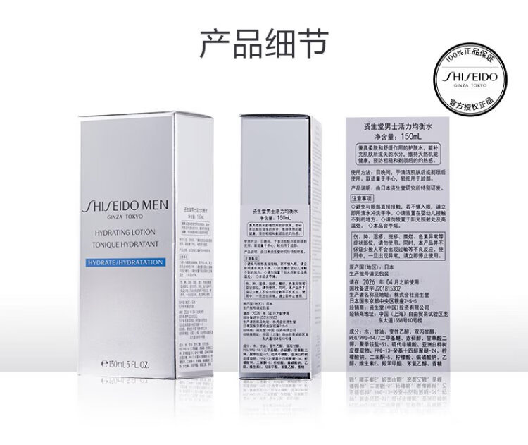 Shiseido Men's Skin Care Toner (Vitality Balanced Water 150ml + Revitalizing Moisturizing Milk 100ml) Refreshing and Moisturizing