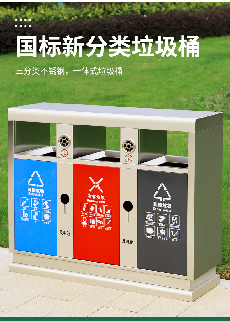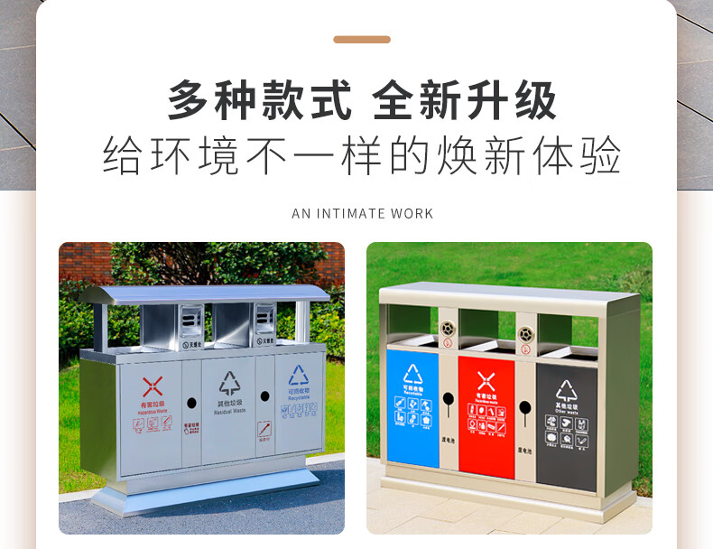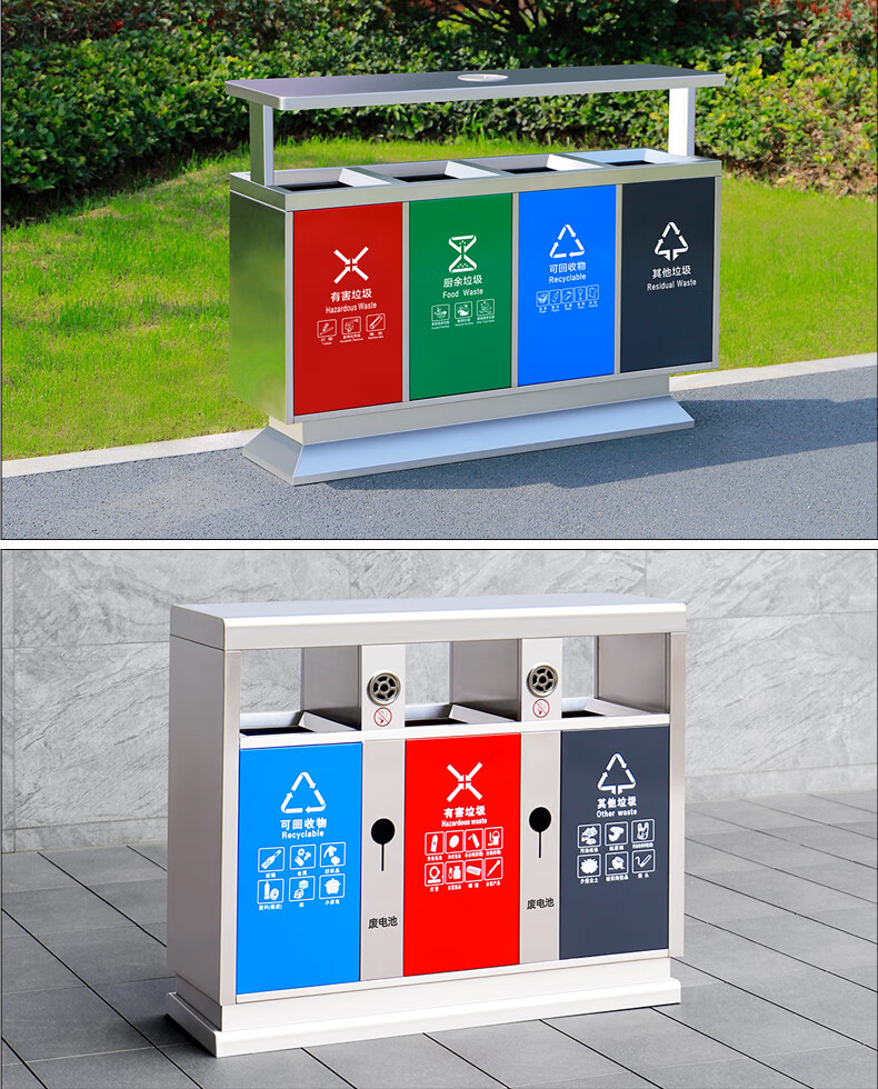 Maixiang sanitation outdoor trash can customized new national standard classification sanitation 201 stainless steel peel box dry and wet separation large commercial trash can outdoor park scenic spot property shopping mall