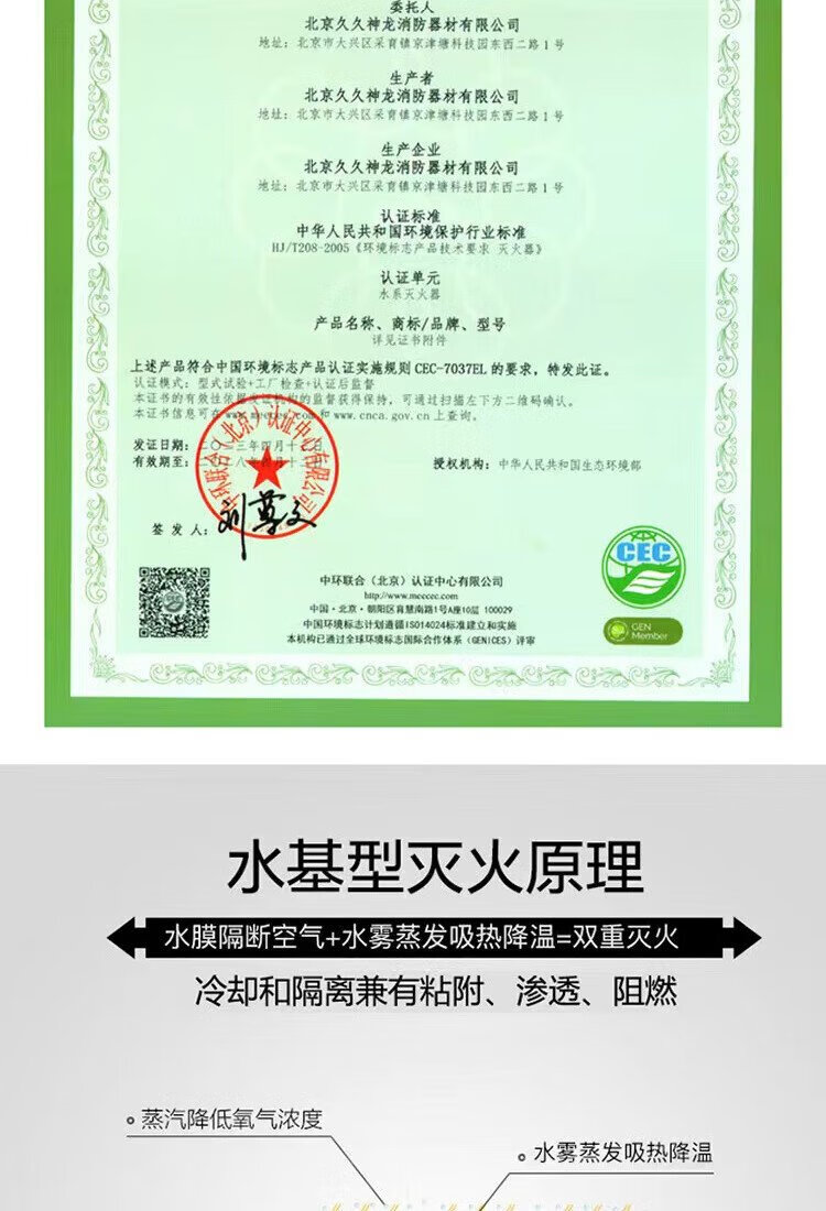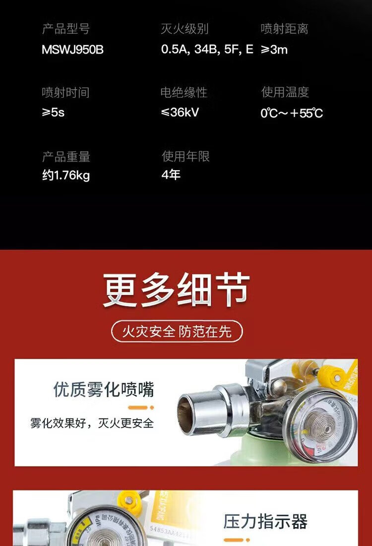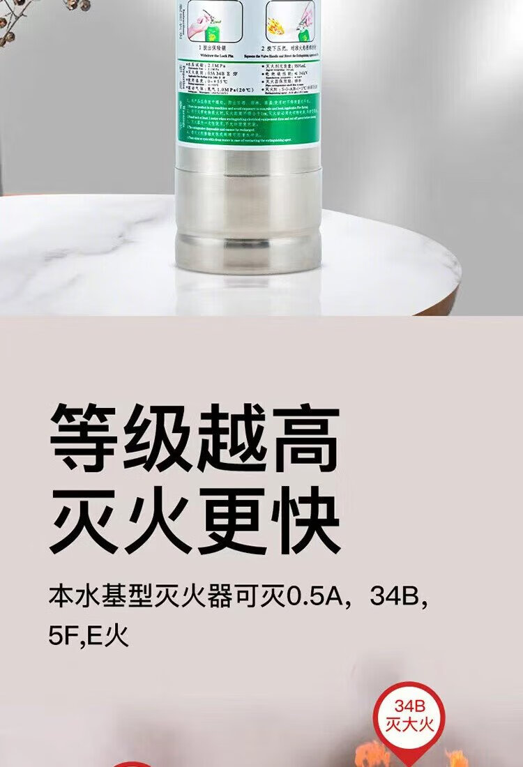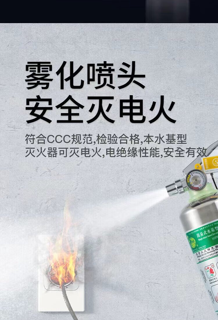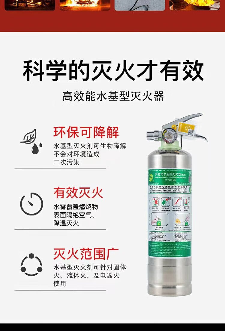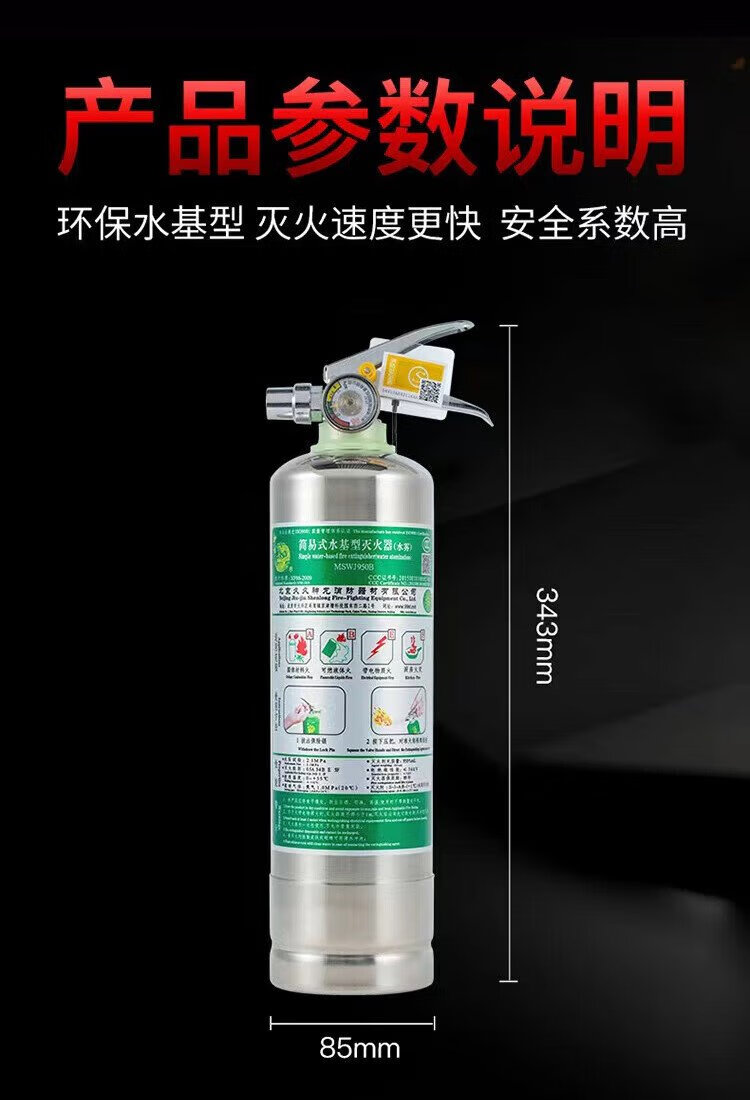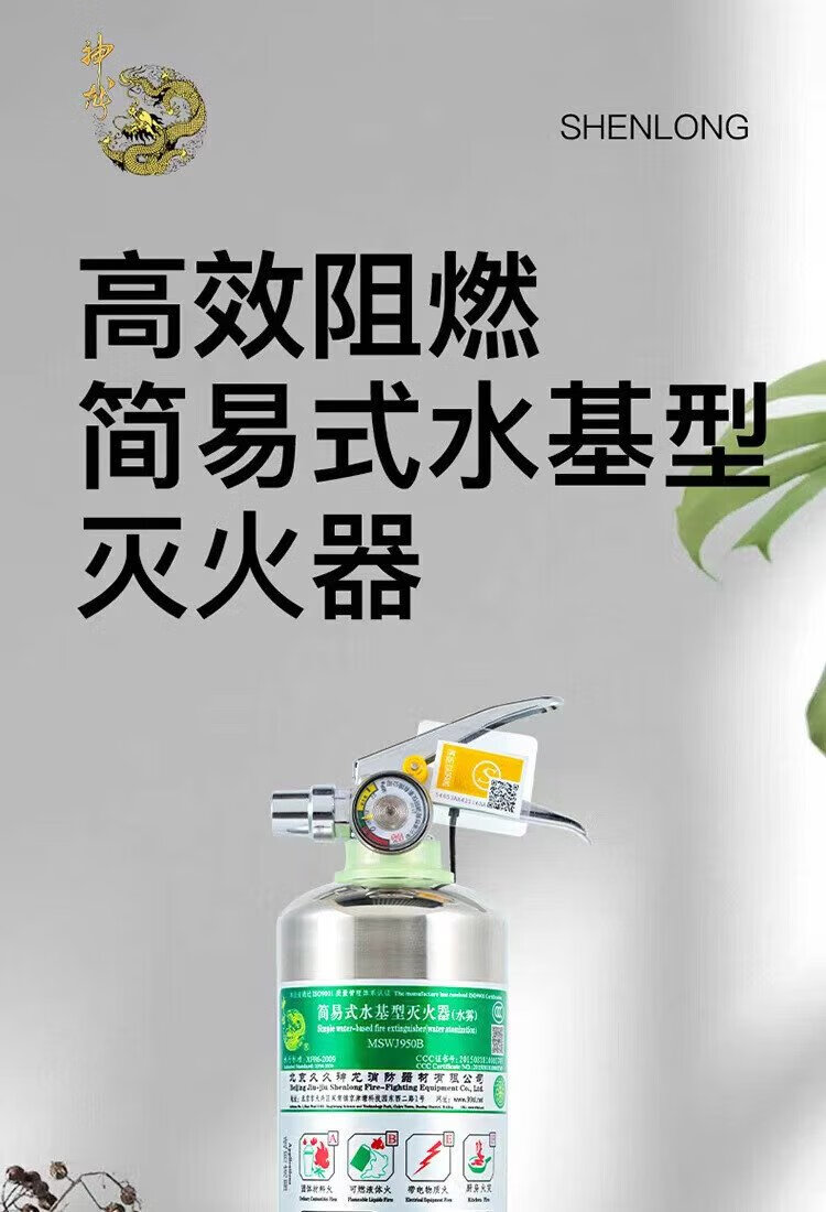 Shenlong water-based stainless steel fire extinguisher 950ml new energy electric vehicle-mounted home camping fire extinguisher