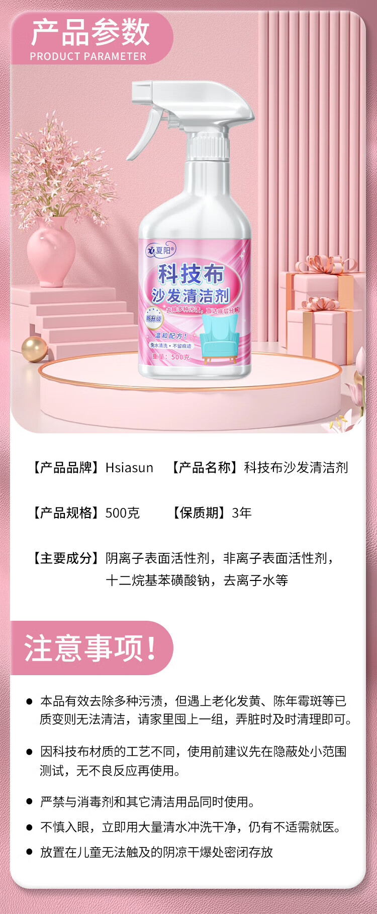 Hsiasun Technology Fabric Sofa Cleaner 500g Fabric Carpet Curtain Mattress Cleaner Water-Free Artifact Dry Cleaning Agent