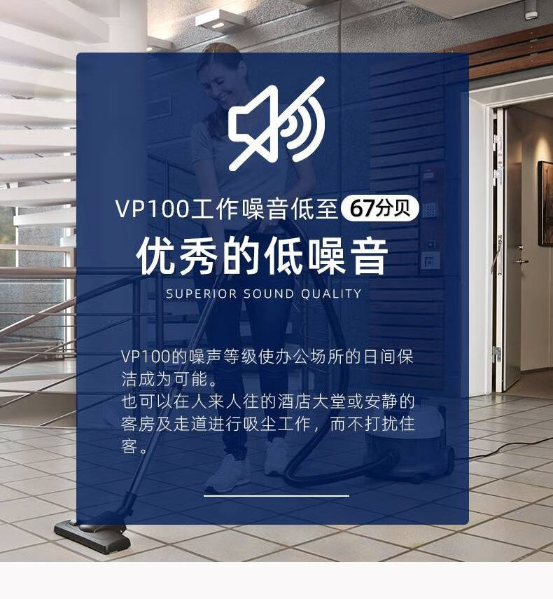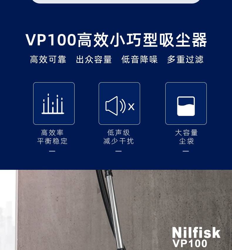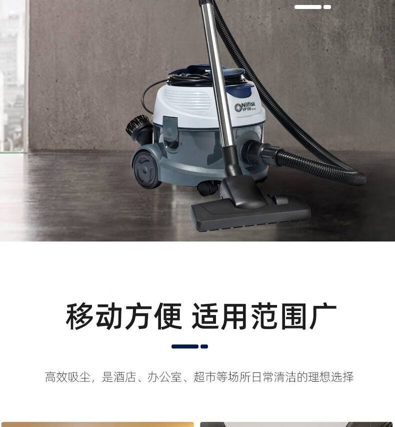NILFISK VP100 high-power bucket vacuum cleaner with large capacity and strong suction for offices, hotel rooms, shopping malls, restaurants, commercial and industrial use