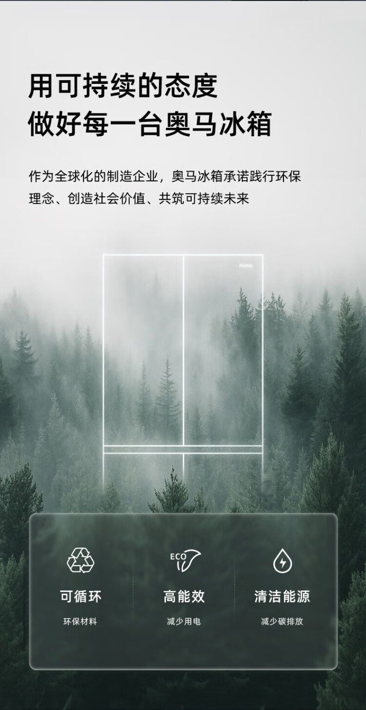 Homa 60cm ultra-thin 301 liter French multi-door small household refrigerator first-class energy efficiency variable frequency air-cooled frost-free four-door 301WF/B national subsidy