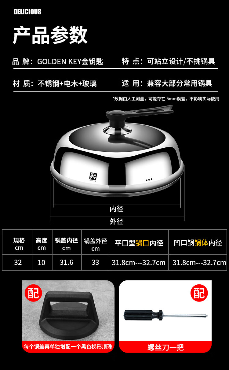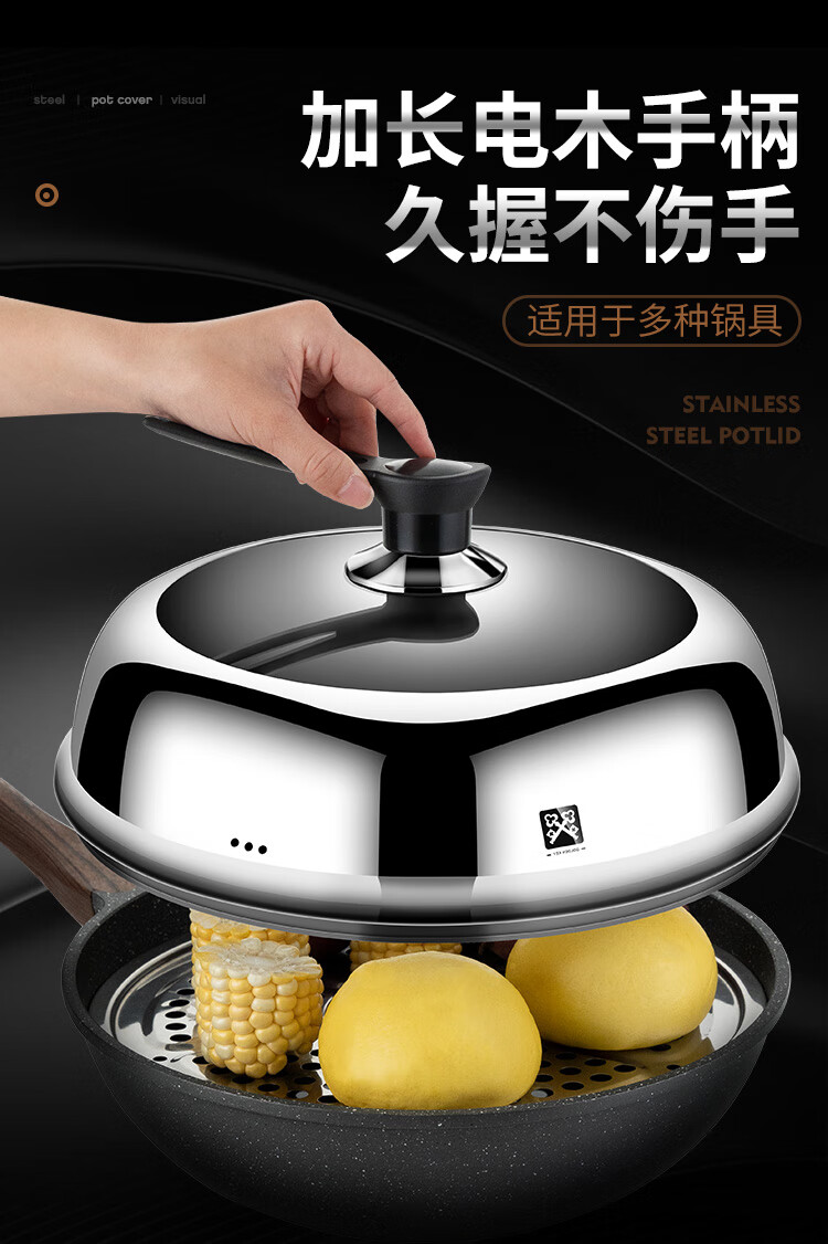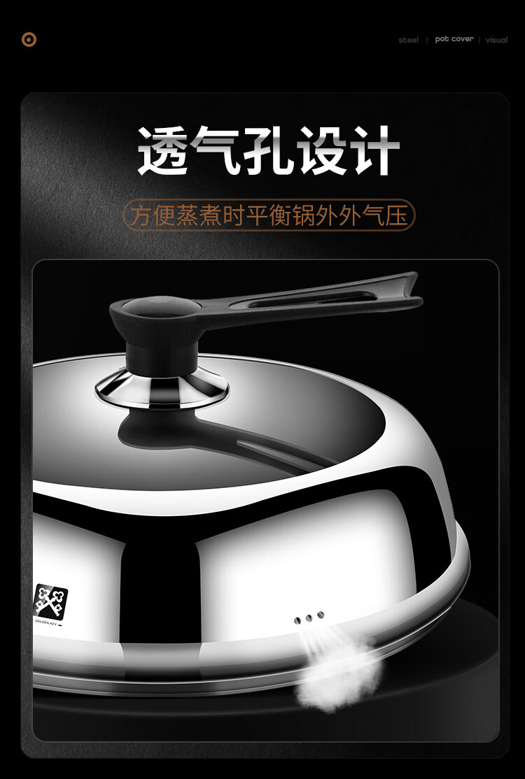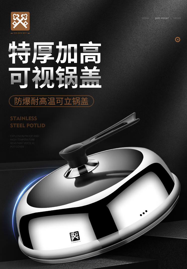 Golden Key Stainless Steel Heightened Visible Pot Lid 32cm Tempered Glass Lid Wok Steamer Lid Household GK-GH320-Z