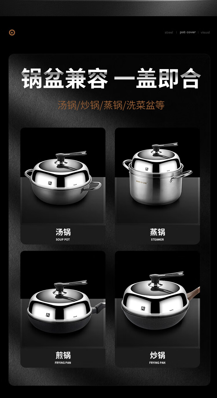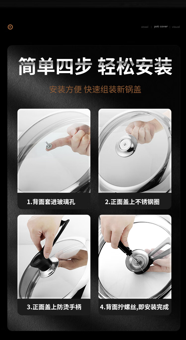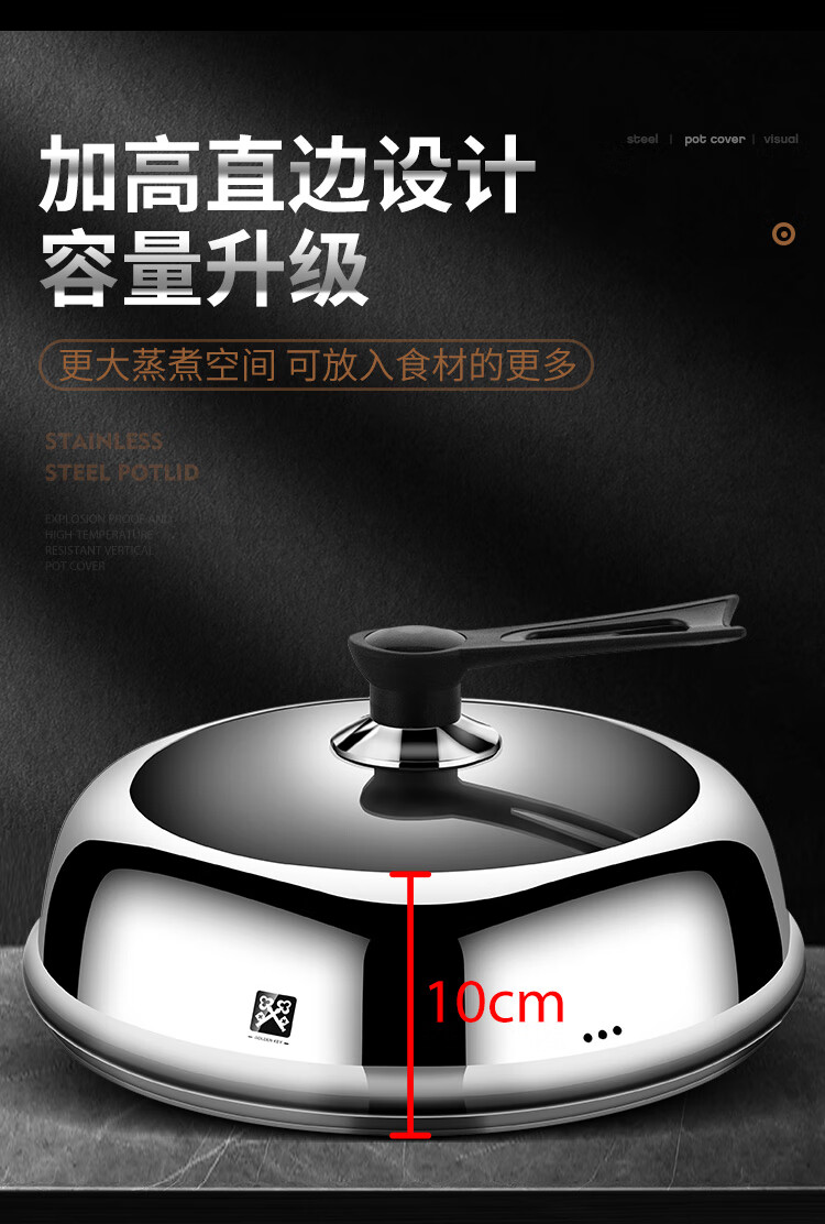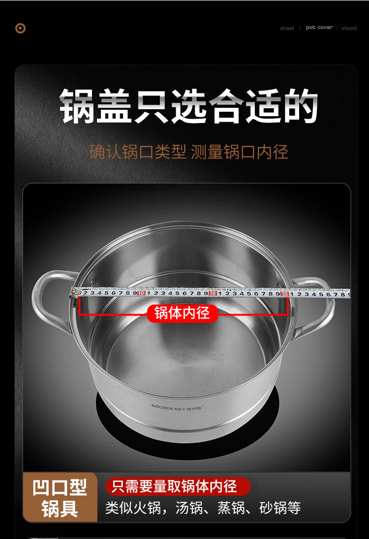 Golden Key Stainless Steel Heightened Visible Pot Lid 32cm Tempered Glass Lid Wok Steamer Lid Household GK-GH320-Z