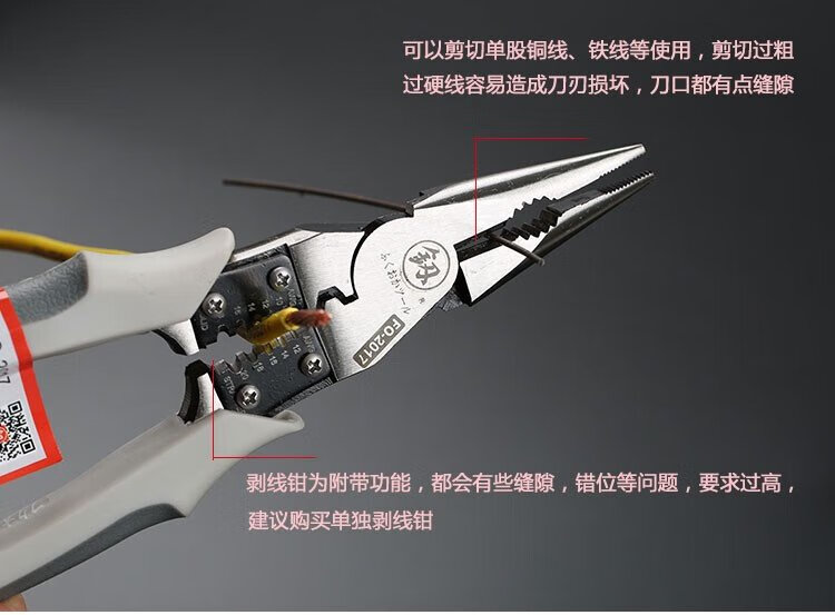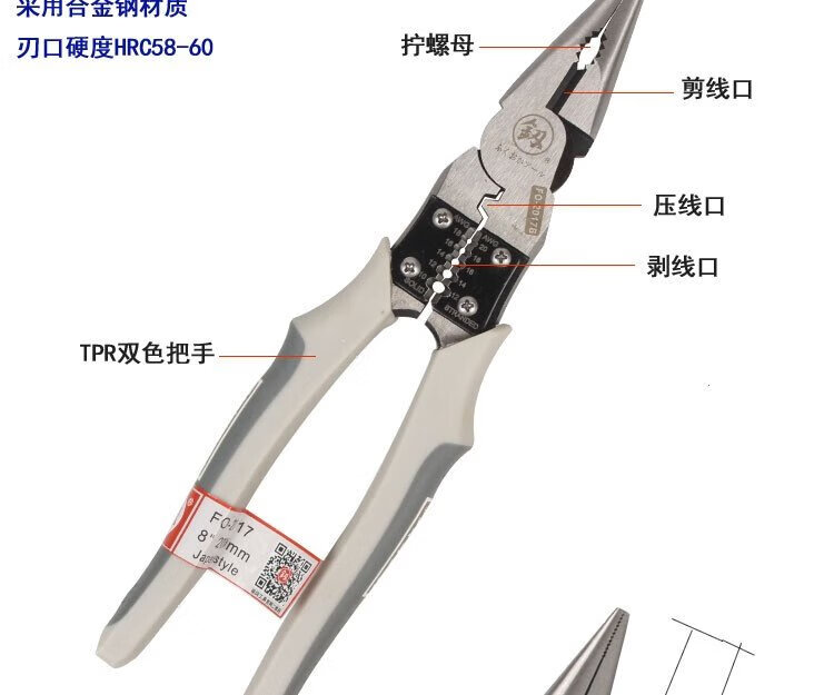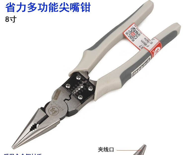 Fukuoka Tools household labor-saving multi-functional needle-nose pliers multi-purpose needle-nose pliers industrial-grade tip with stripping wire 8 inches