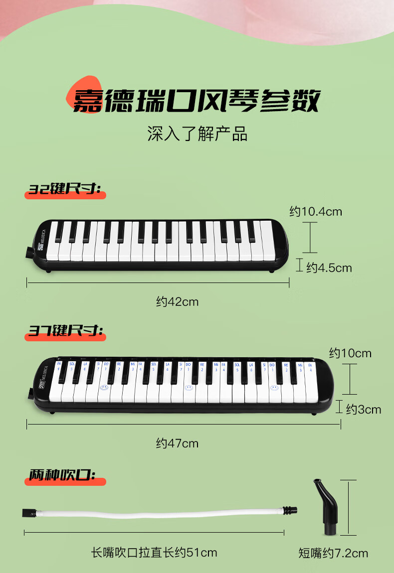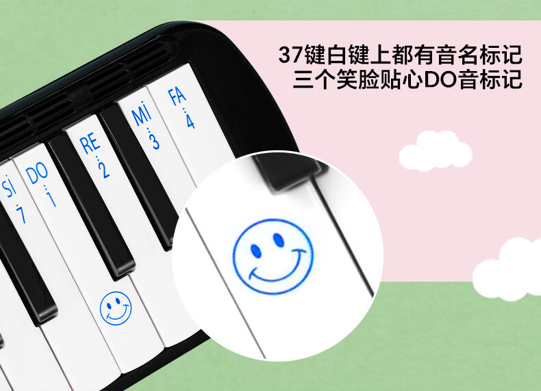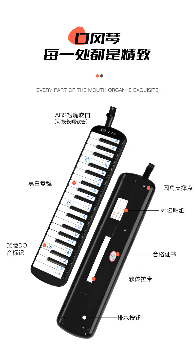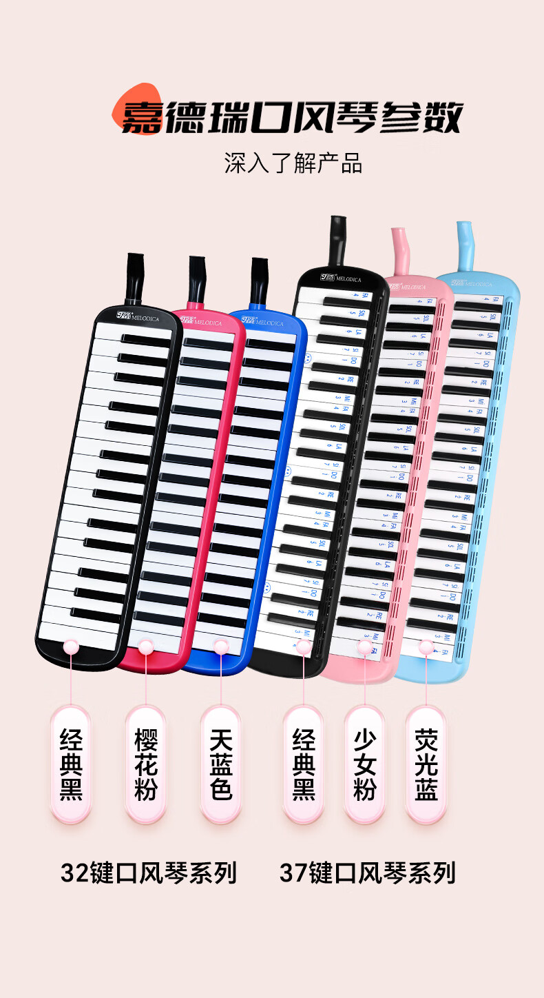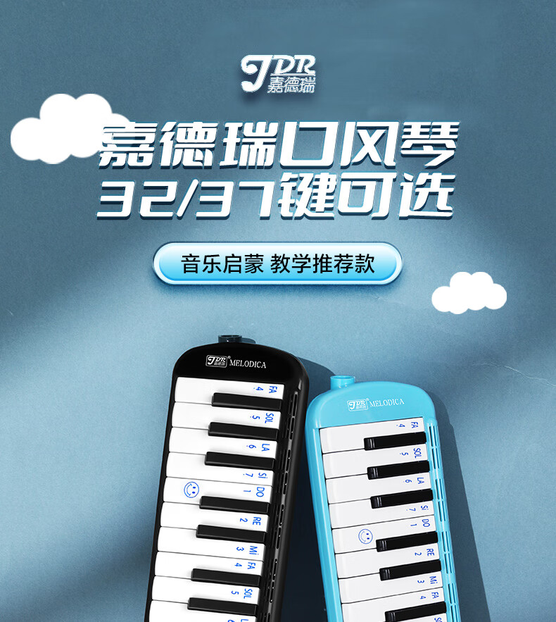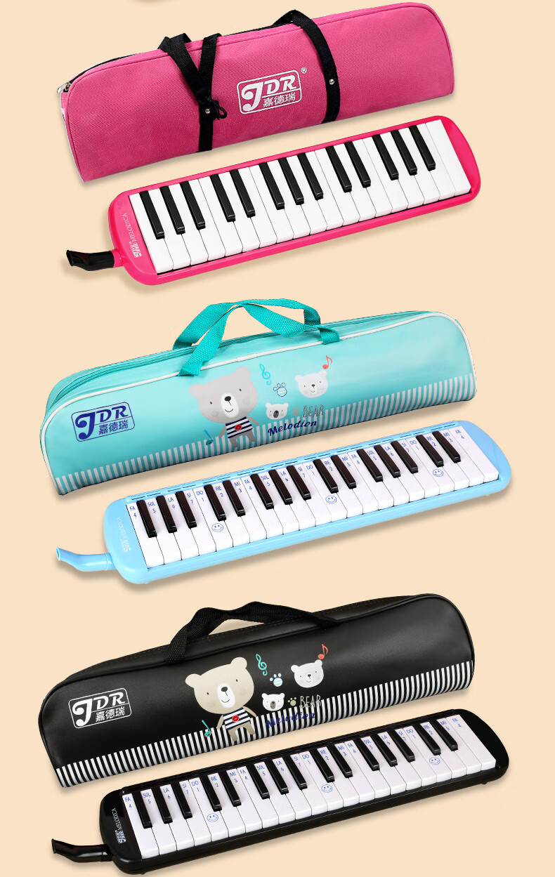 JDR Mouth Organ 37 Key Leather Bag Primary School Teaching Children Beginner Adults Playing Wind Instruments Blue