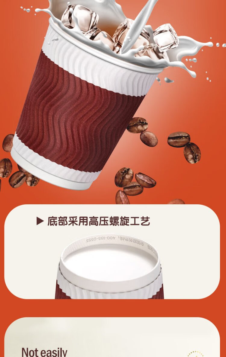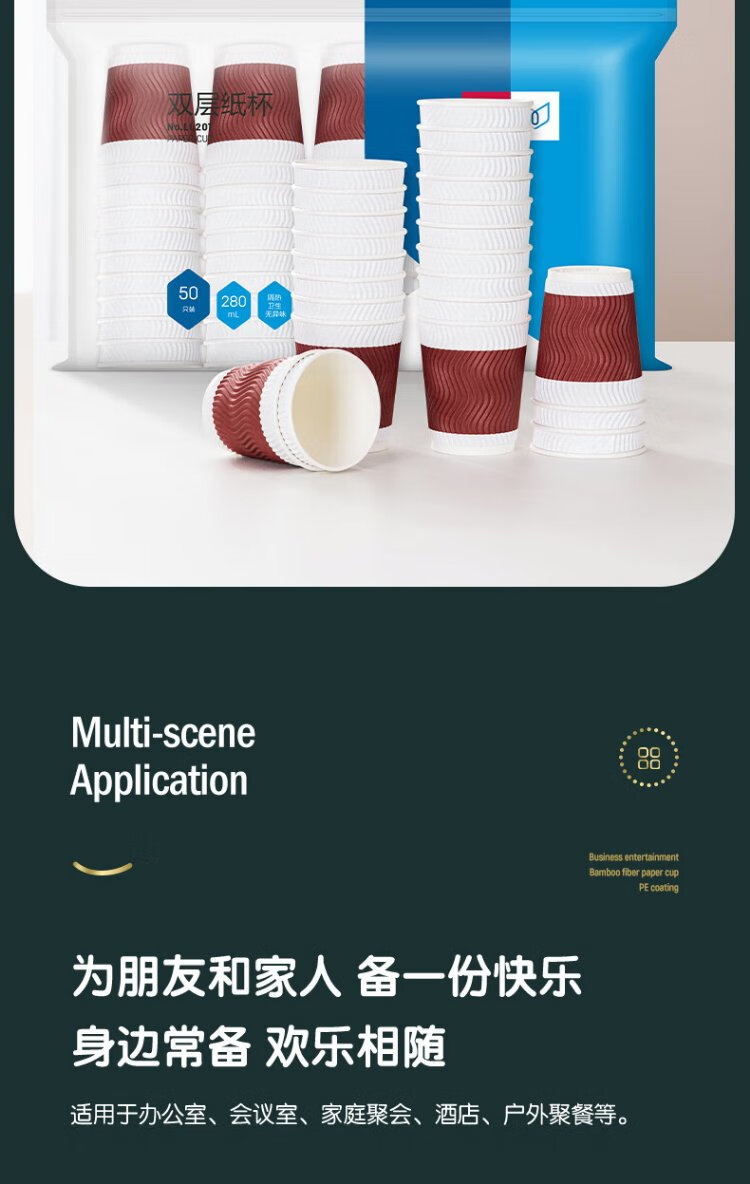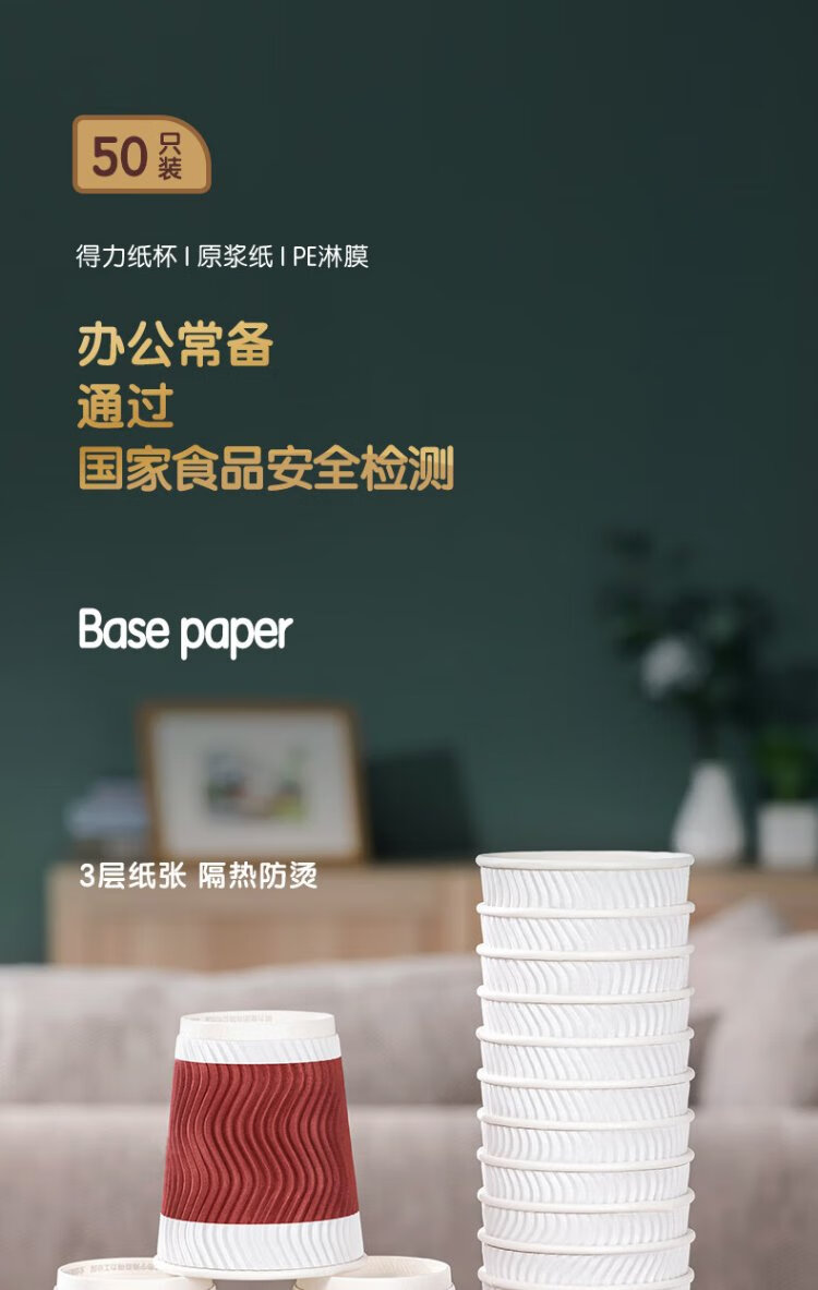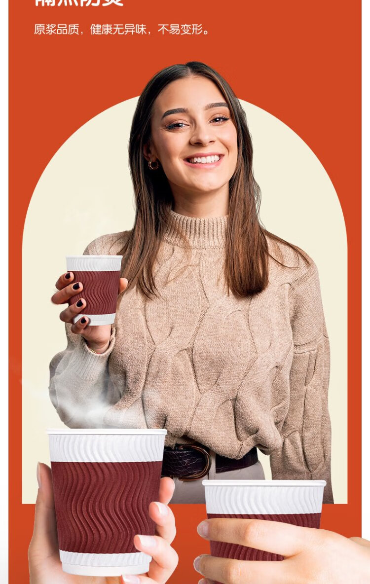 Deli 280ml disposable paper cup/water cup, anti-slip three-layer thickened corrugated, red, 50 pieces