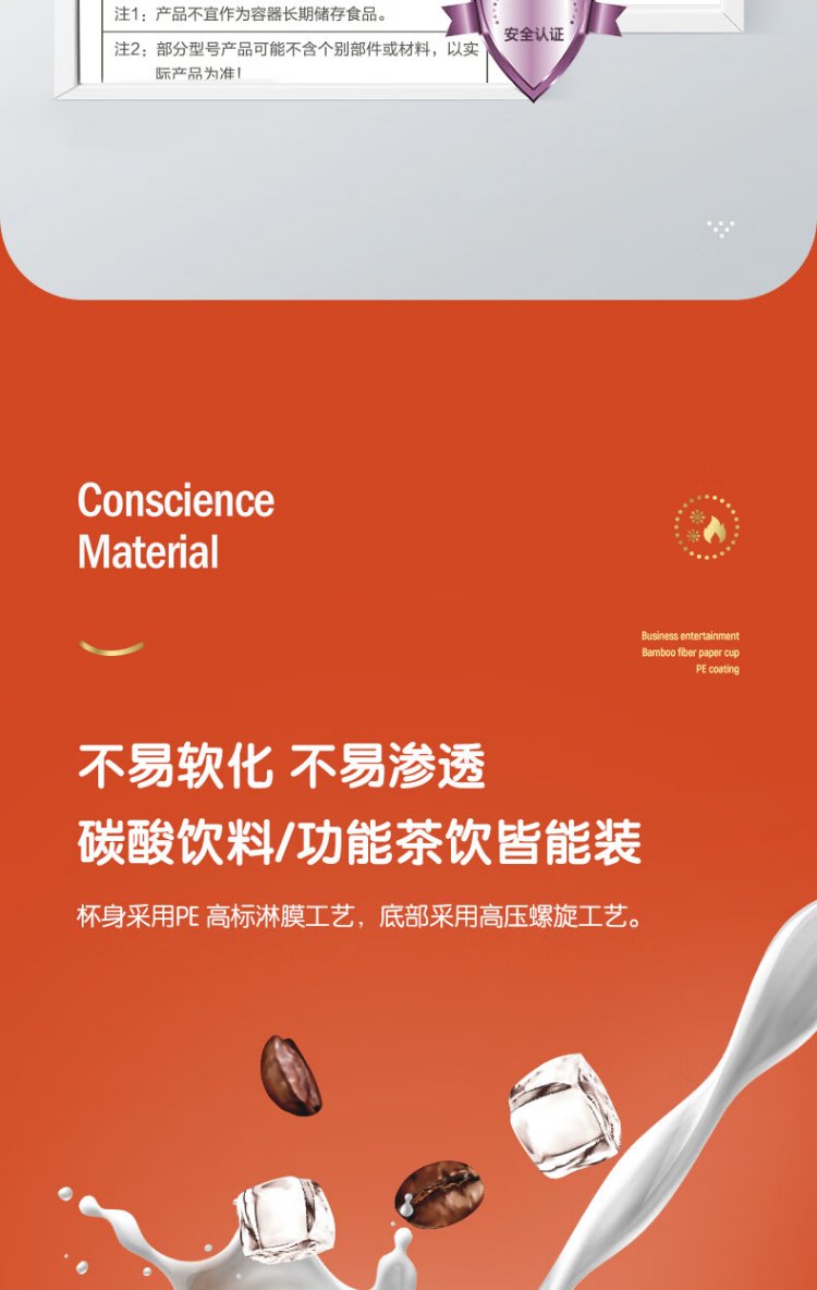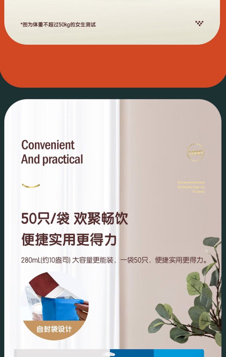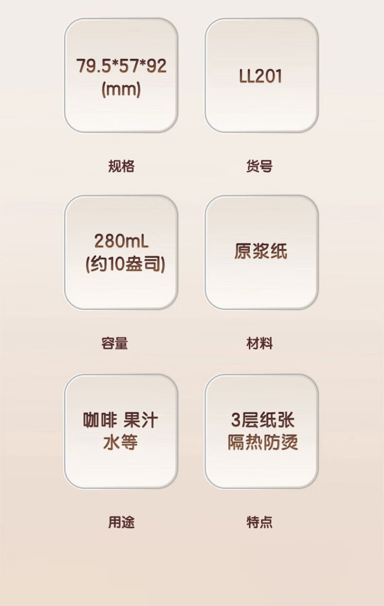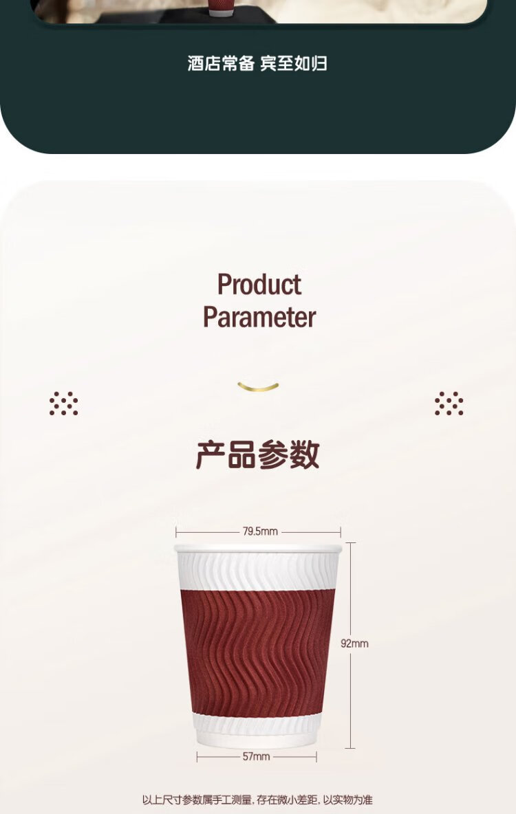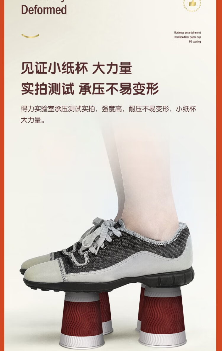 Deli 280ml disposable paper cup/water cup, anti-slip three-layer thickened corrugated, red, 50 pieces