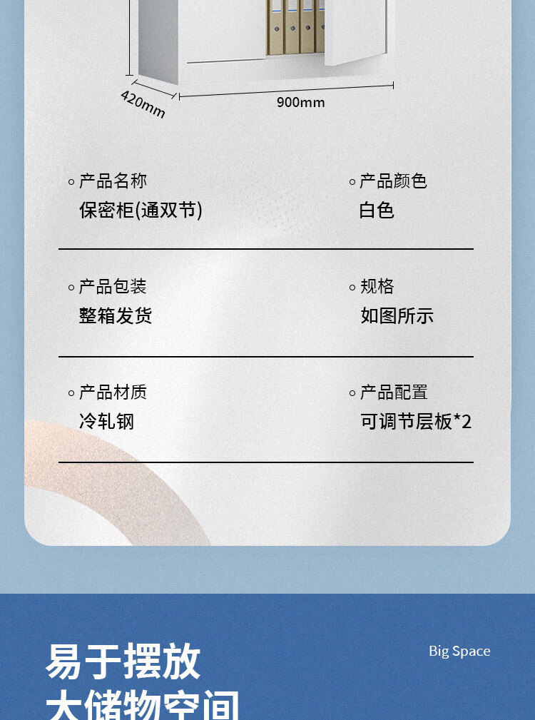 Guhao Warehousing Iron Cabinet Office File Cabinet Safe Cabinet Gray White Steel Anti-theft Fingerprint Password Lock Sectional File Cabinet Upgraded Double Section No Pullout Electronic Fingerprint Lock