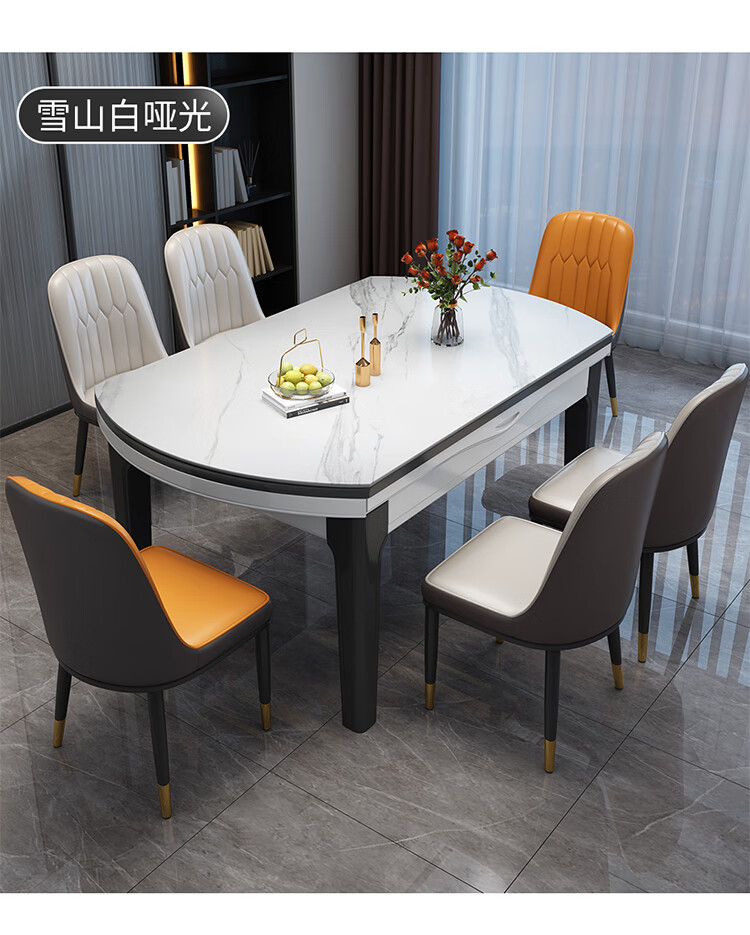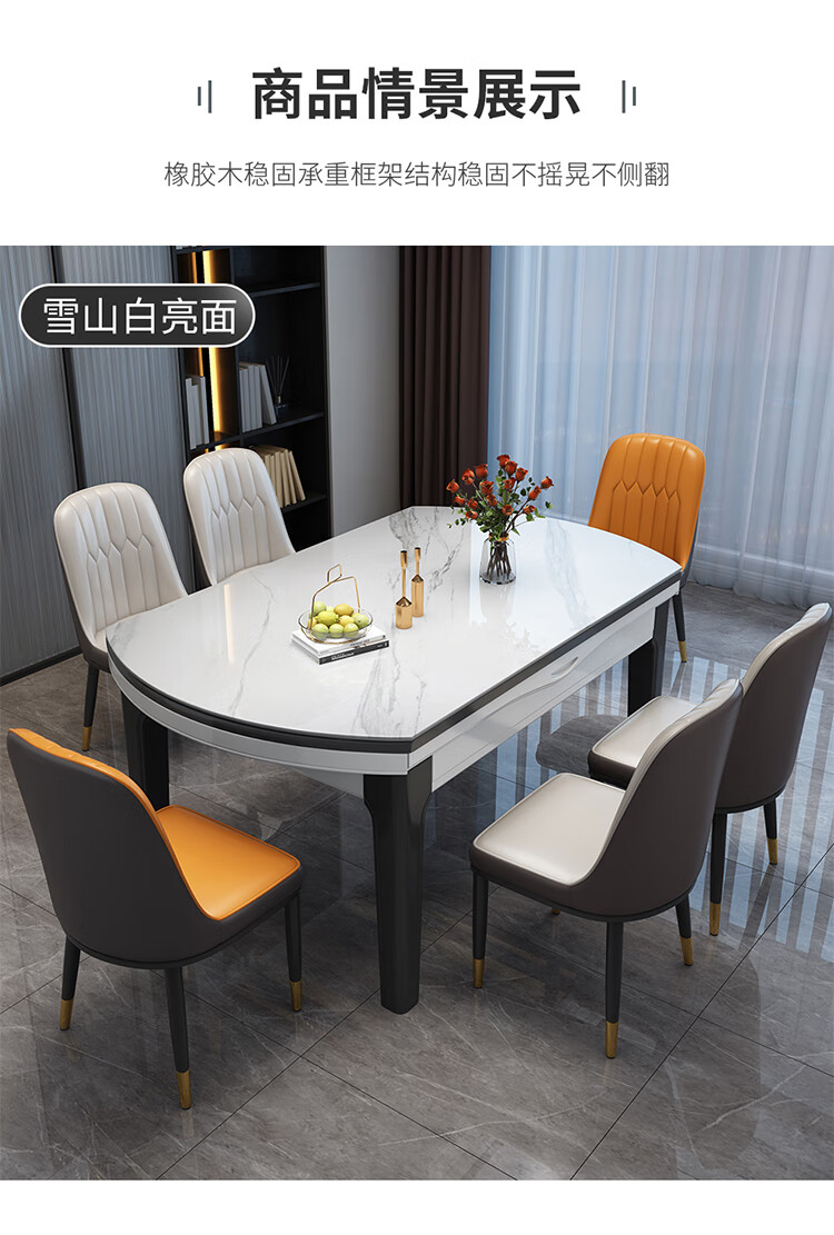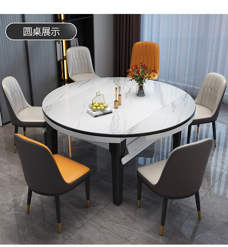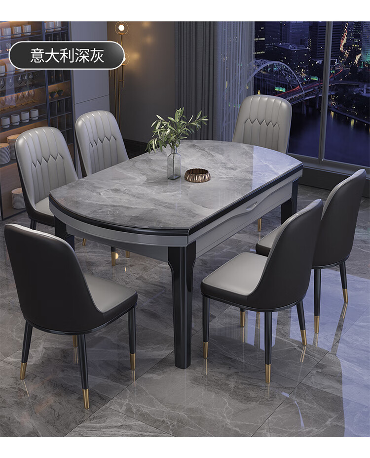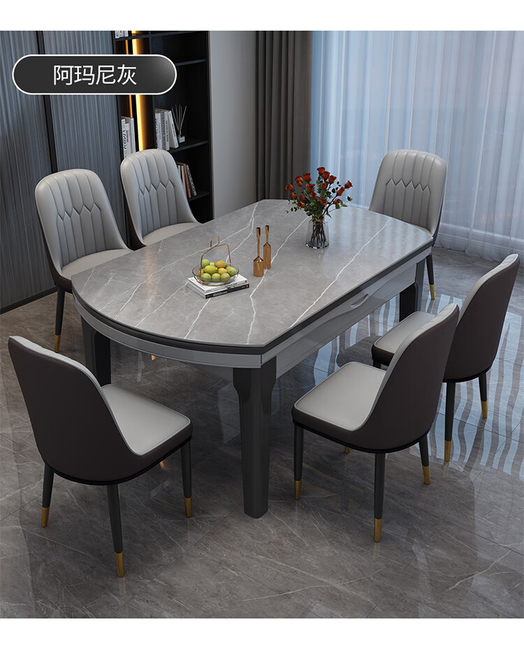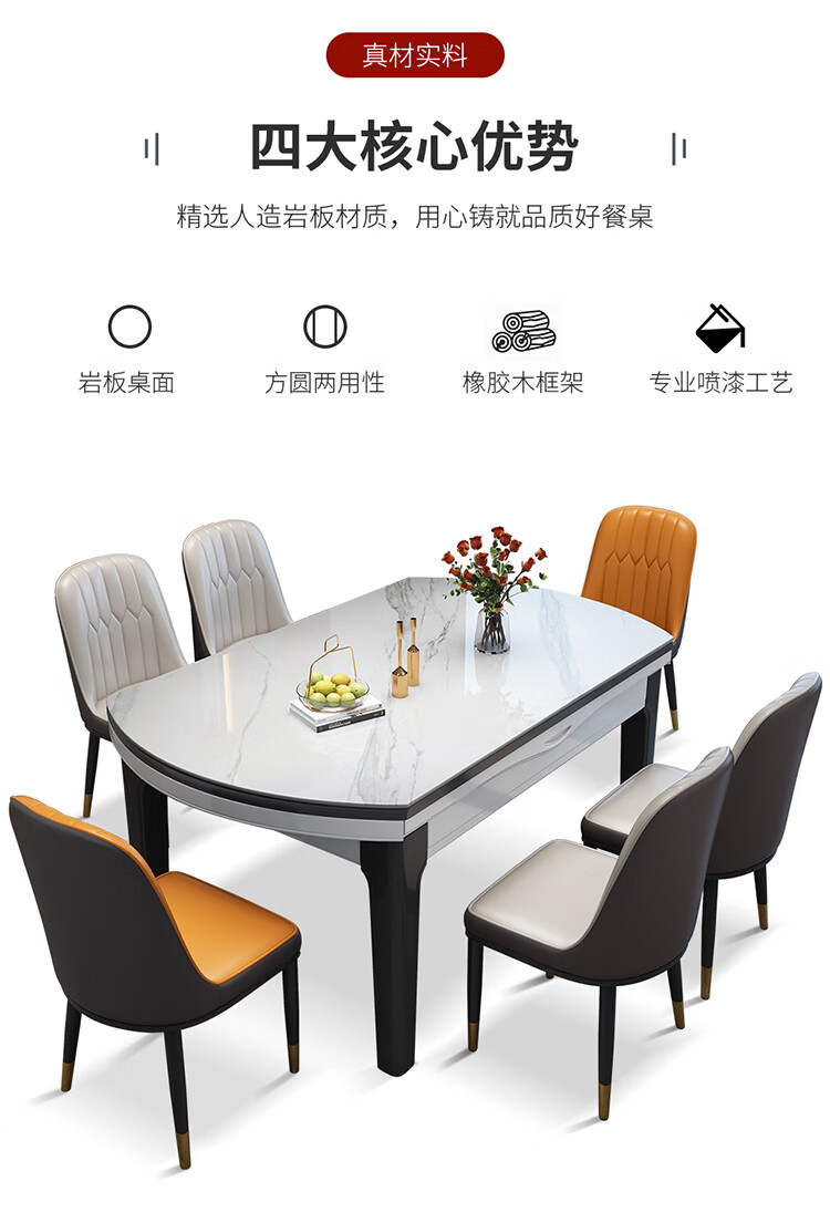 Mingfu Shizhen dining table household thickened slate dining table and chair combination square and round dining table 813# 1.35 meters, one table and six chairs