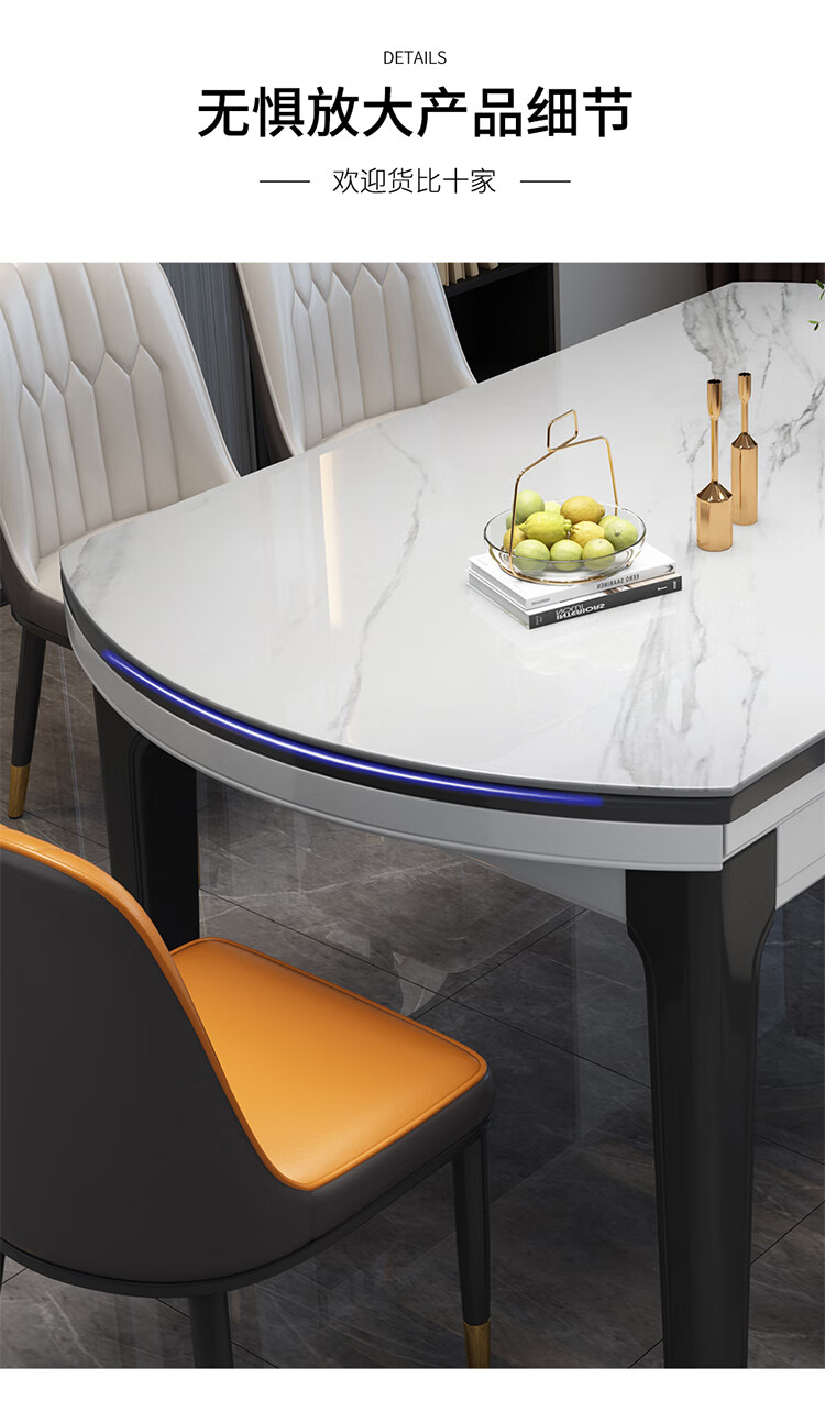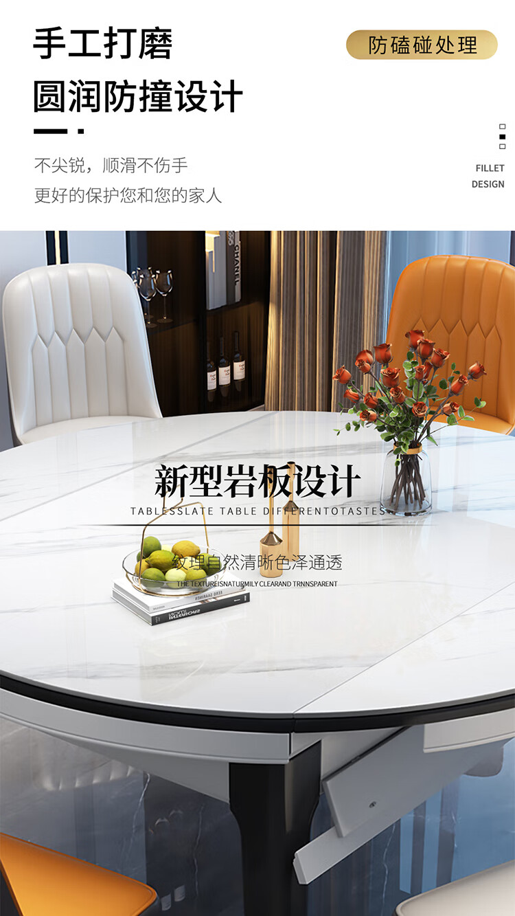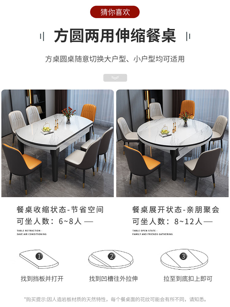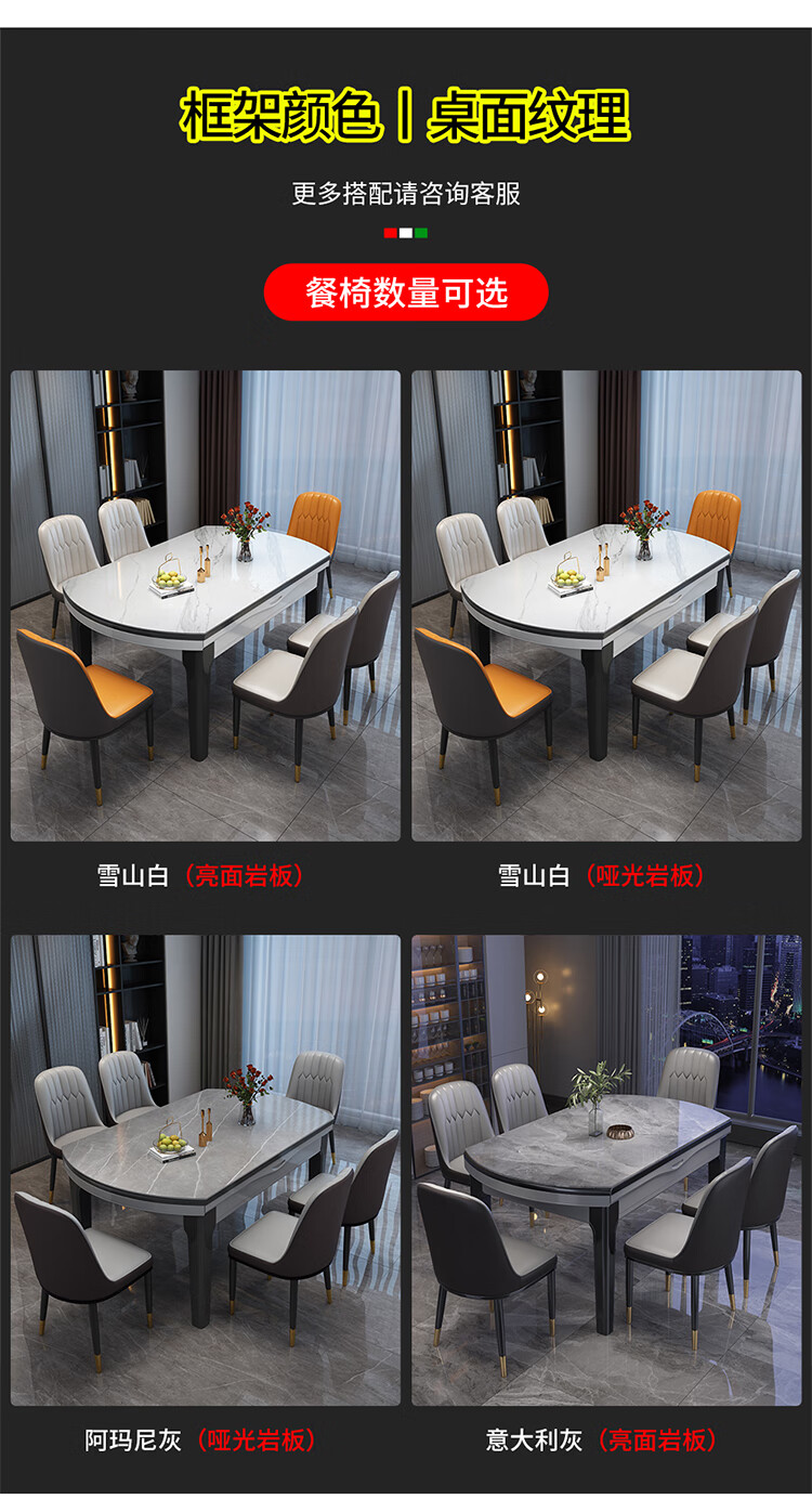 Mingfu Shizhen dining table household thickened slate dining table and chair combination square and round dining table 813# 1.35 meters, one table and six chairs