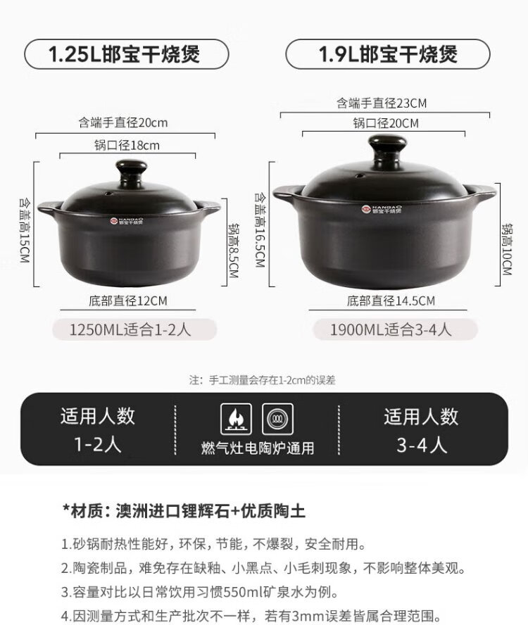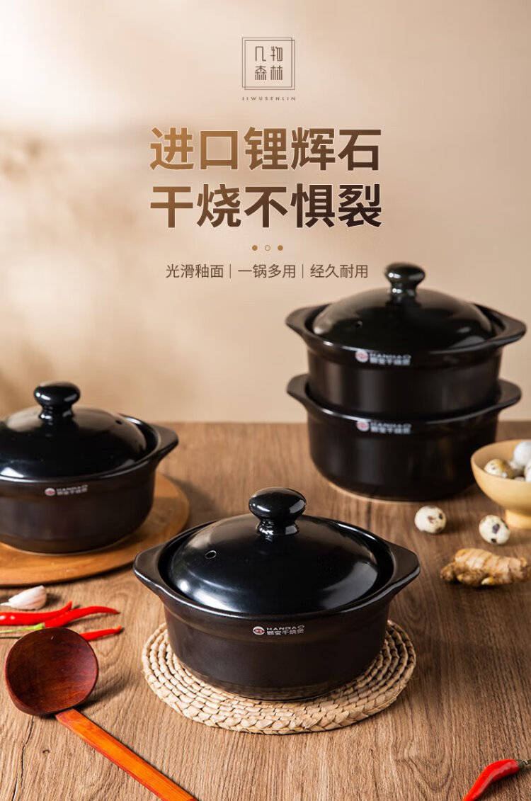 Jiwu Forest Claypot Rice Noodles Claypot Braised Chicken Rice Claypot Rice Ceramic Soup Pot High Temperature Resistant Can Be Dry-cooked 1.25L