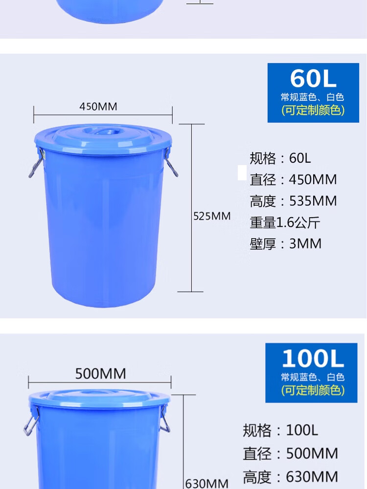 Jin Gu Lao KCAA-157 large capacity trash can bucket round storage bucket large thickened plastic drum 100L blue without lid