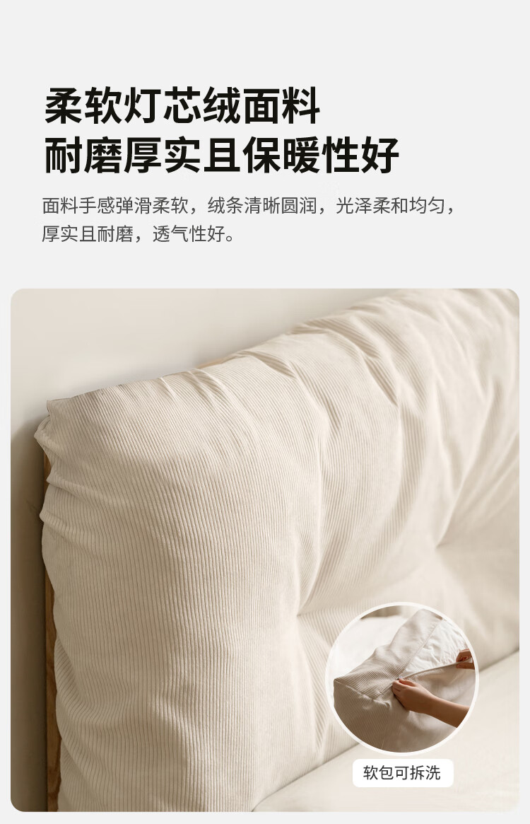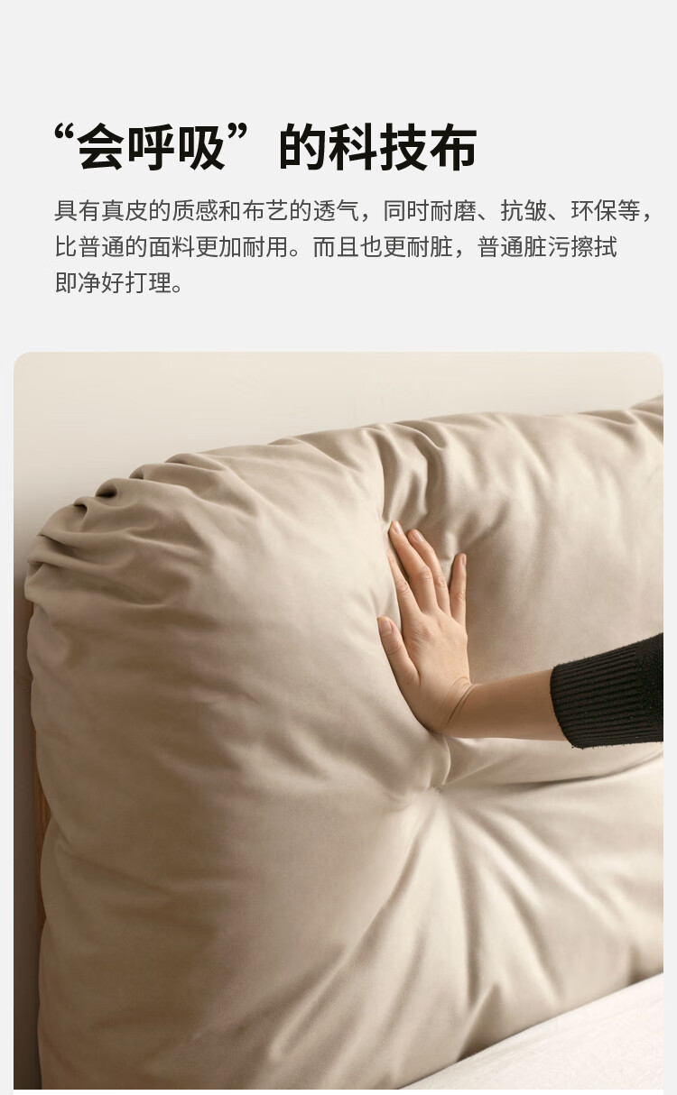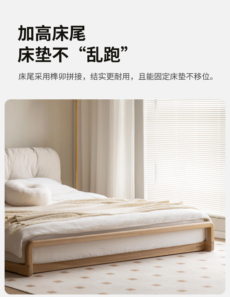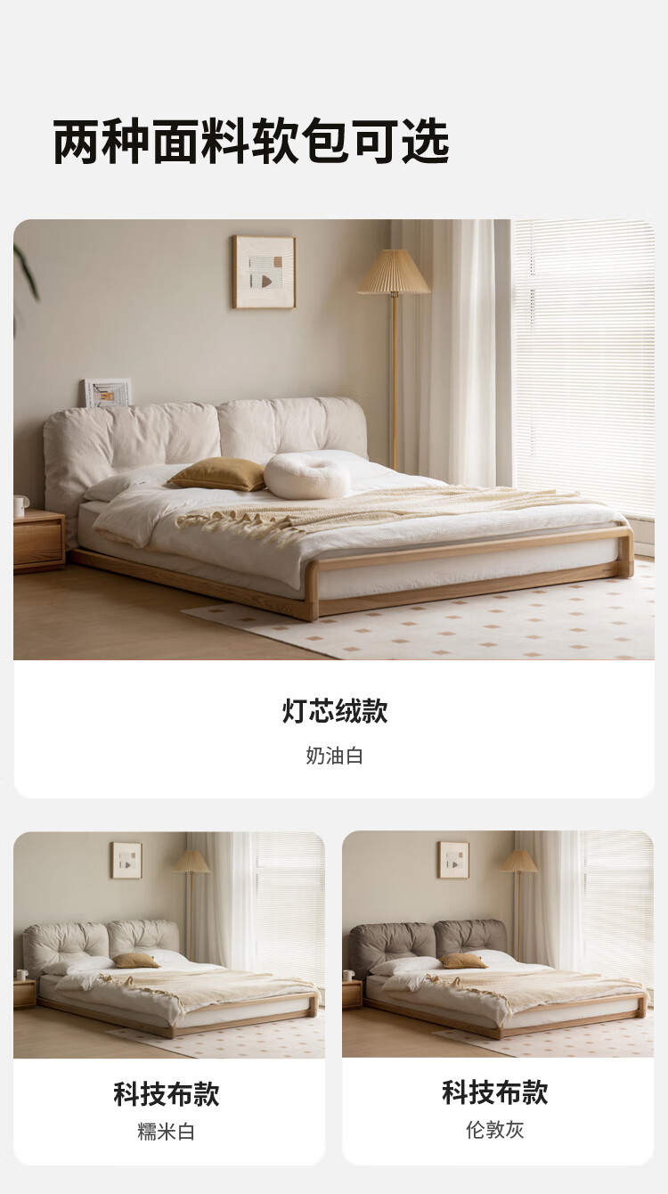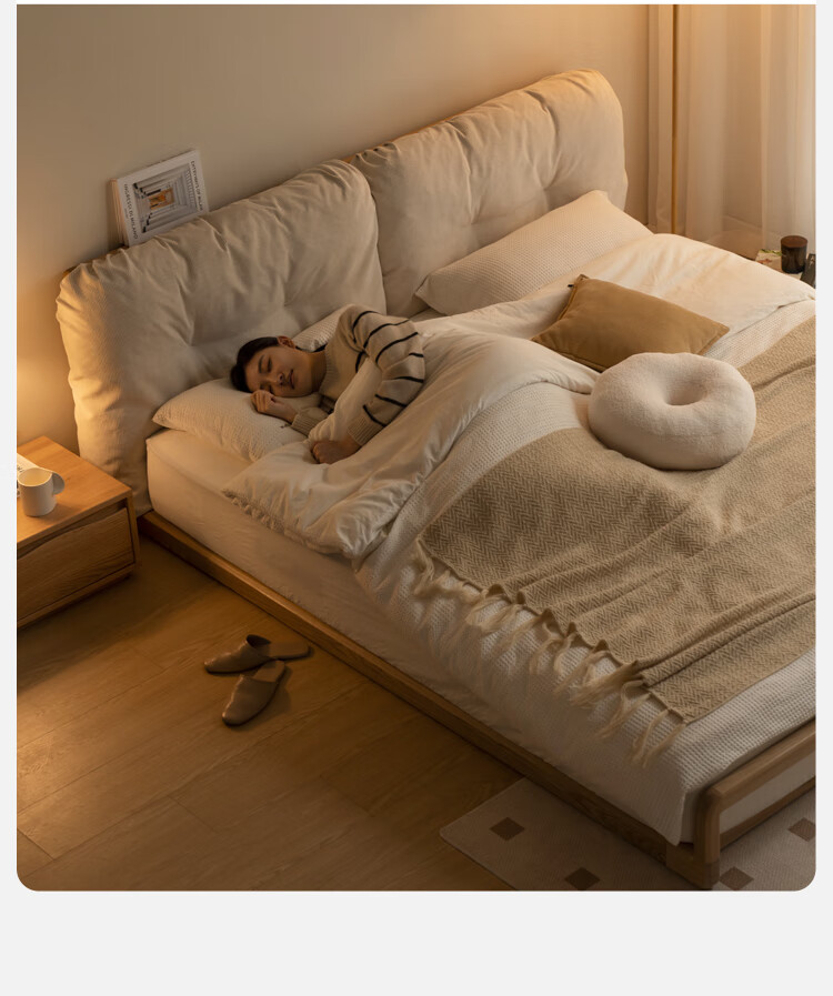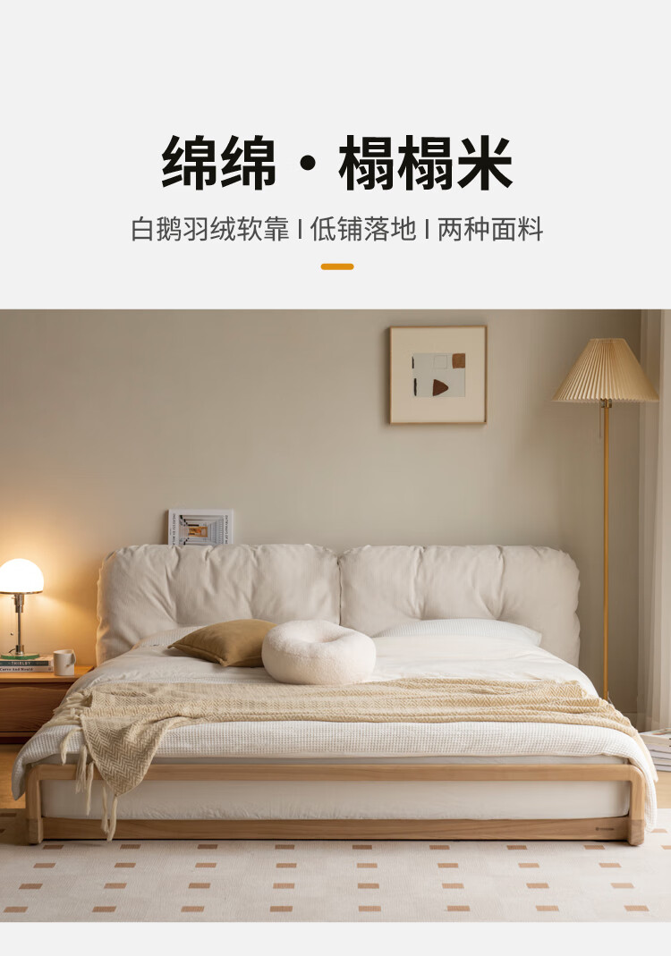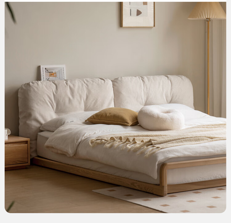 Genji Wood Language Solid Wood Bed Cream Style Down Soft Back Nordic Double Bed Bedroom Furniture Technology Cloth Bed