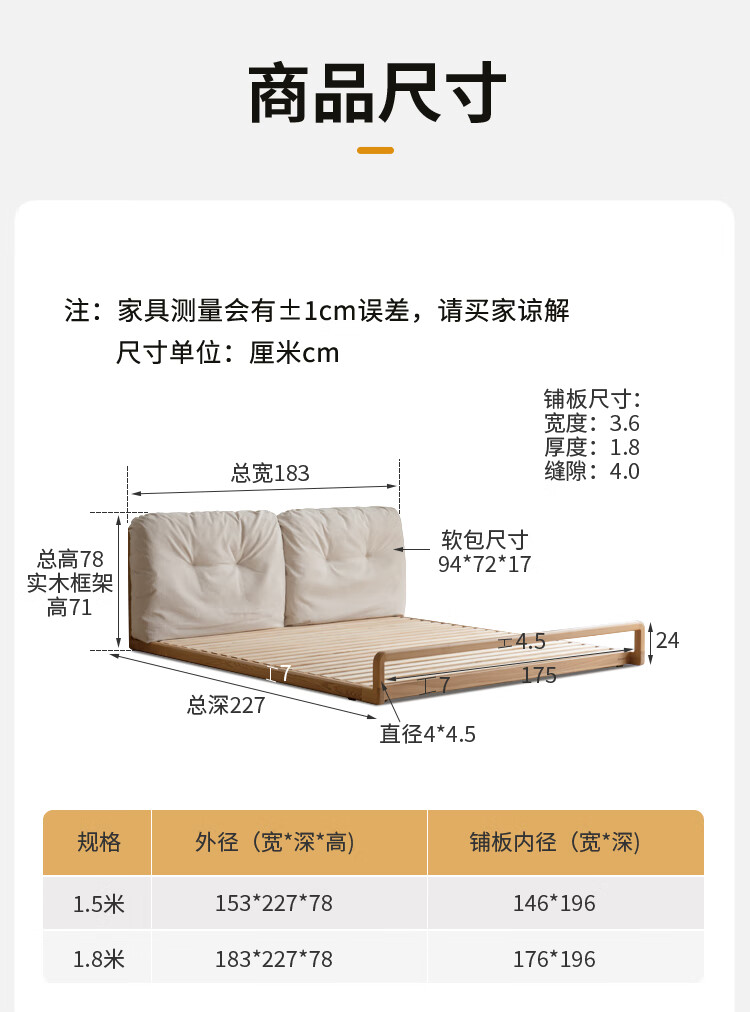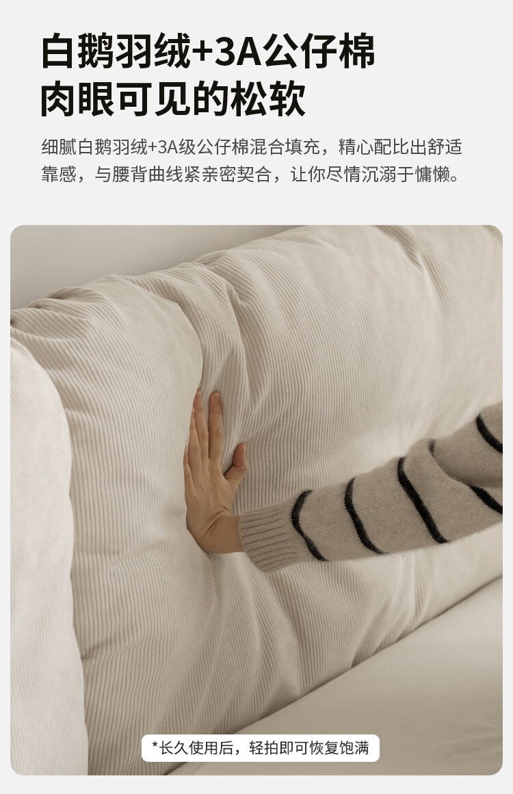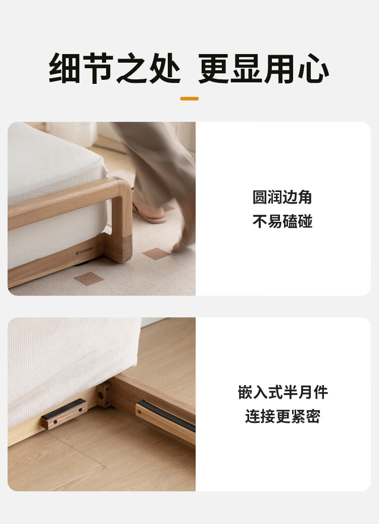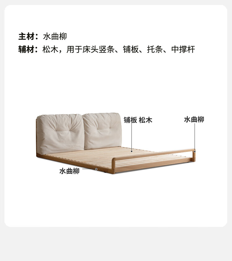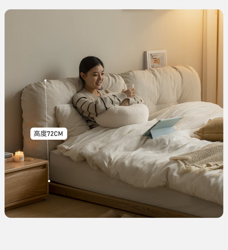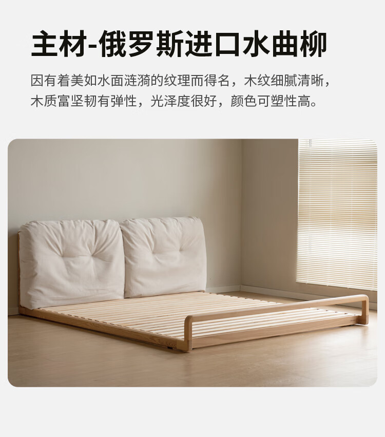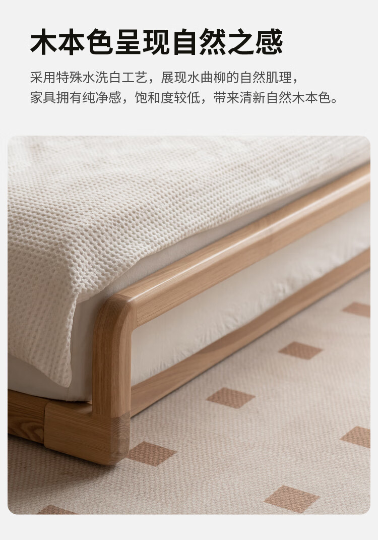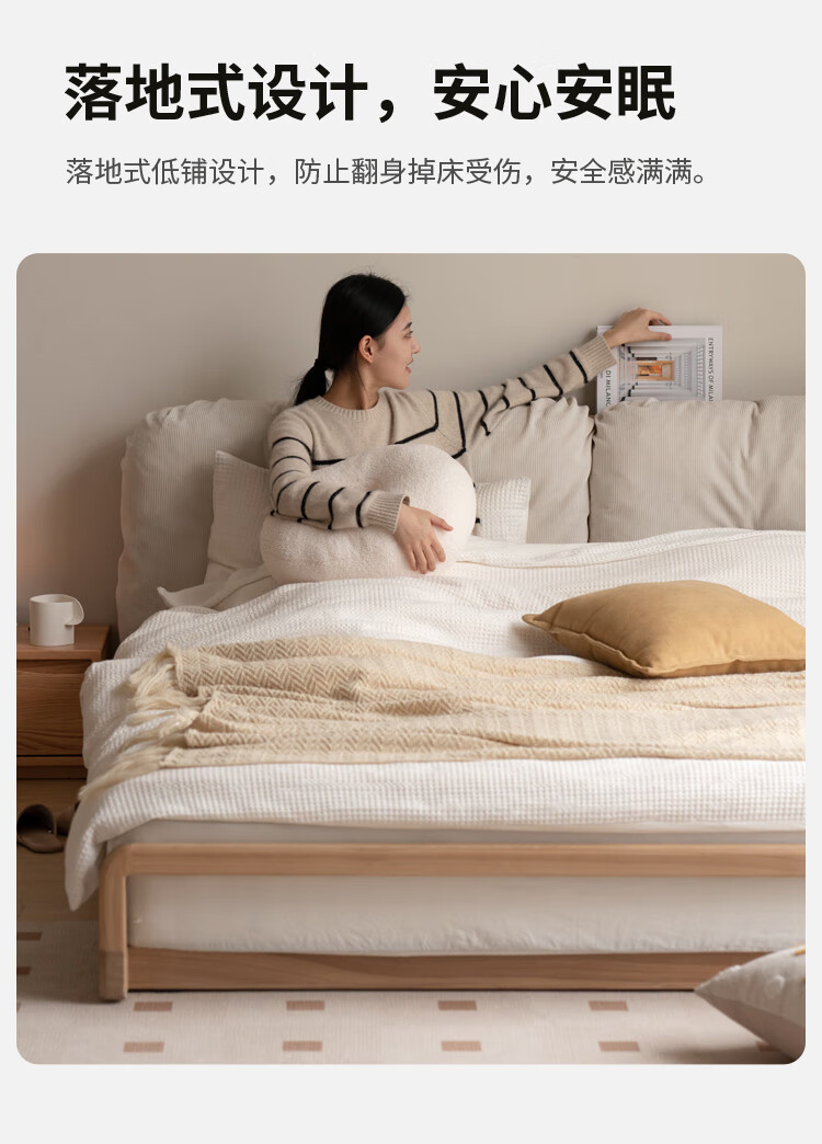 Genji Wood Language Solid Wood Bed Cream Style Down Soft Back Nordic Double Bed Bedroom Furniture Technology Cloth Bed