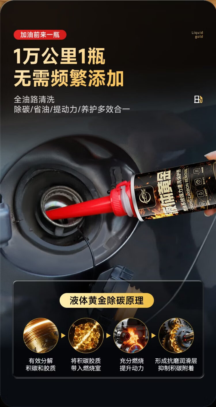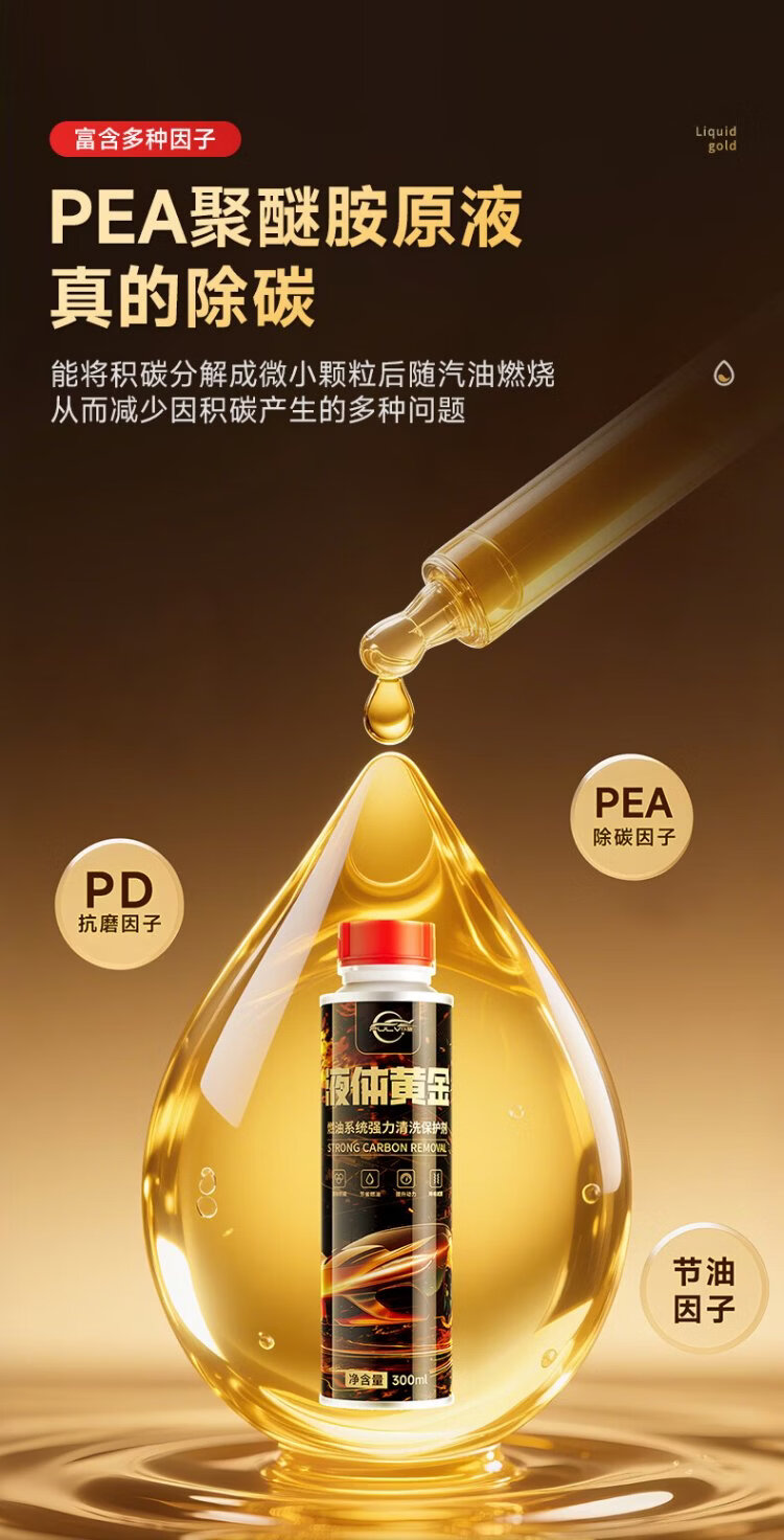 Pulu Liquid Gold Fuel Treasure removes carbon deposits, three-way catalytic converter fuel additive, carbon deposit cleaning agent 300ml*4 bottles
