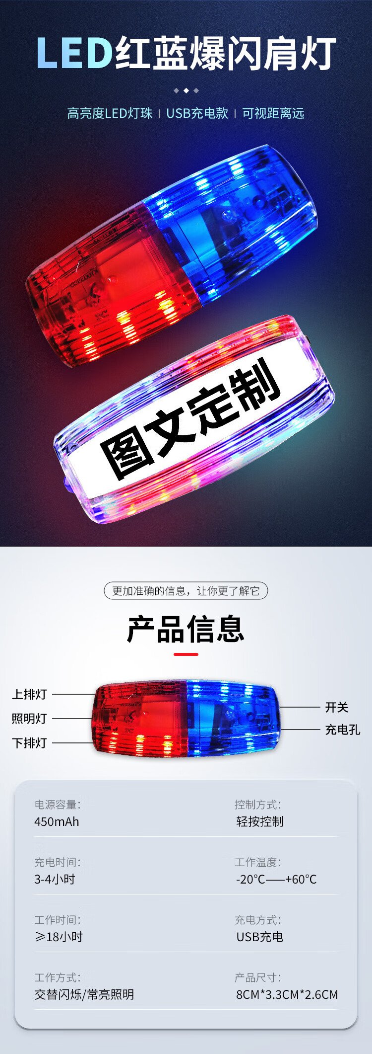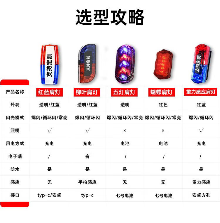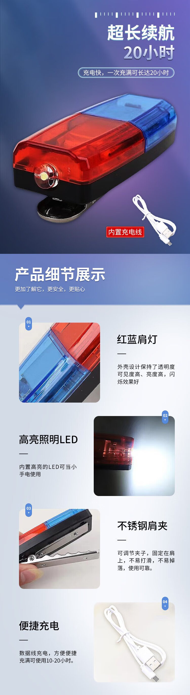 Hauskop Red and Blue Flash Shoulder Light LED Shoulder Clip-on Waterproof Warning Light Traffic Duty Patrol Cycling Distress Signal Light Rechargeable Duty Transparent Version with Charging Cord