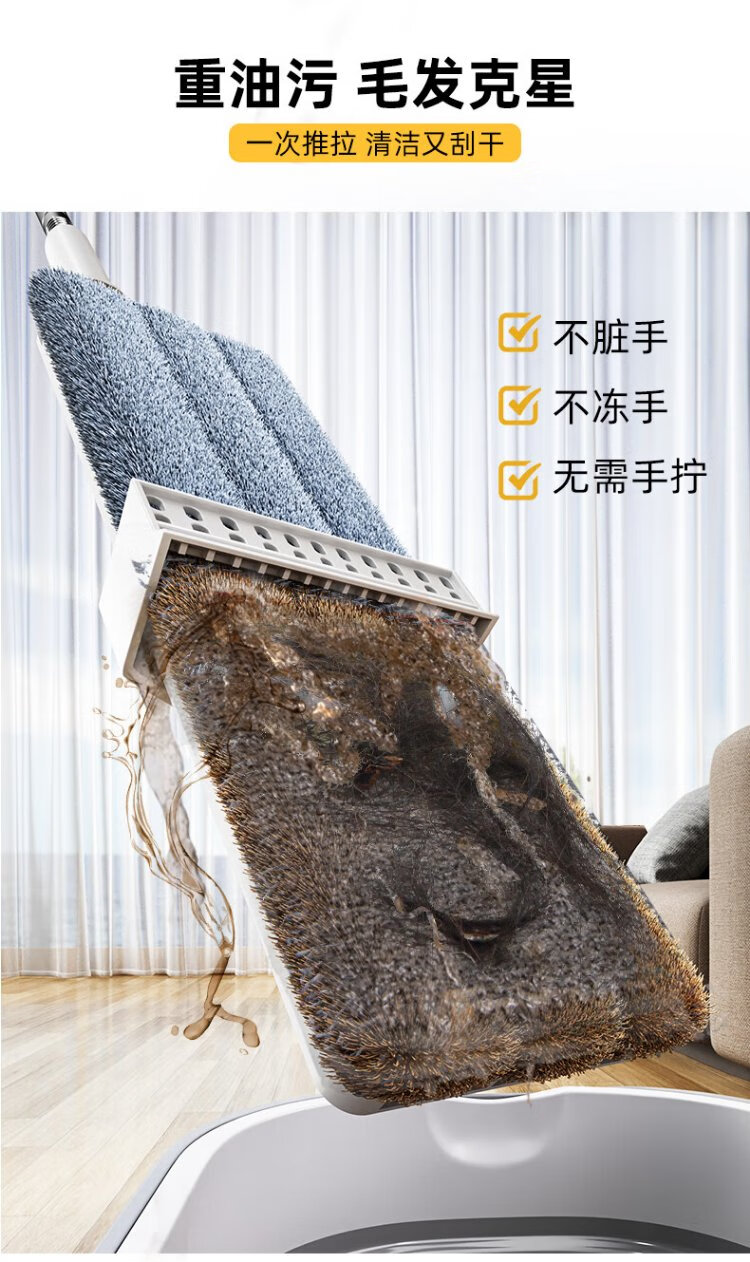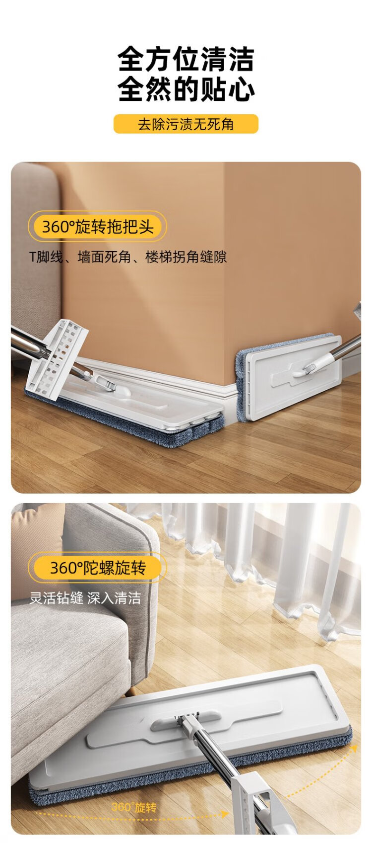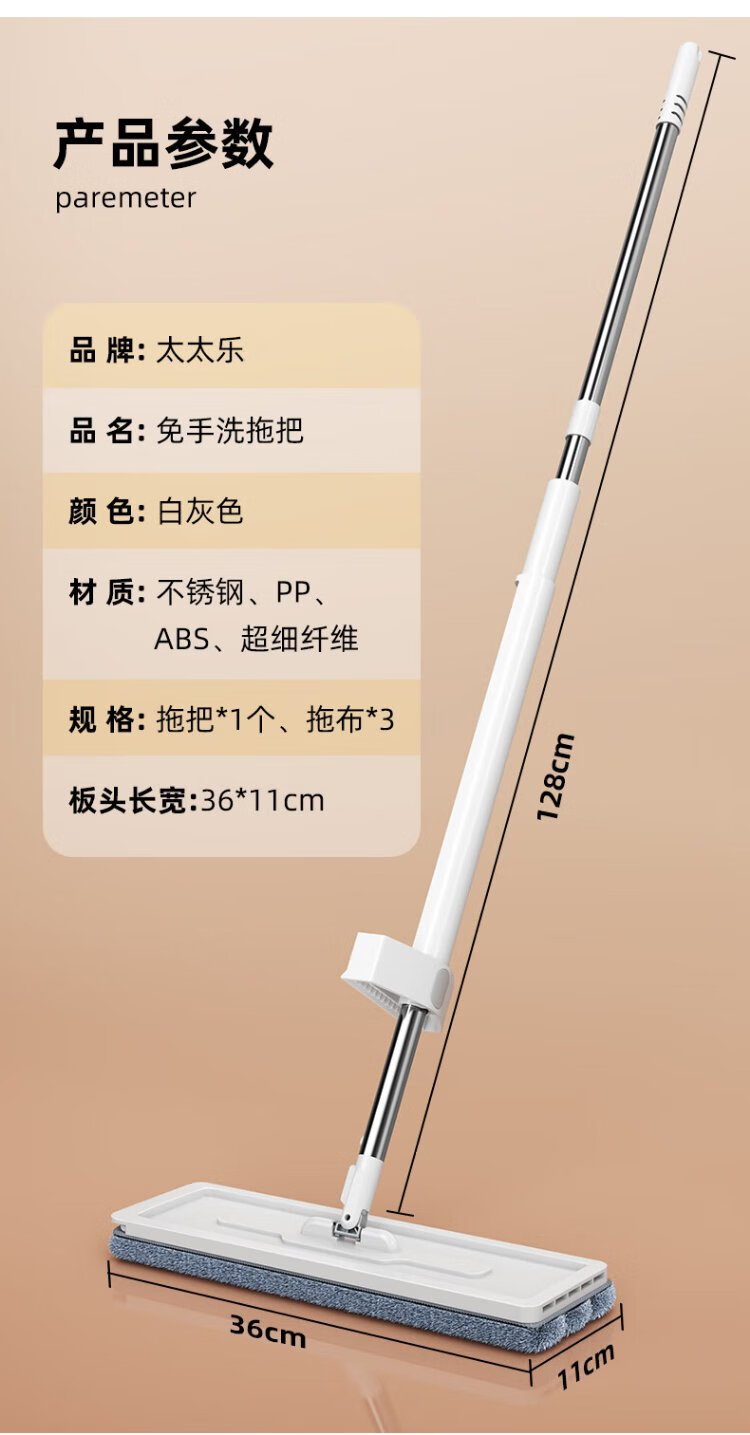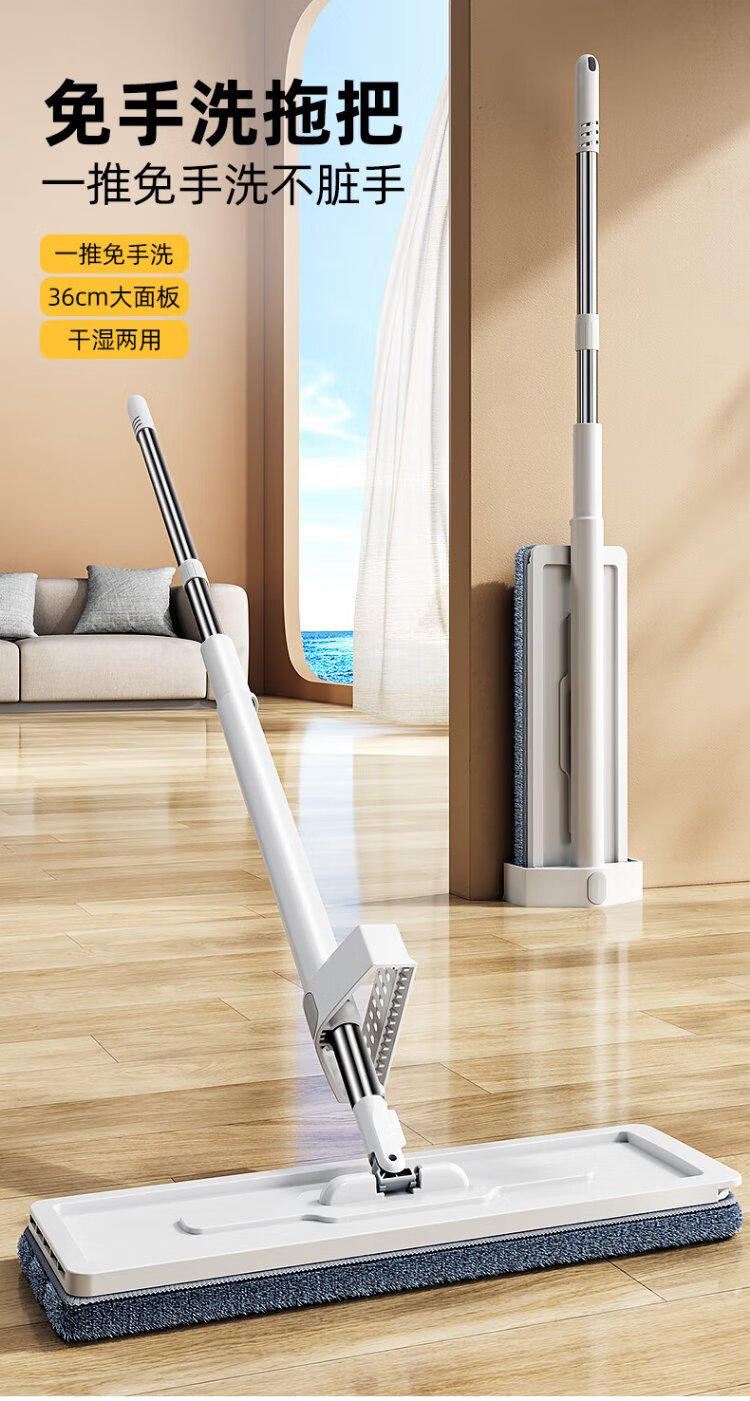Totole flat mop 36cm+3 with cloth, hand-washable household mop, a lazy mopping tool