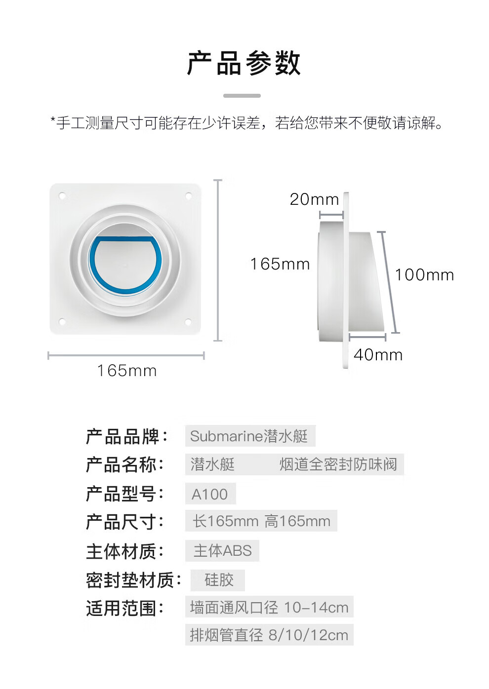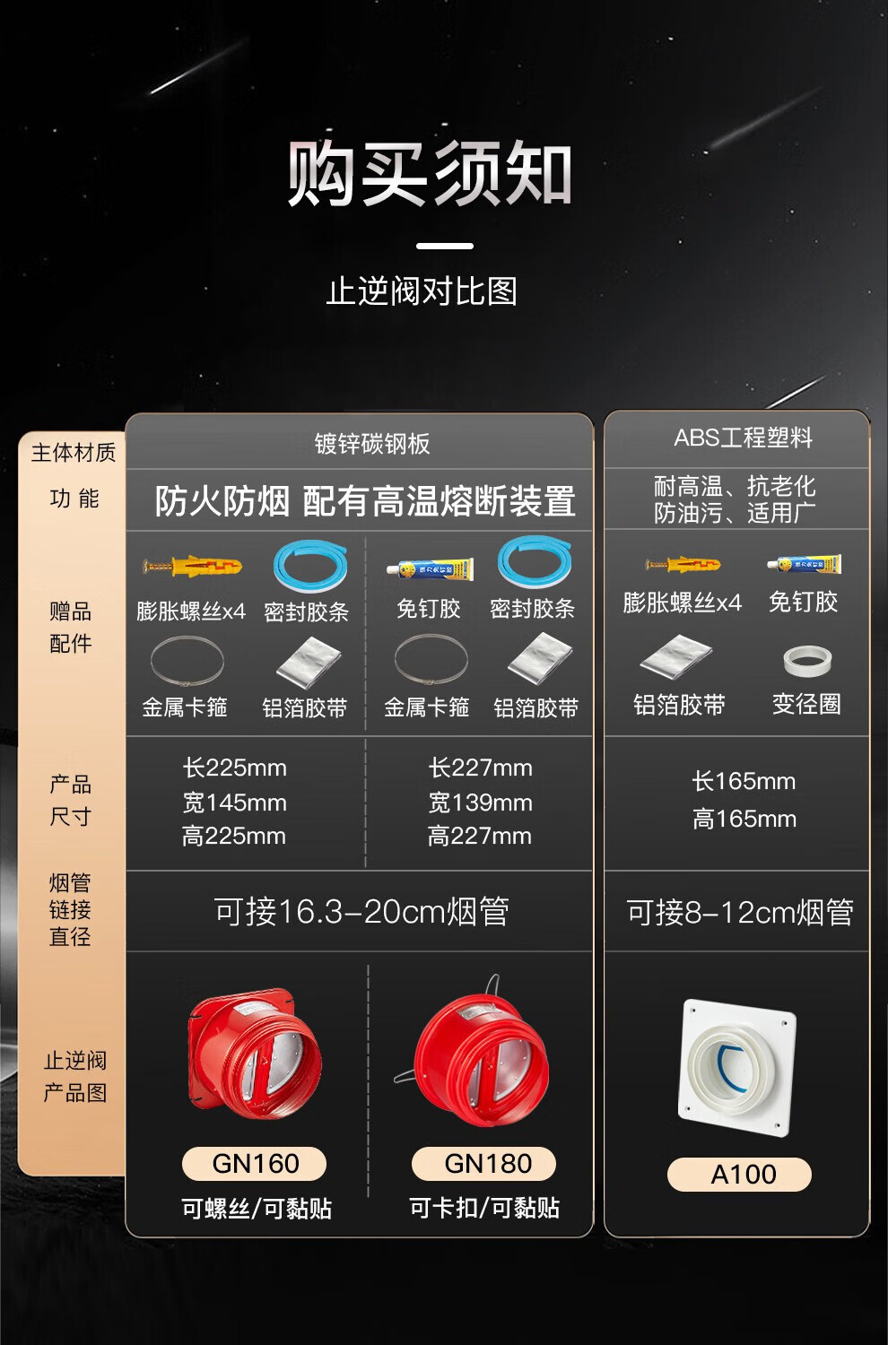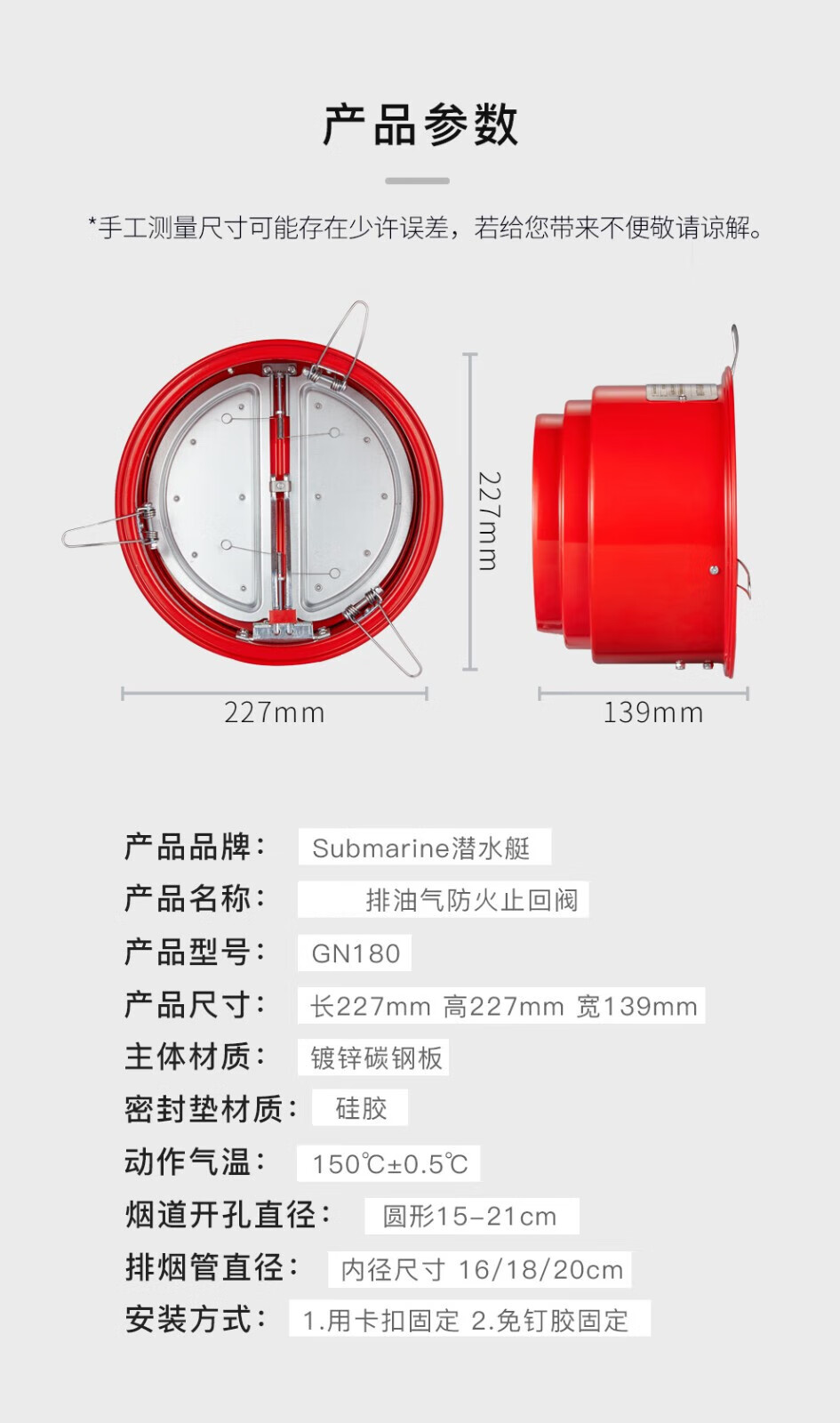 Submarine F200 check valve kitchen range hood bathroom anti-smoke exhaust pipe thickened flue check valve