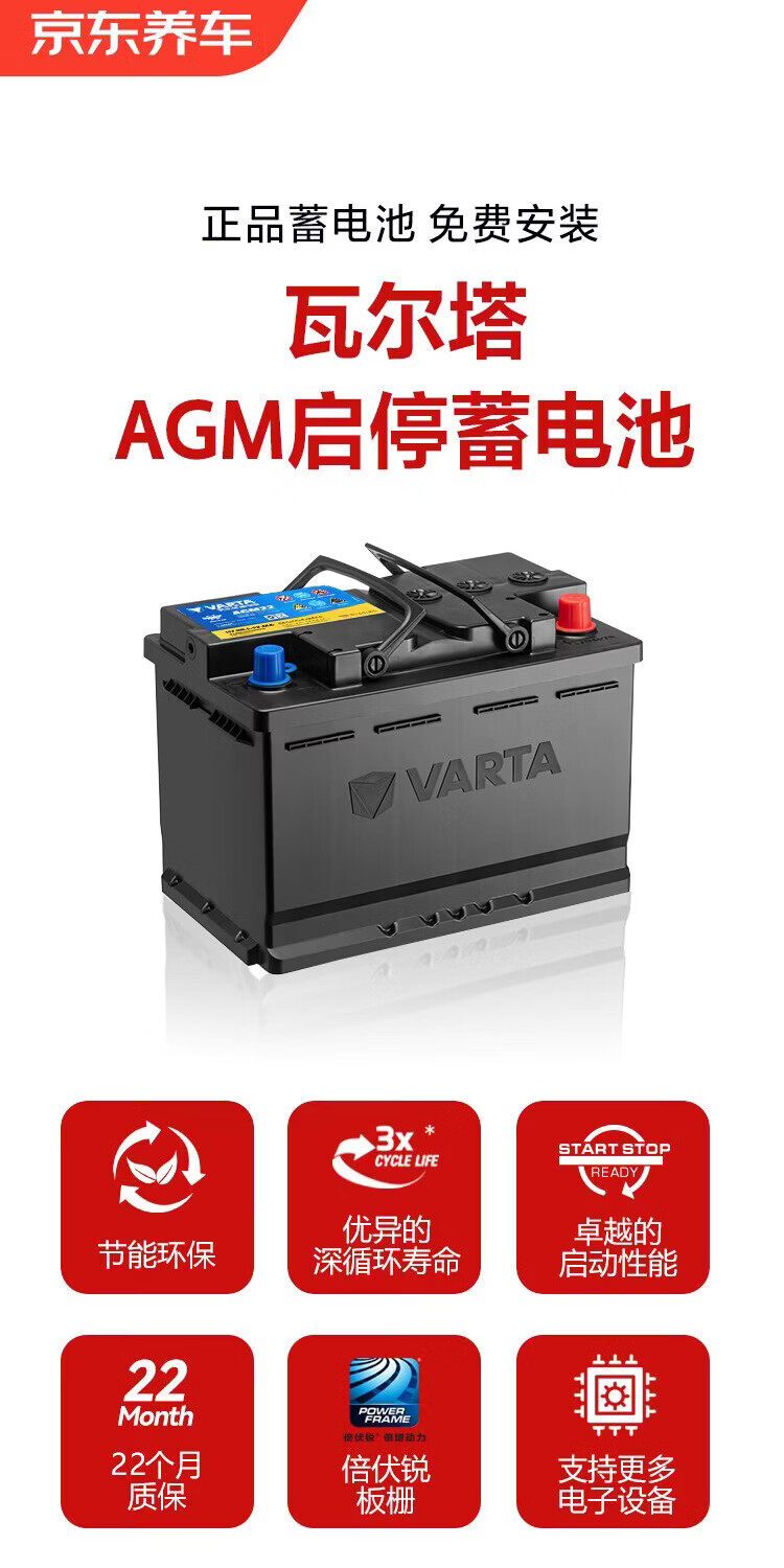 VARTA car battery starts and stops with strong power AGMH7 Mercedes-Benz GLA/GLC/GLK/CLA