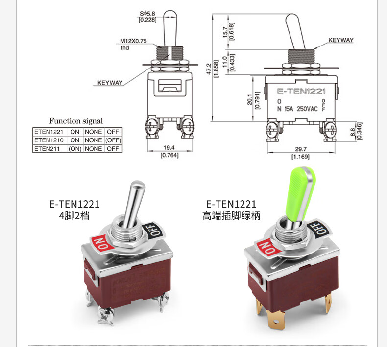 KNLN toggle switch rocker switch toggle switch small switch button black bakelite KL-B201 4 feet 2 gears