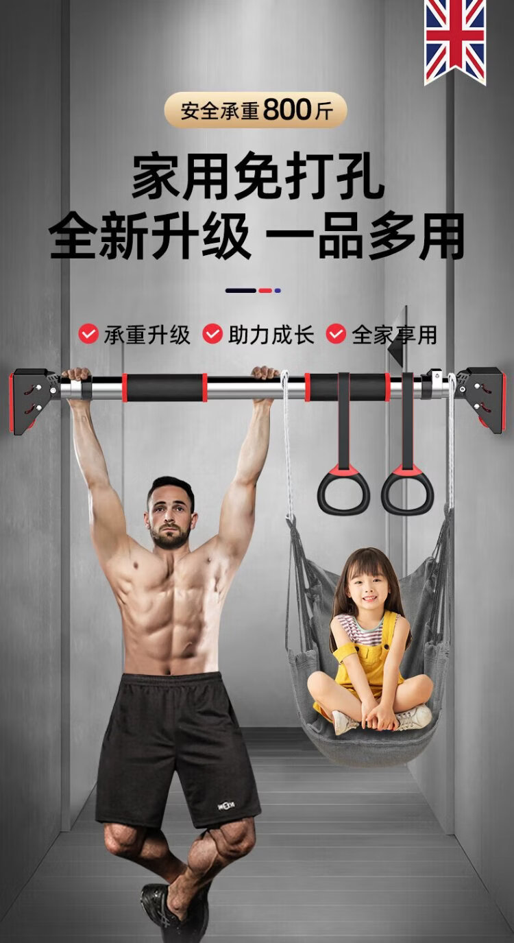 Mdikawe horizontal bar pull-up device for adults, children, indoor single pole door frame, punch-free fitness equipment, swing hammock