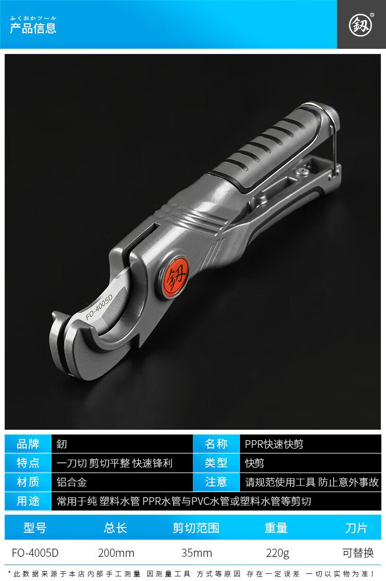 Fukuoka Tools quick-cut pipe cutter PPR scissors 35mm water pipe PVC cutting knife pipe cutter pipe cutter