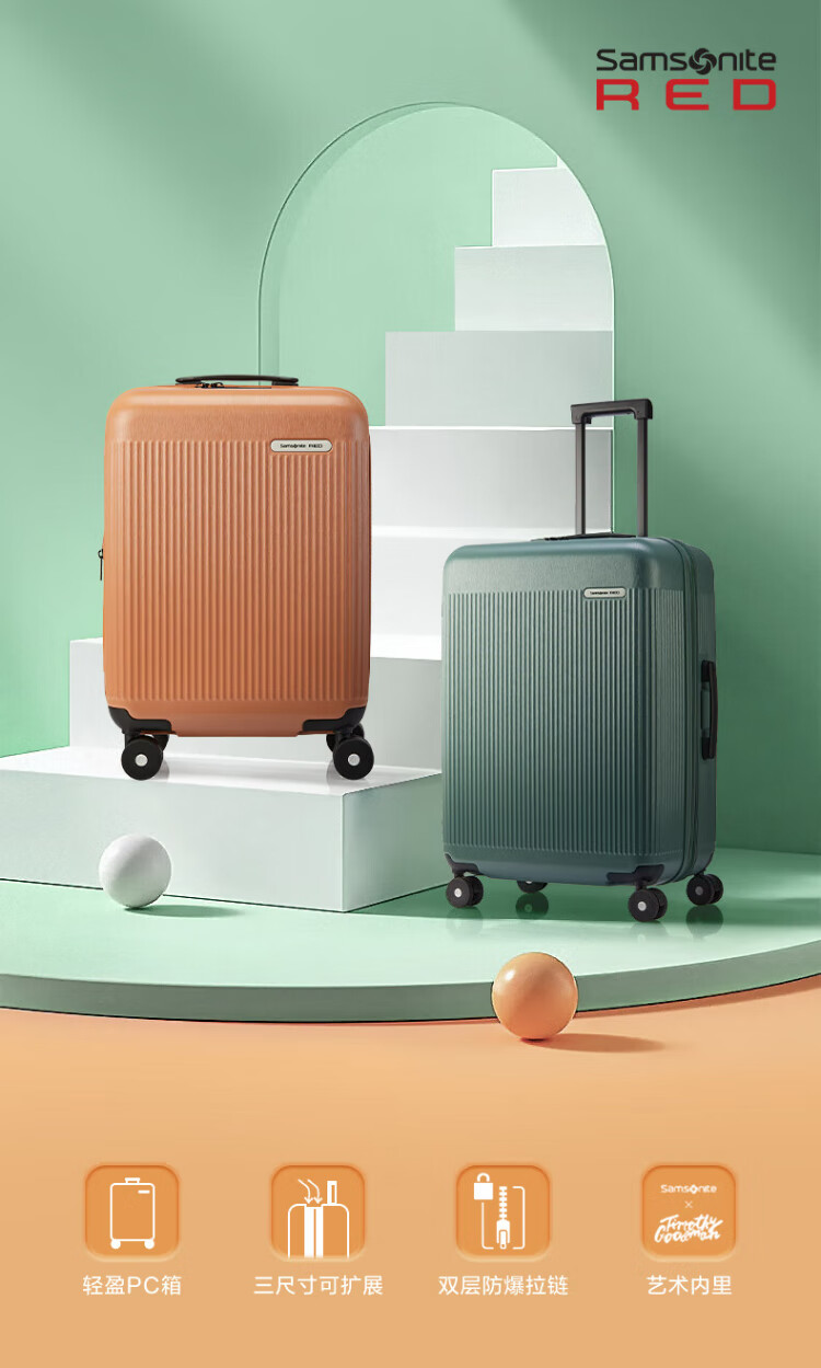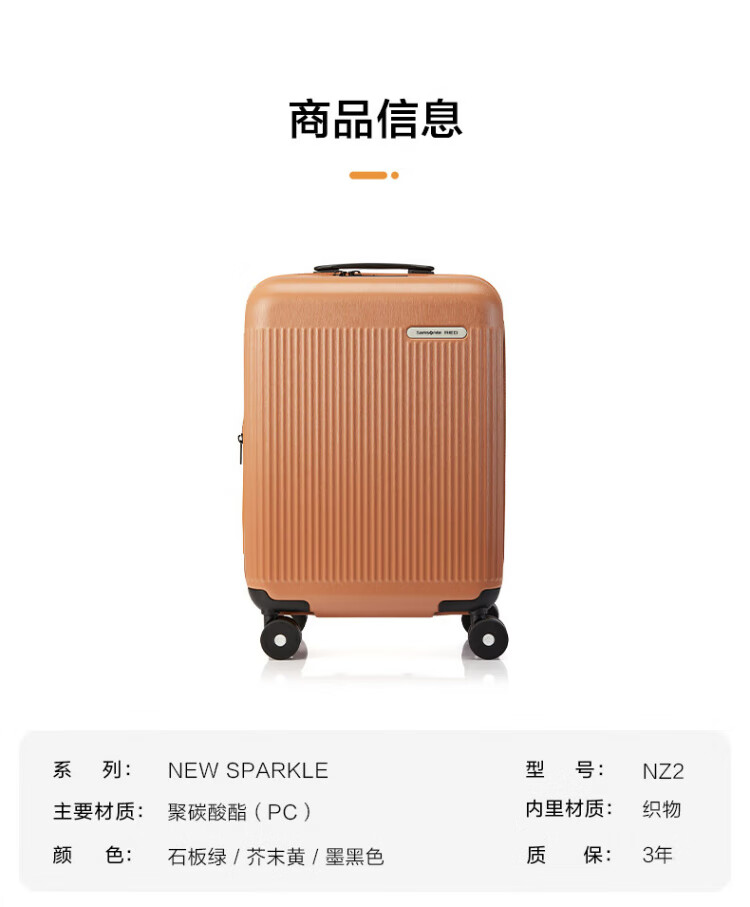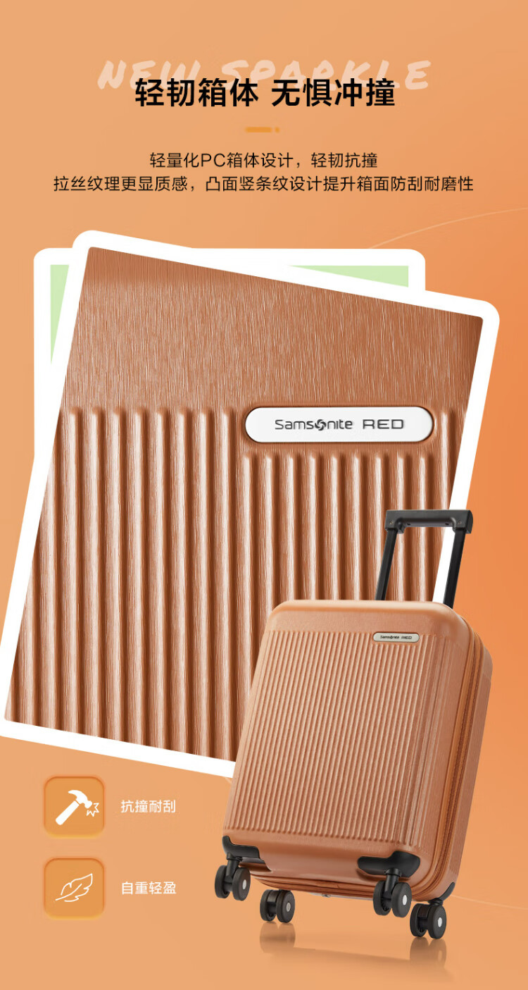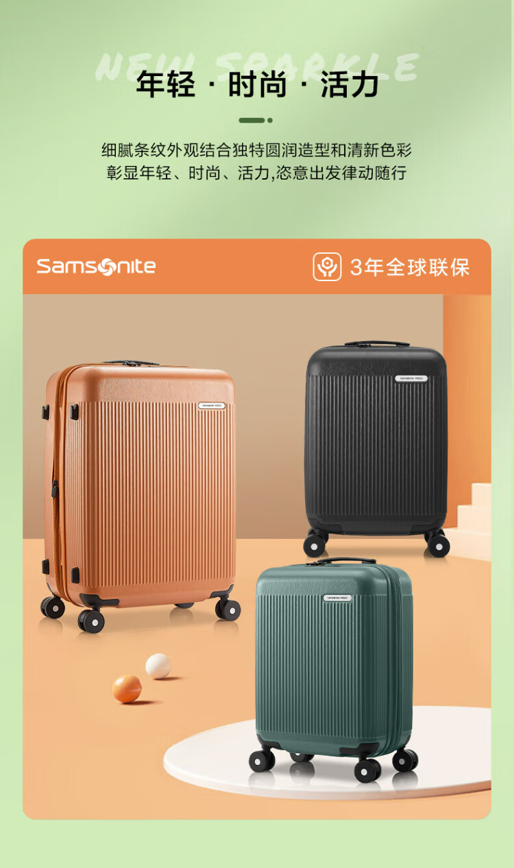 Samsonite suitcase 20-inch trolley case lightweight vertical stripe travel bag NZ2 black checked code box
