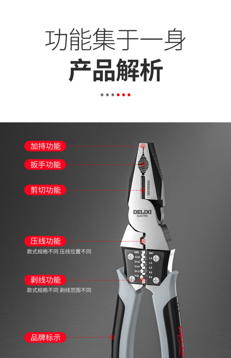 Delixi multifunctional wire pliers vise pointed nose pliers oblique nose pliers diagonal nose pliers special electrician wire pulling and cutting pliers