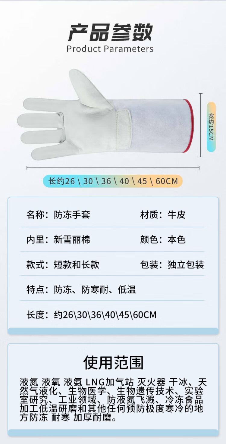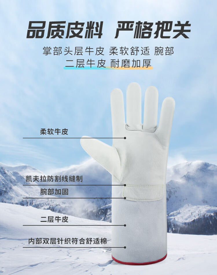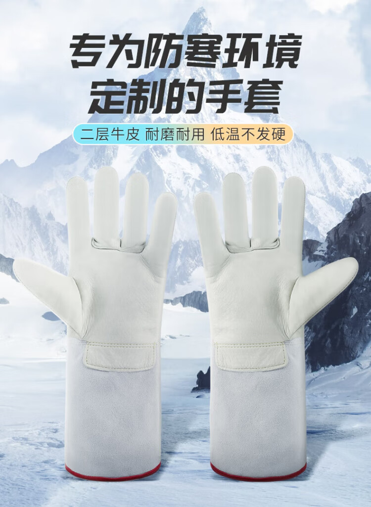 Beifute antifreeze gloves cowhide low temperature resistant and liquid nitrogen resistant gloves cold storage labor protection gloves cold and antifreeze gloves 36cm