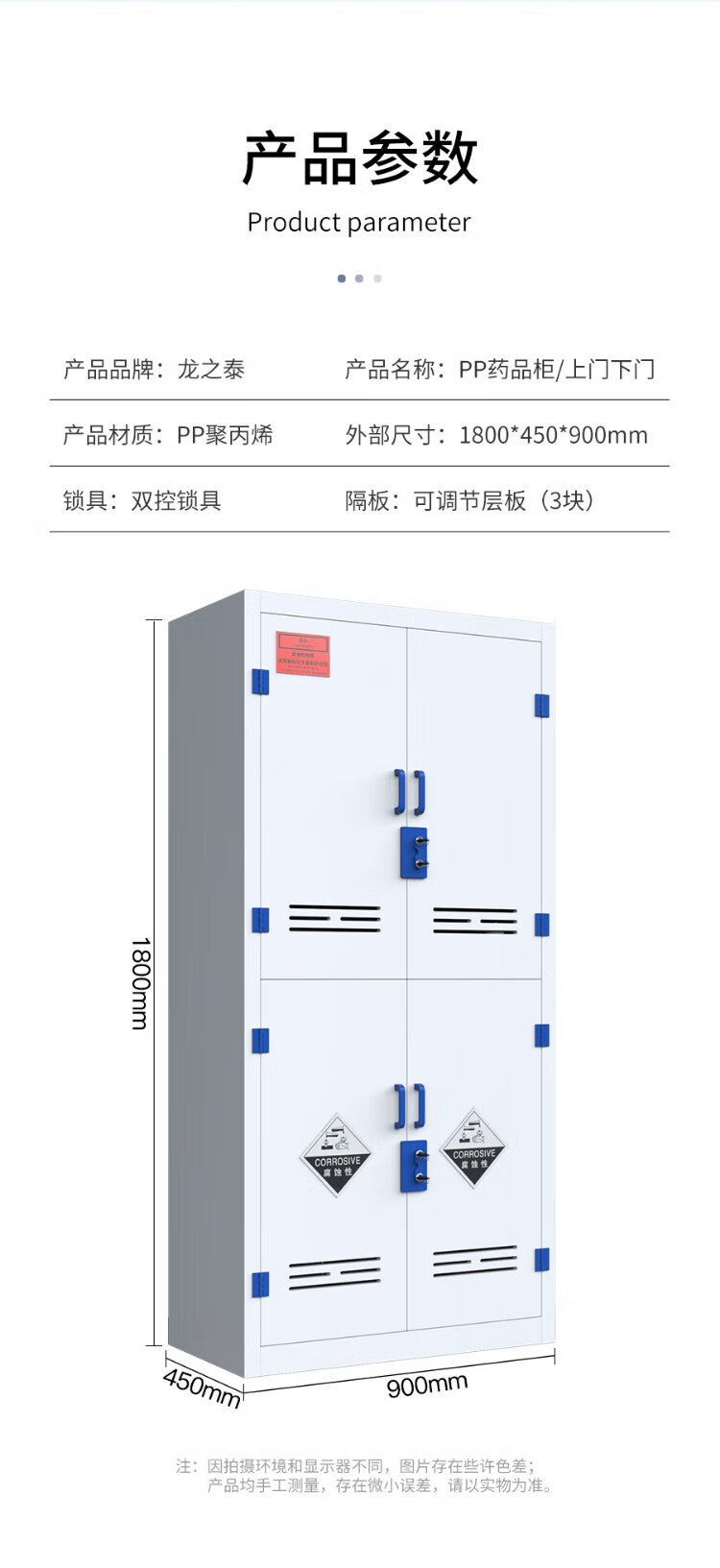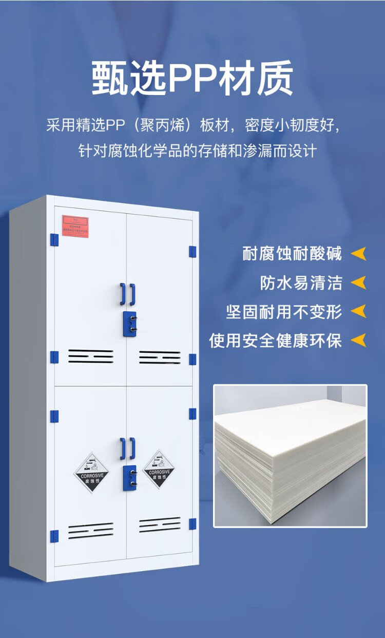 Longzhitai anti-corrosion cabinet pp acid-base cabinet chemical cabinet strong acid-base item cabinet laboratory reagent cabinet PP medicine cabinet upper door and lower door