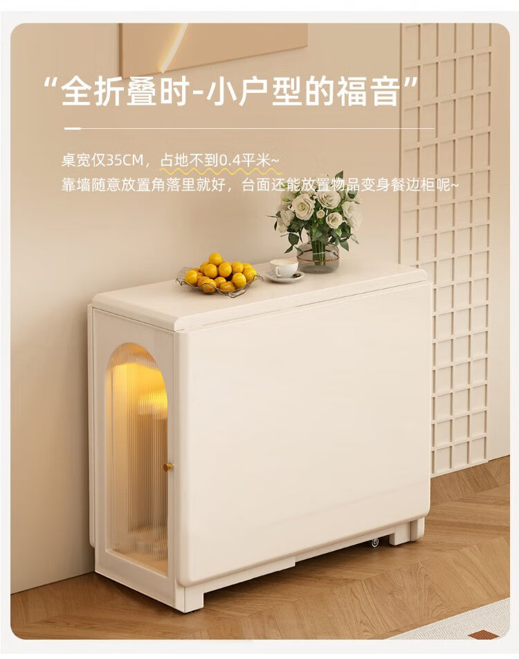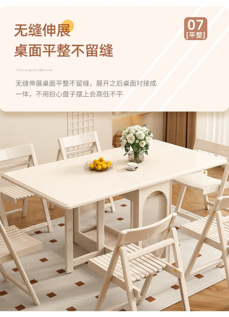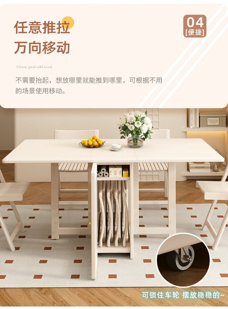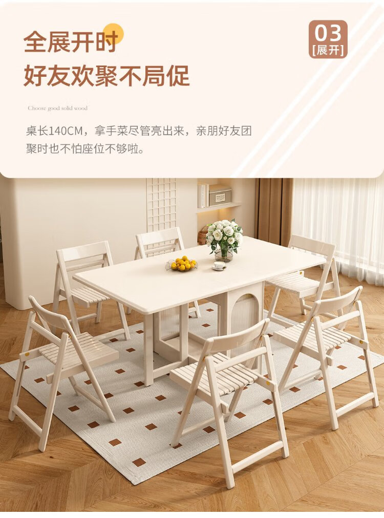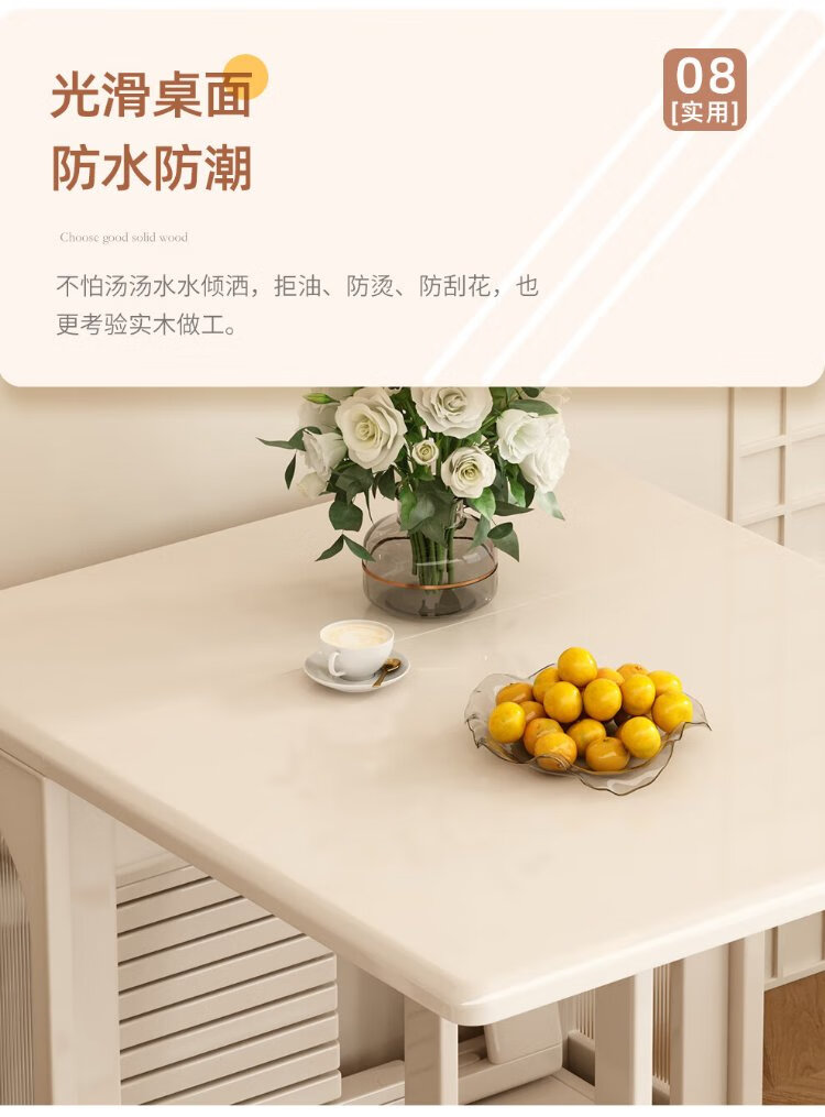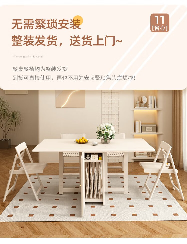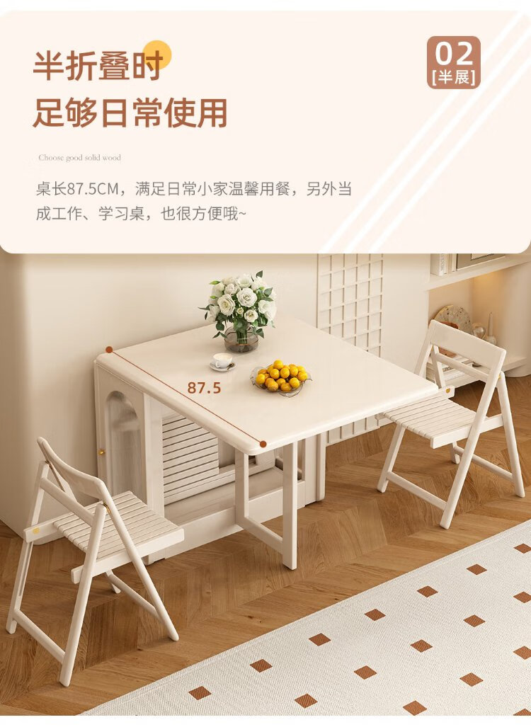 Jianxin solid wood folding dining table integrated home small apartment cream style retractable dining table white multi-functional dining table 812