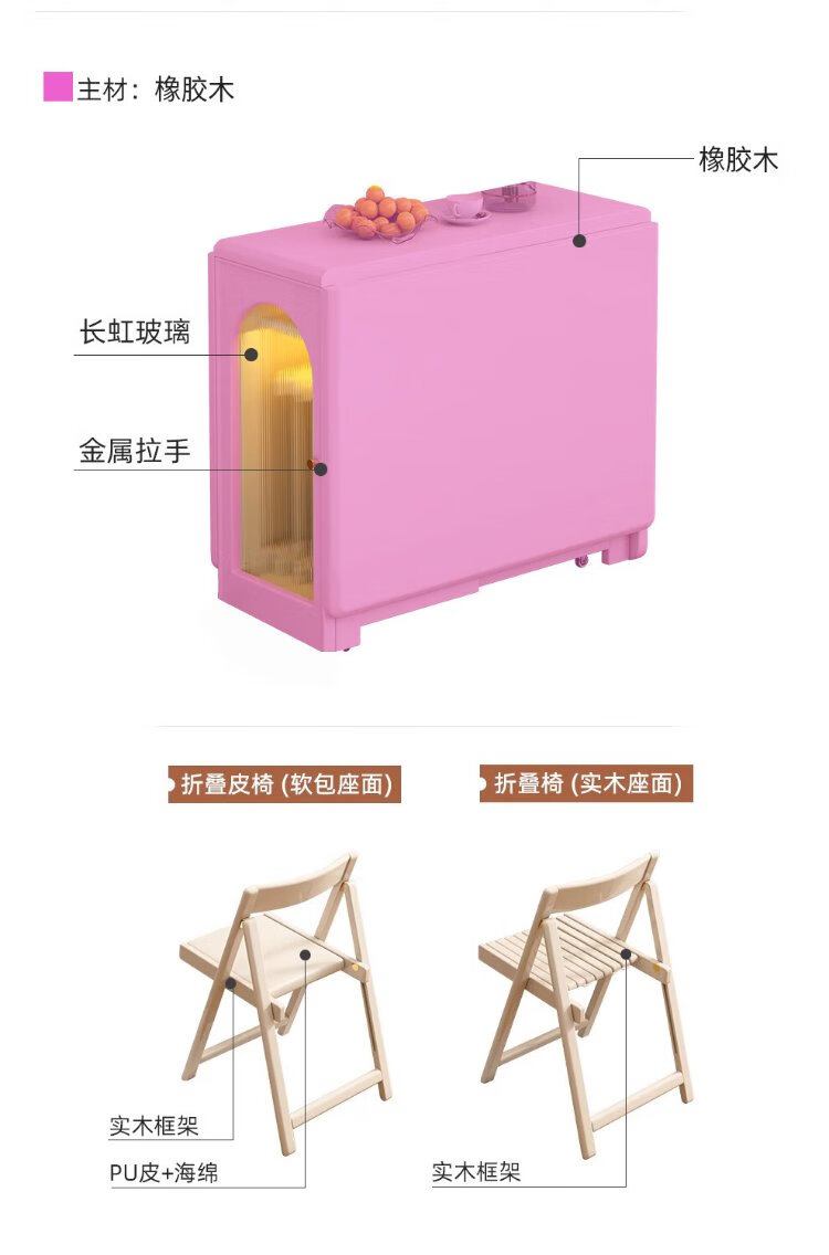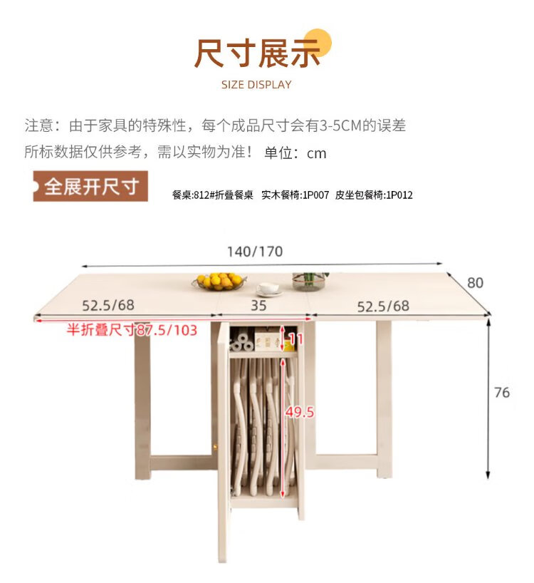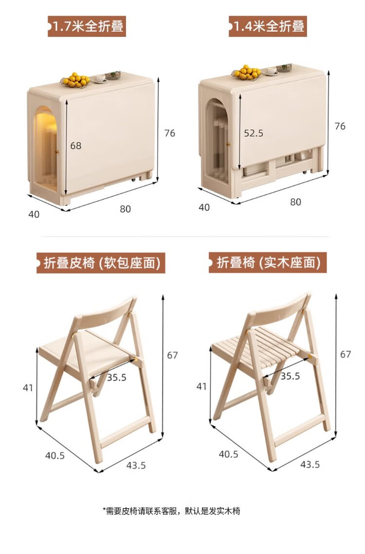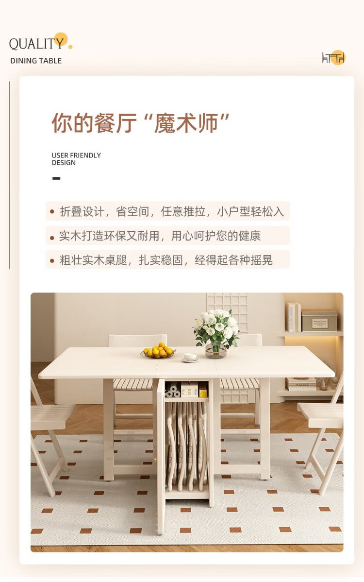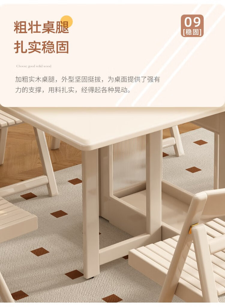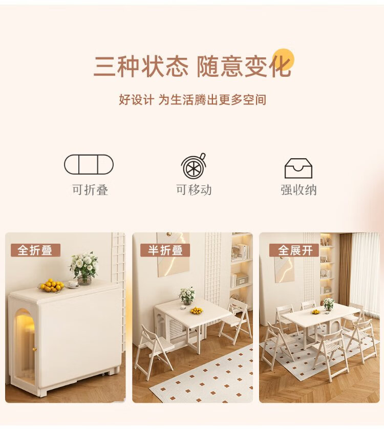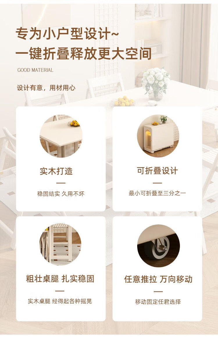 Jianxin solid wood folding dining table integrated home small apartment cream style retractable dining table white multi-functional dining table 812