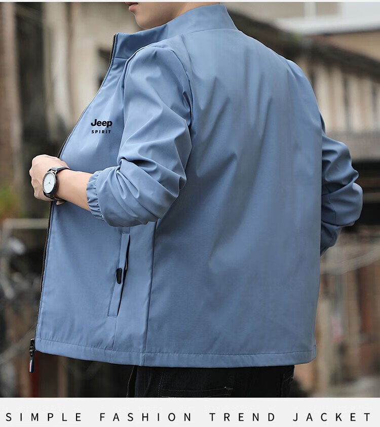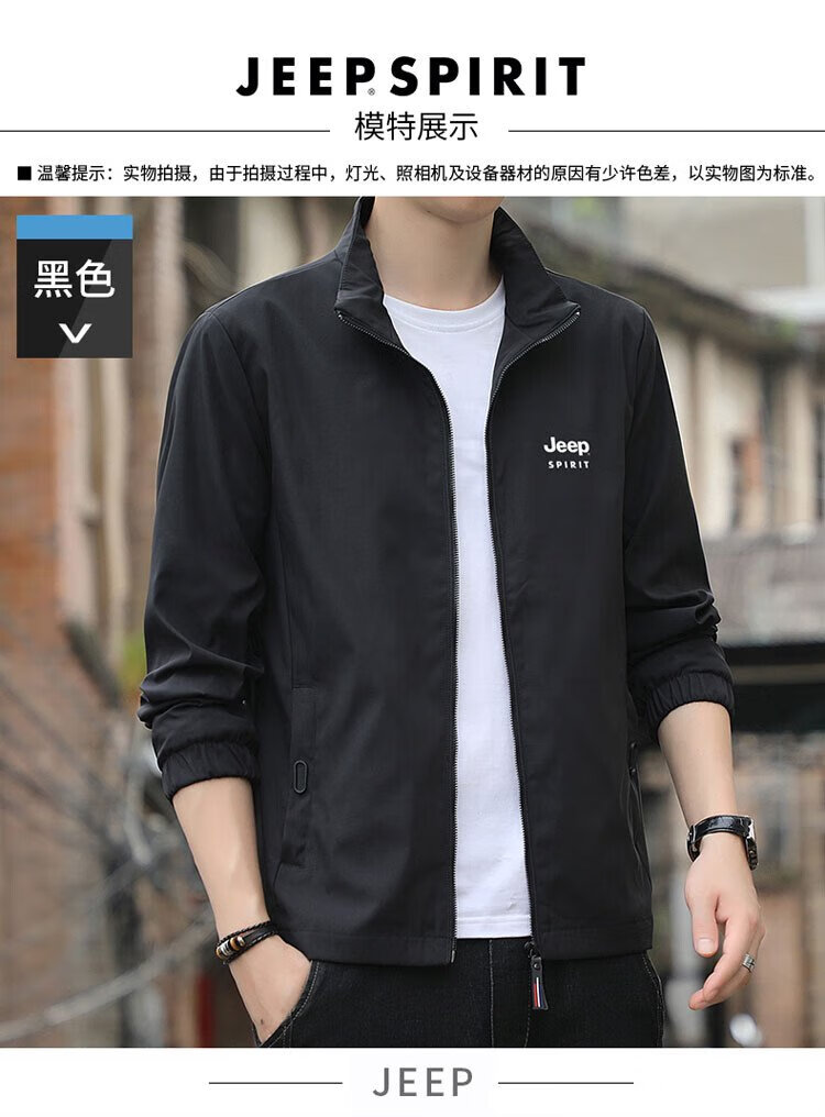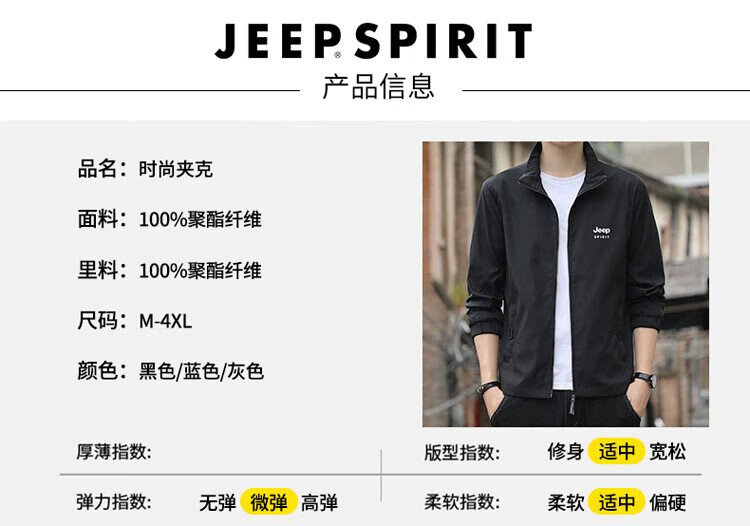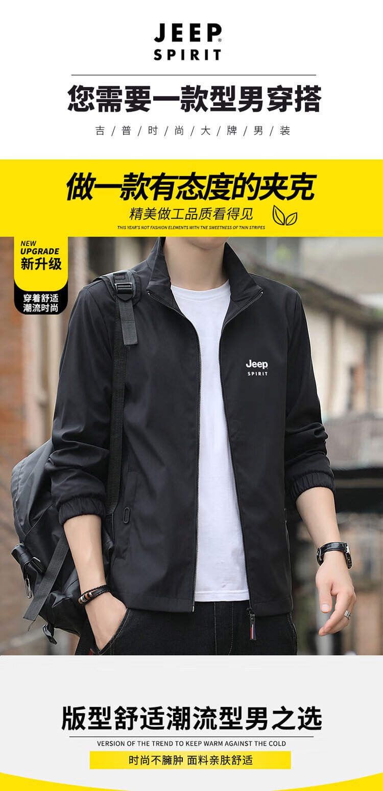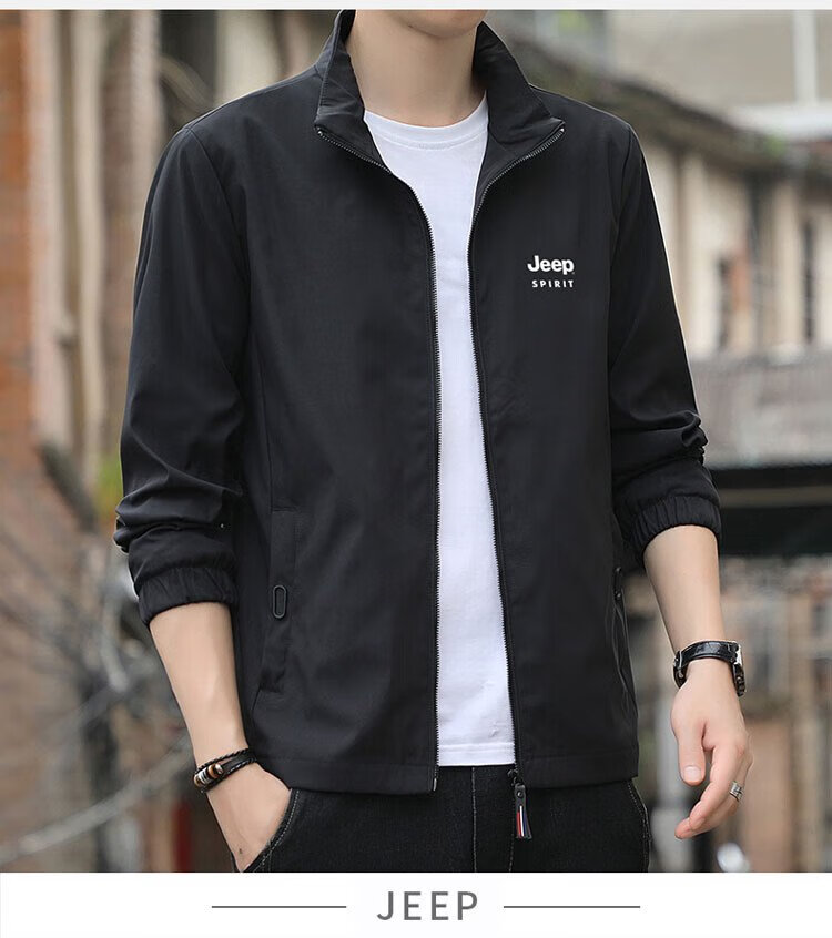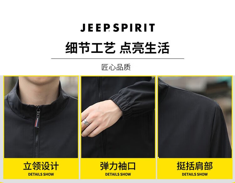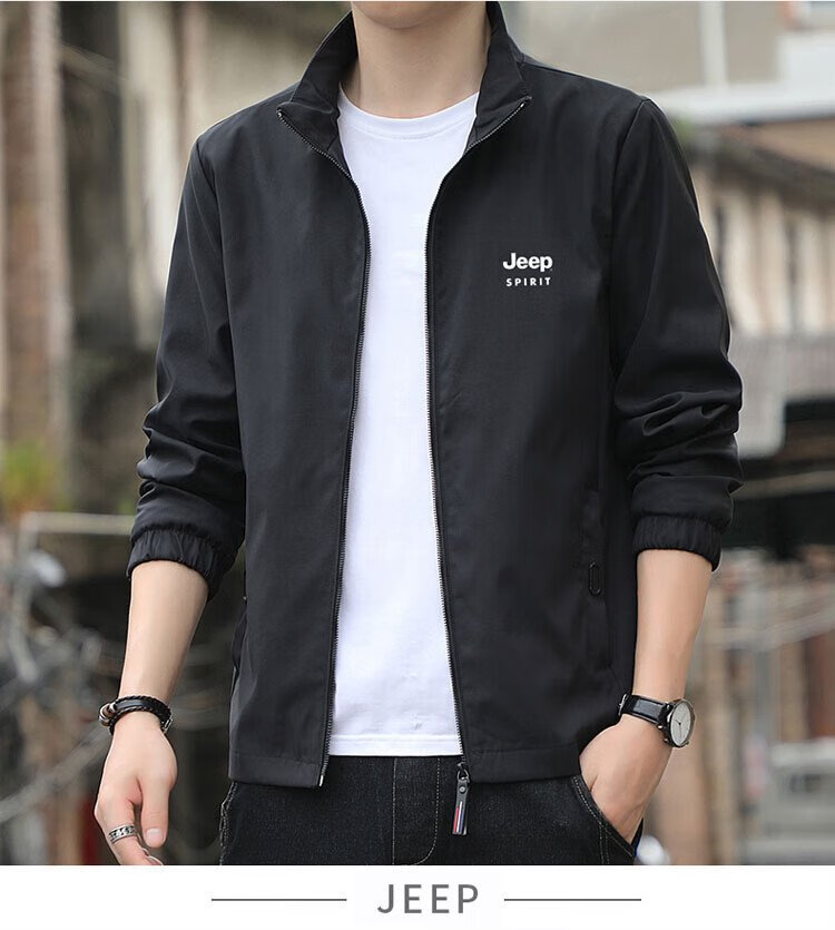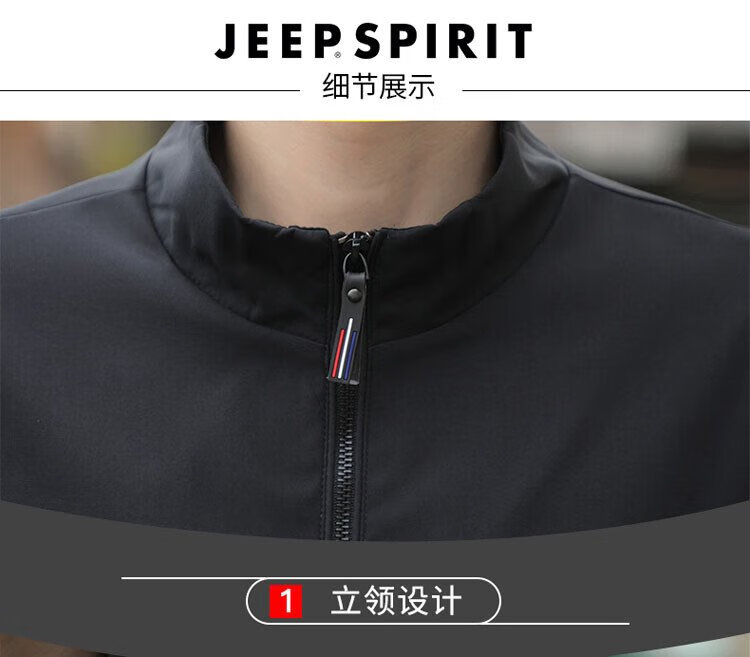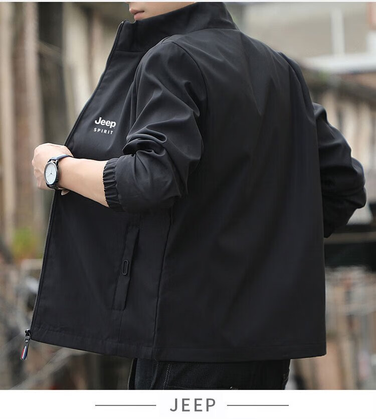 JEEP SPIRIT Jeep Jacket Men's Trendy Autumn and Winter Jacket Men's Stand Collar Slim Clothes Black XL