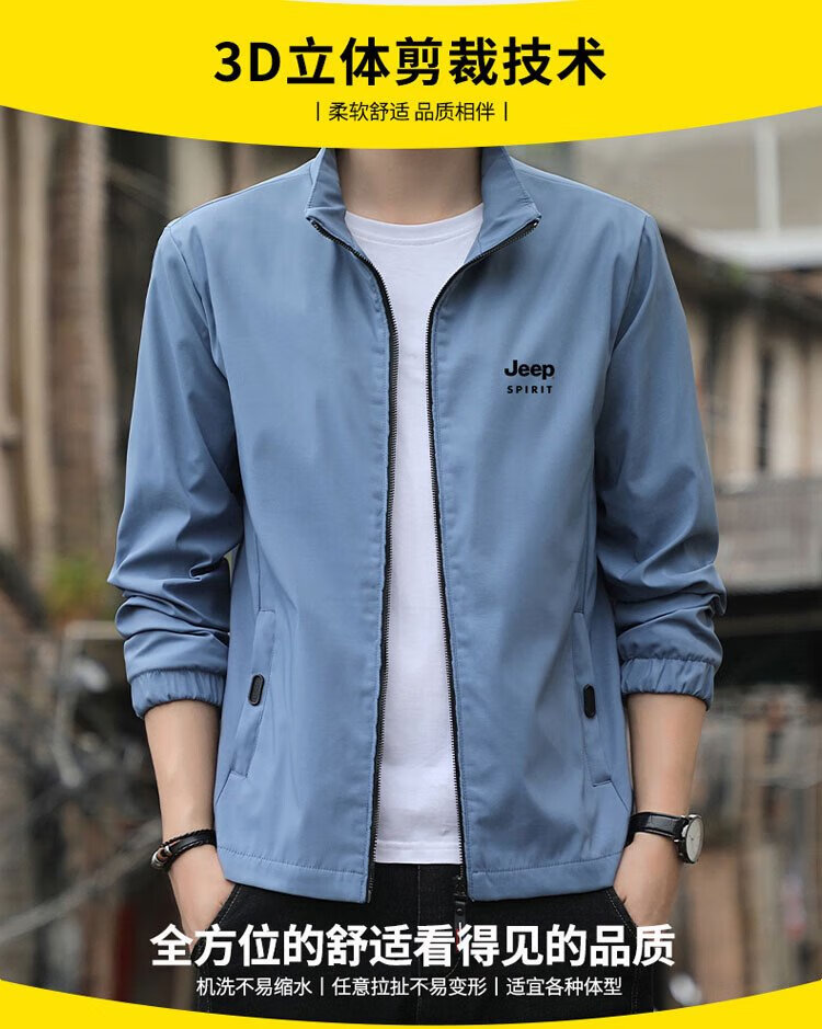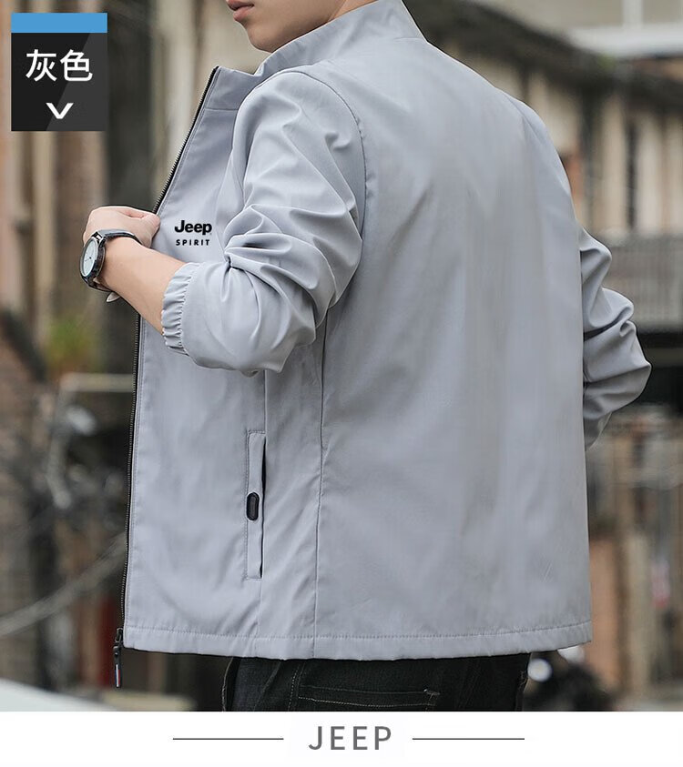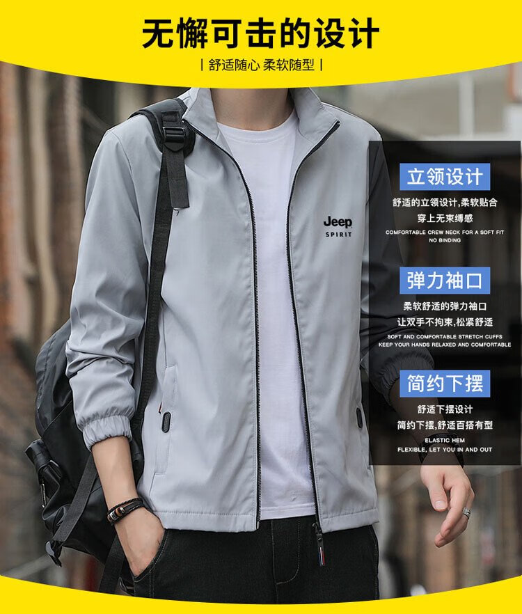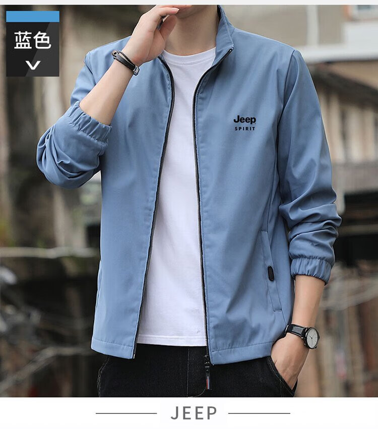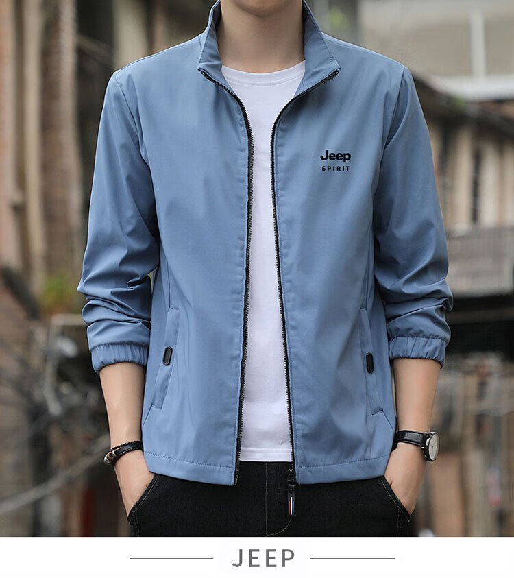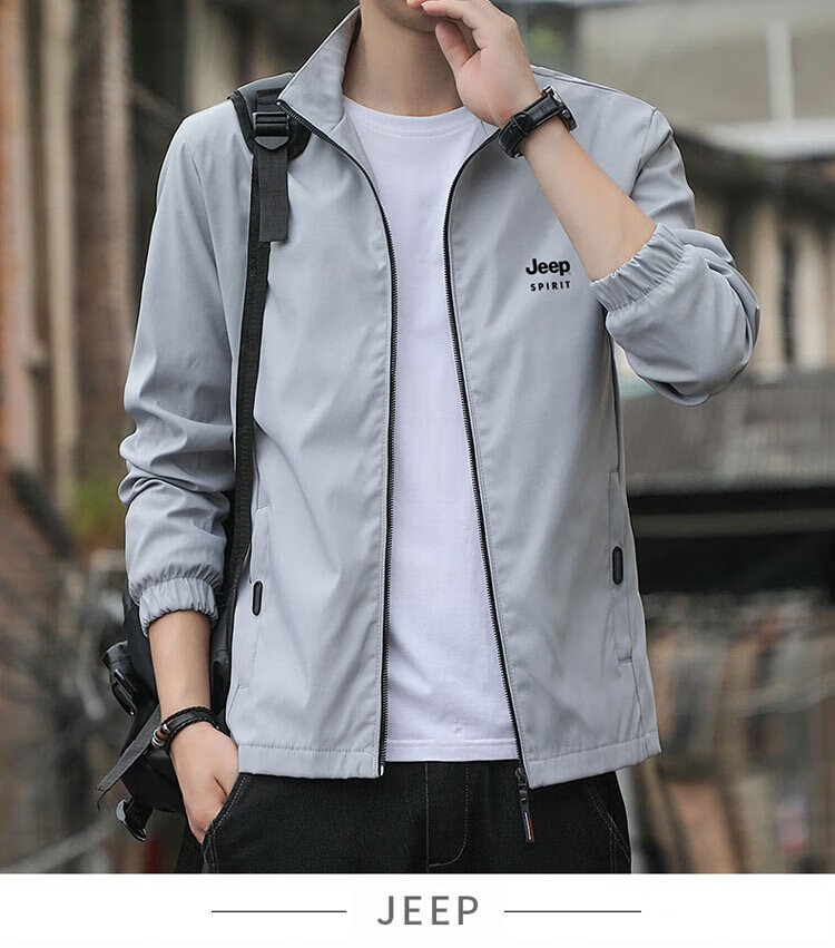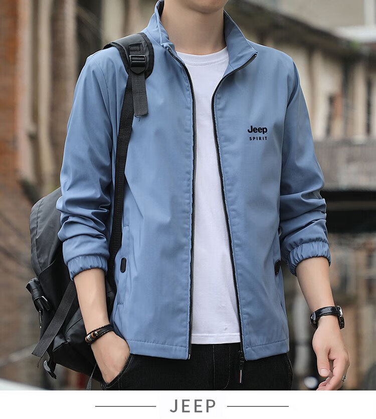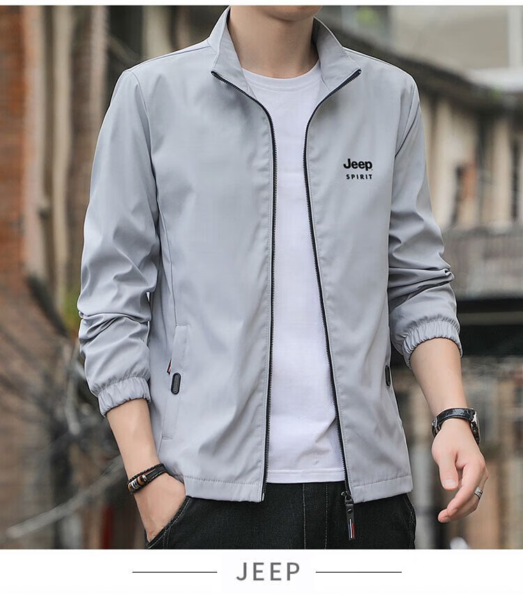 JEEP SPIRIT Jeep Jacket Men's Trendy Autumn and Winter Jacket Men's Stand Collar Slim Clothes Black XL