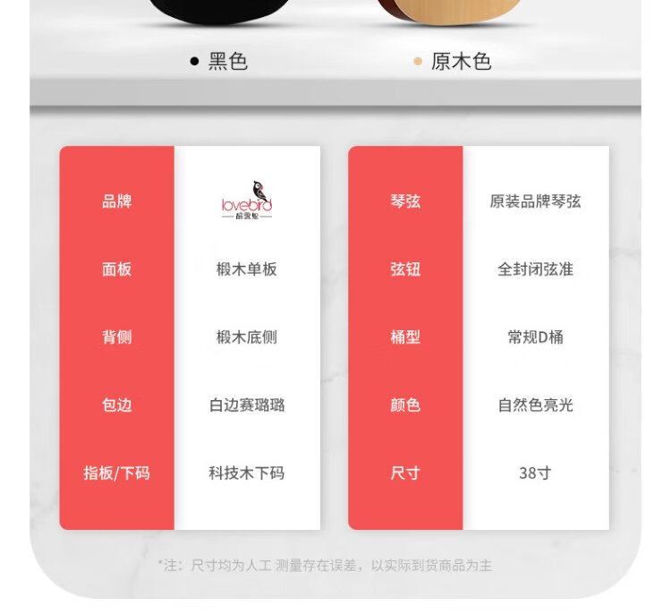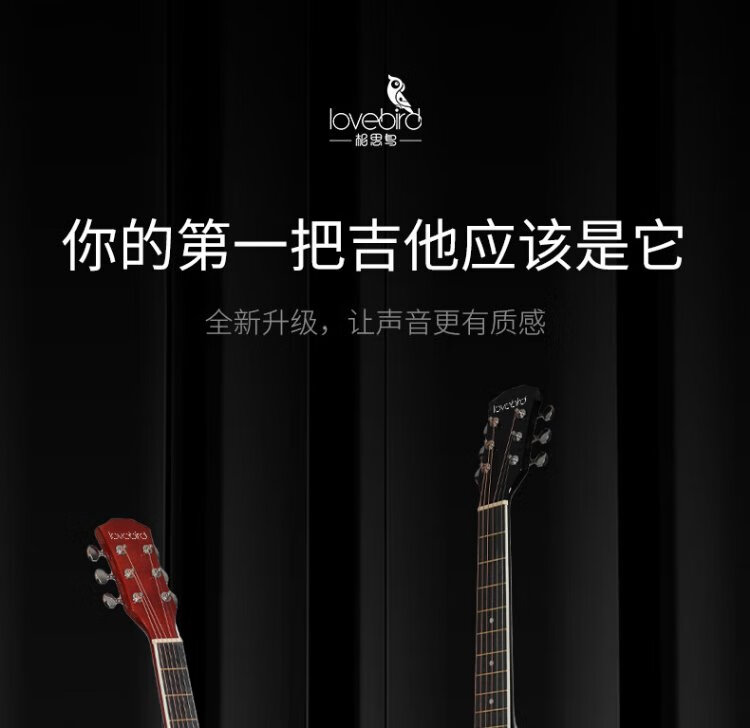 Lovebird folk guitar 38-inch beginner's entry-level guitar instrument for men and women, glossy black