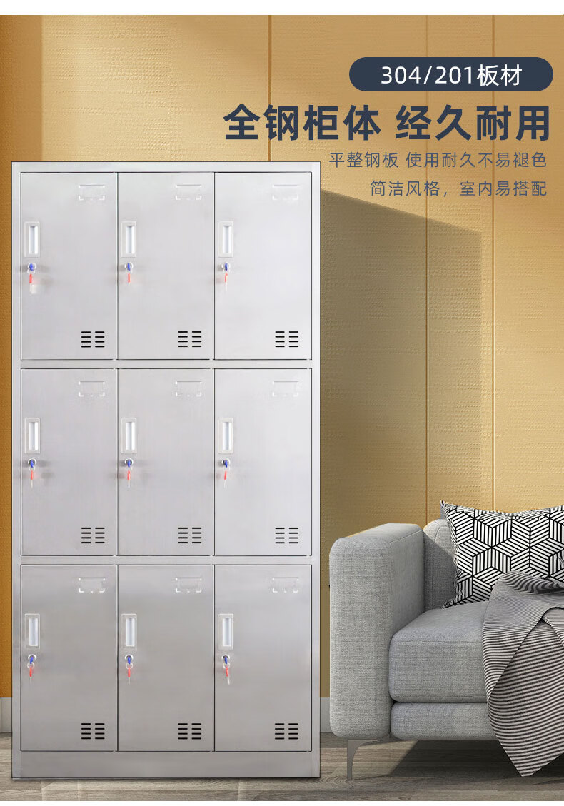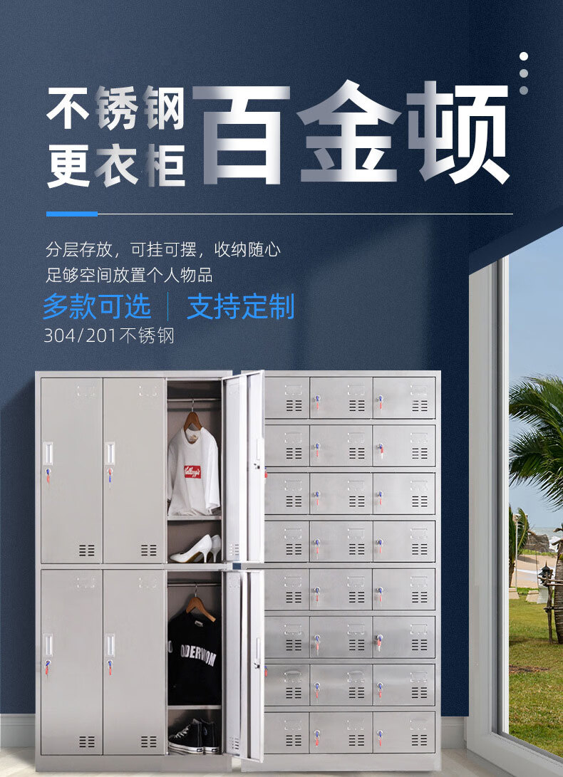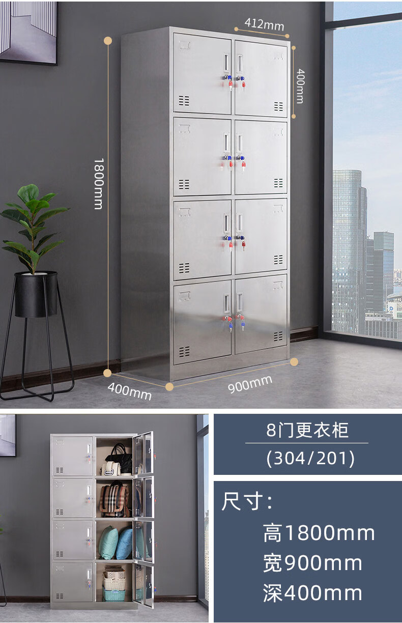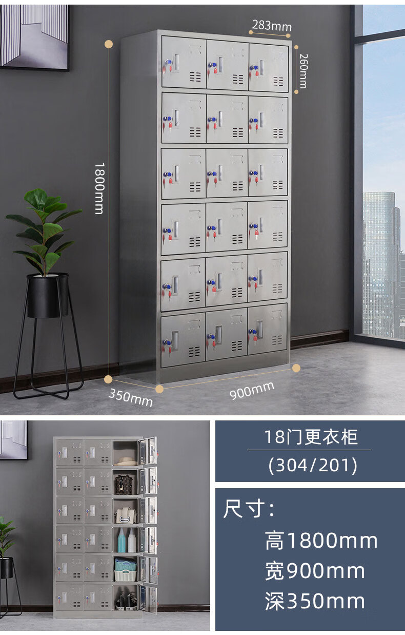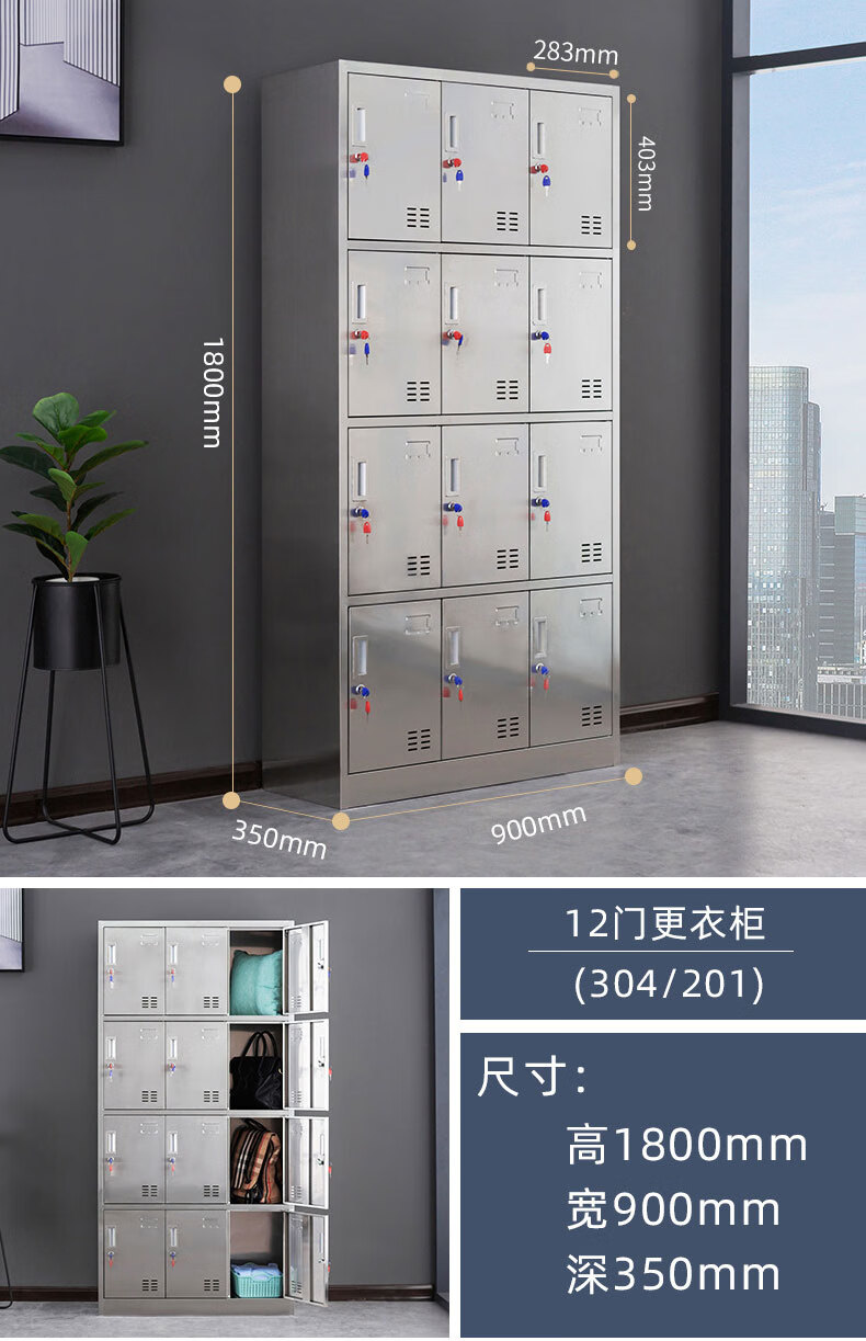 Packington 304 stainless steel changing wardrobe, iron cabinet, employee locker, bathroom lockable workshop dormitory storage cabinet, 12-door locker 1800*900*350mm