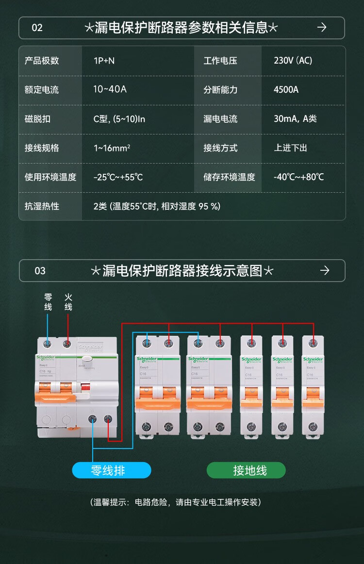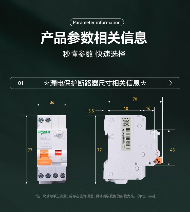Schneider leakage protection switch EA9 series circuit breaker with leakage protection 2P 63A main switch leakage protection air switch EA9RN2C6330CA