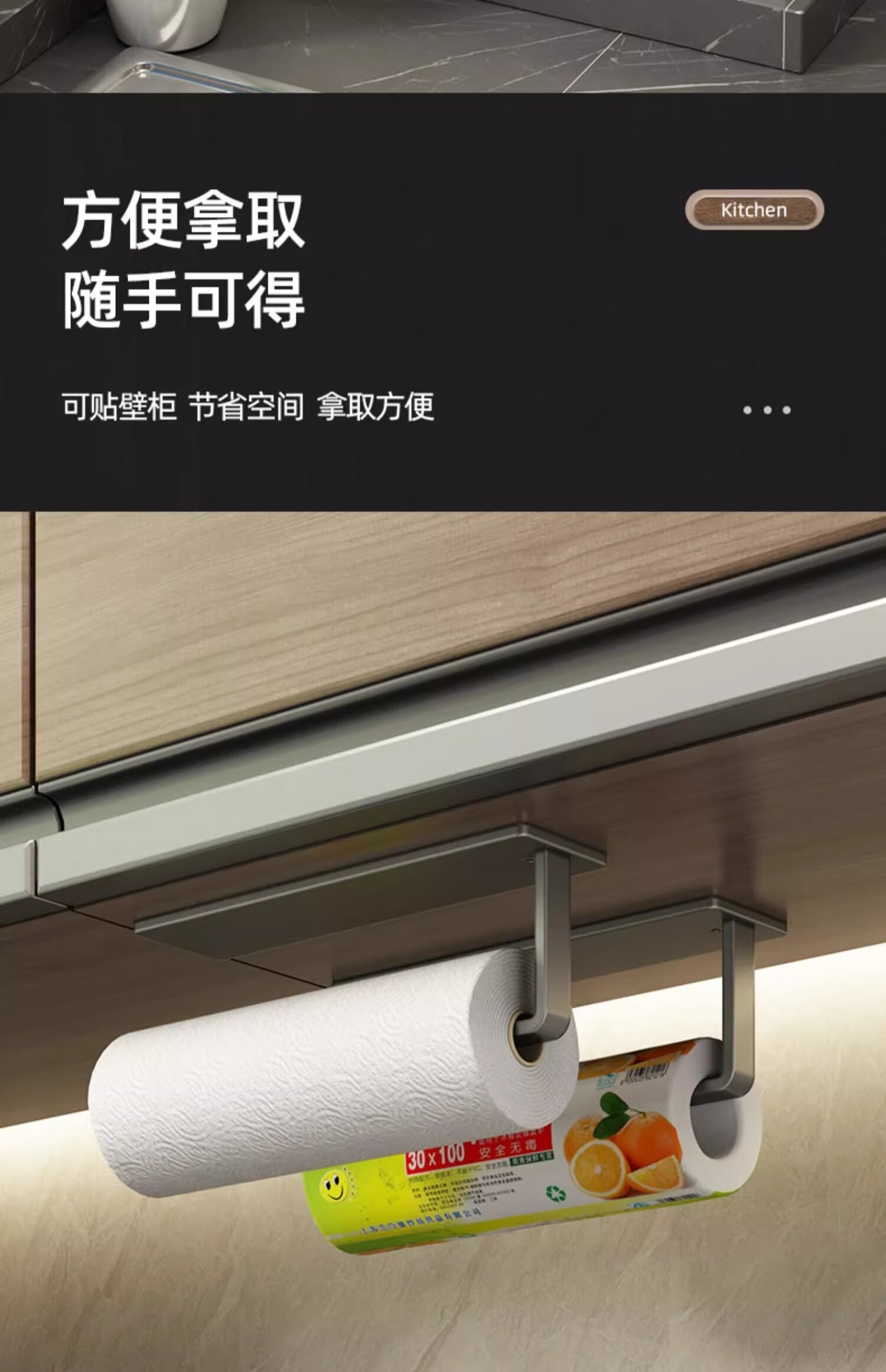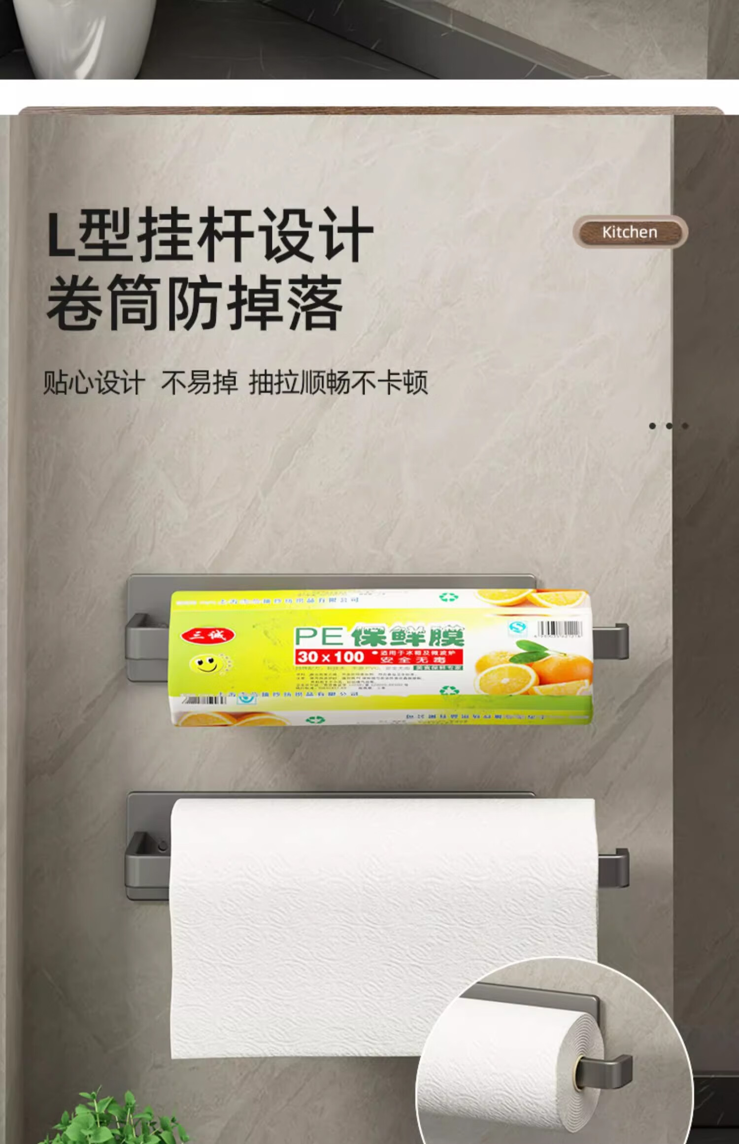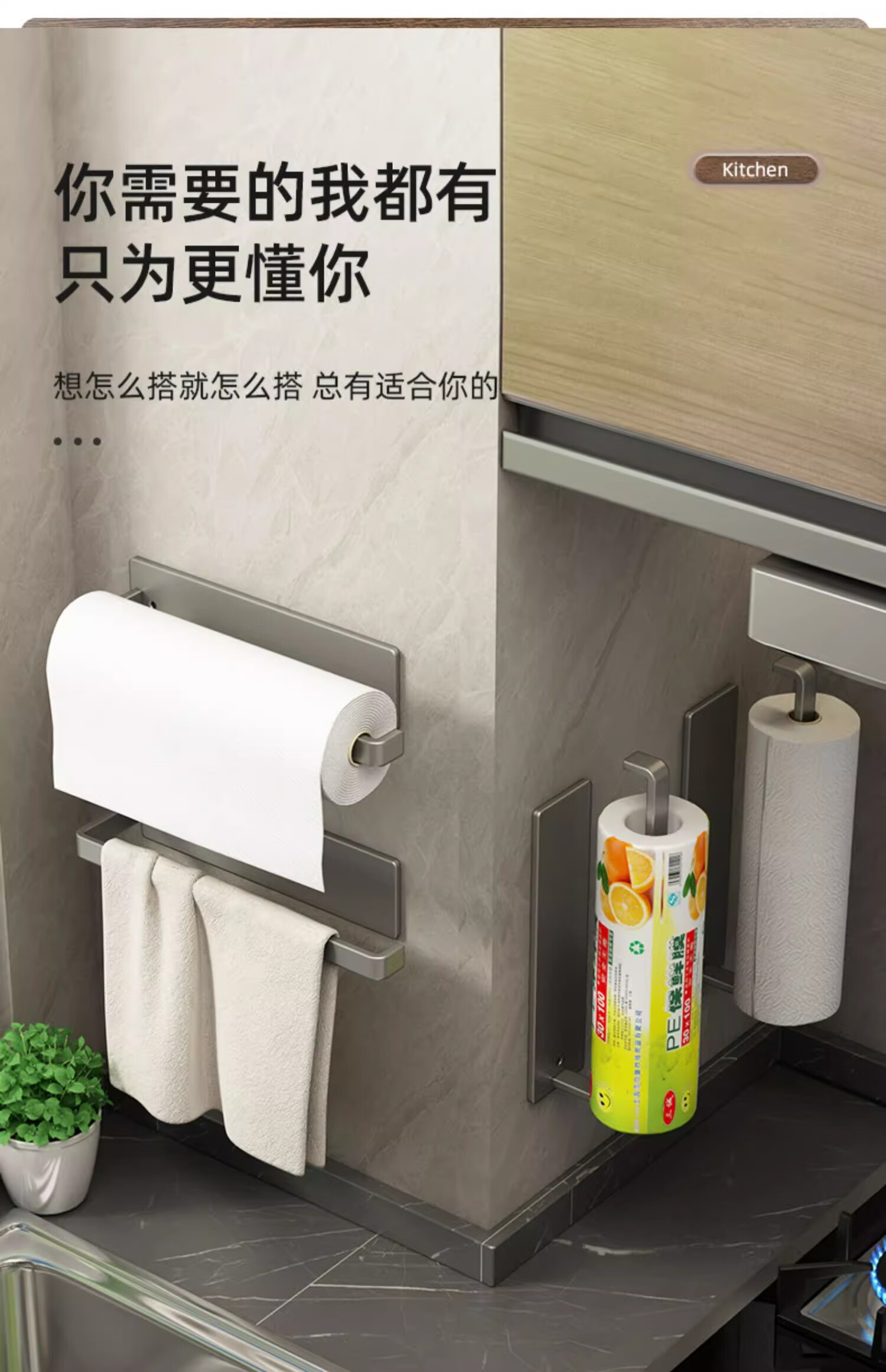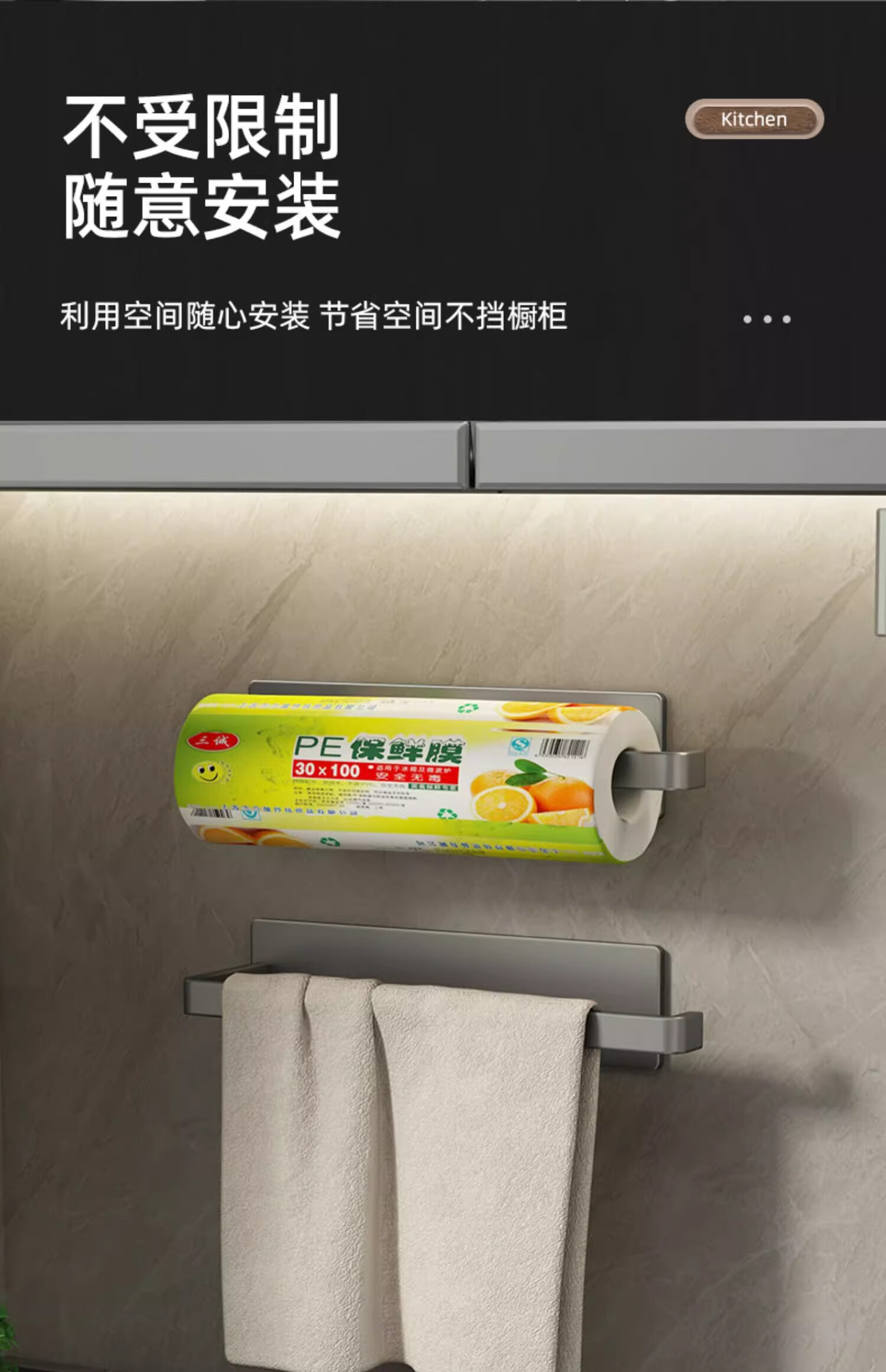 Added kitchen paper towel rack, household paper hanger, plastic wrap roll paper storage rack, wall-mounted punch-free lazy rag rack