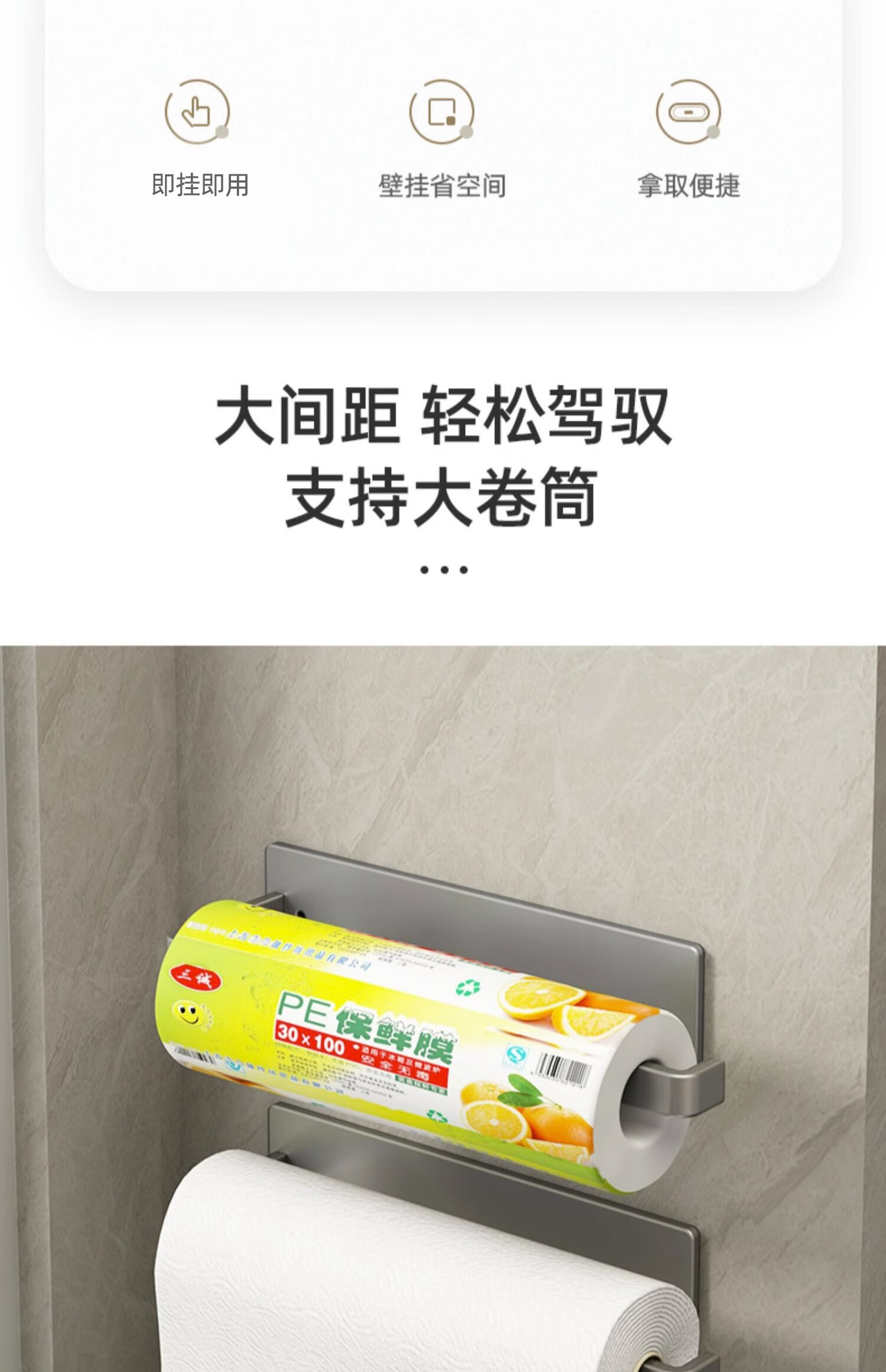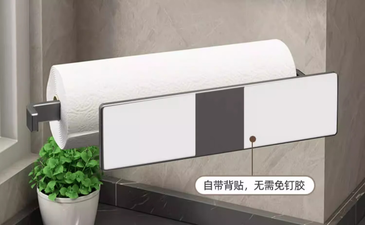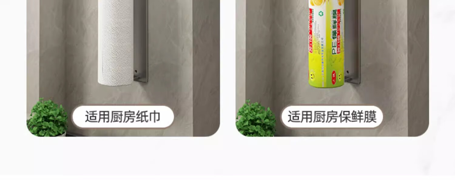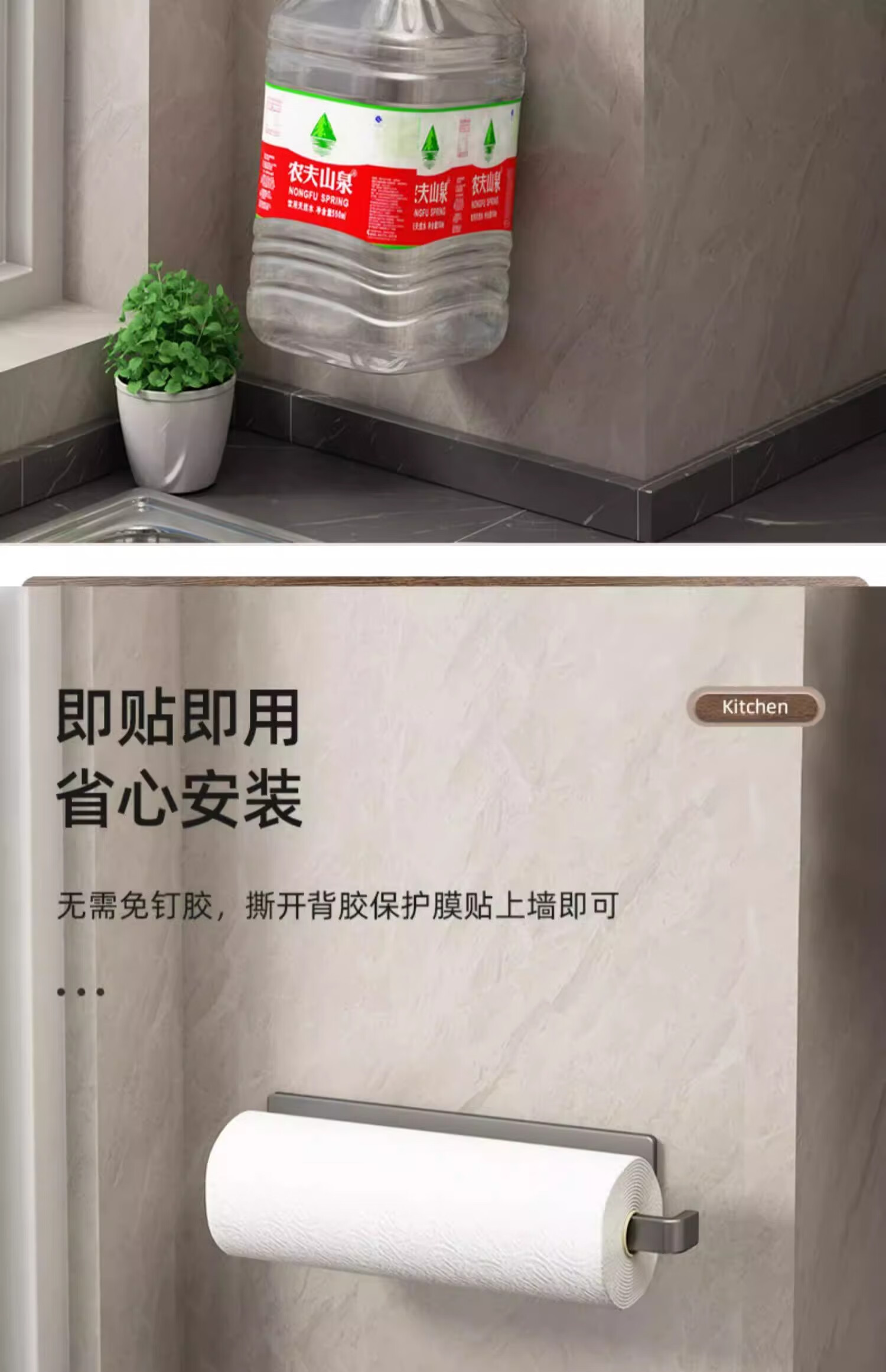 Added kitchen paper towel rack, household paper hanger, plastic wrap roll paper storage rack, wall-mounted punch-free lazy rag rack