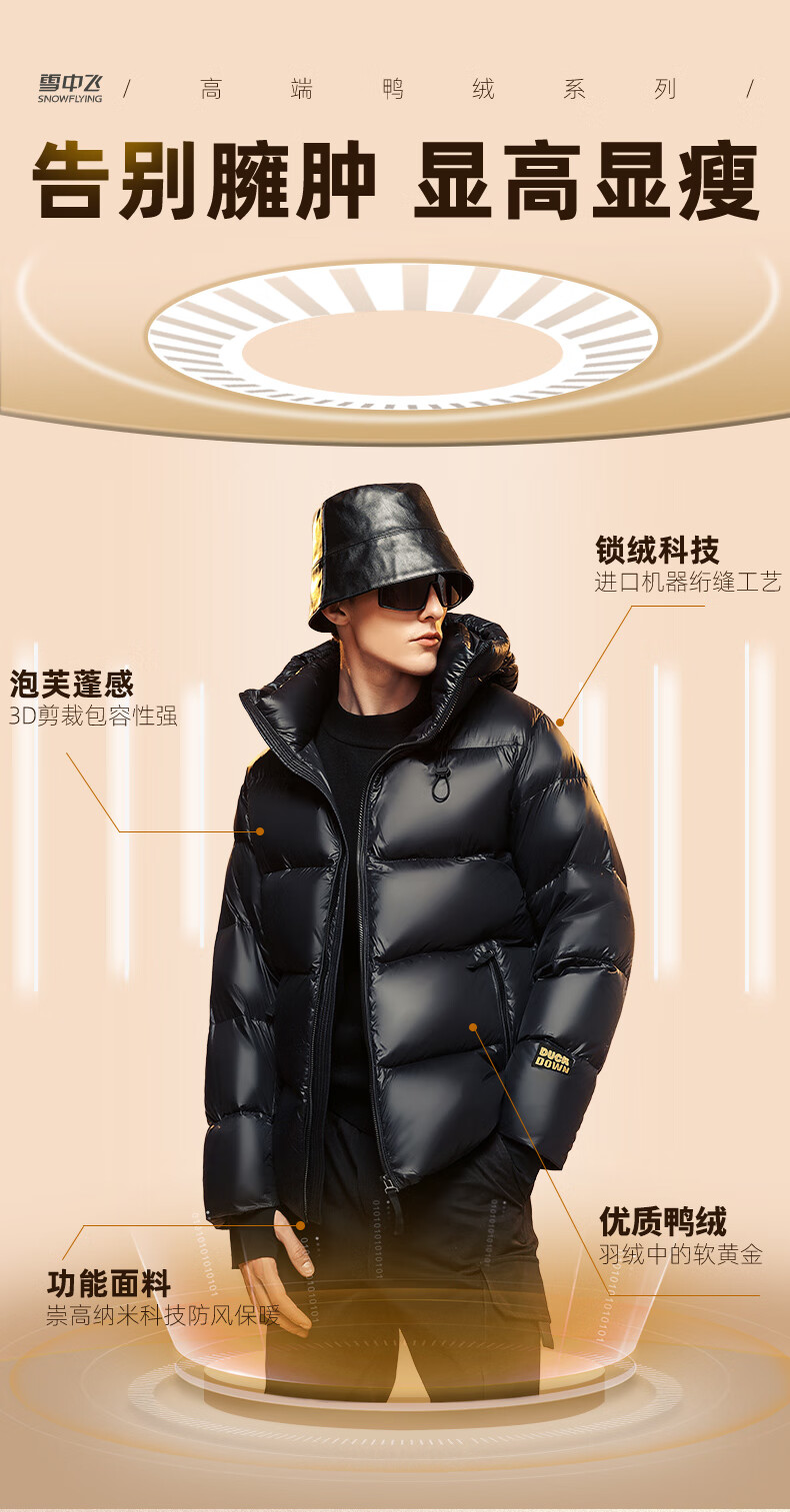 Flying in the snow cold-proof series autumn and winter new down jackets for men and women, hooded warm and cold-resistant casual couple jackets