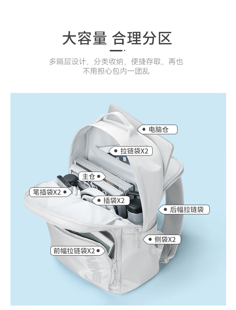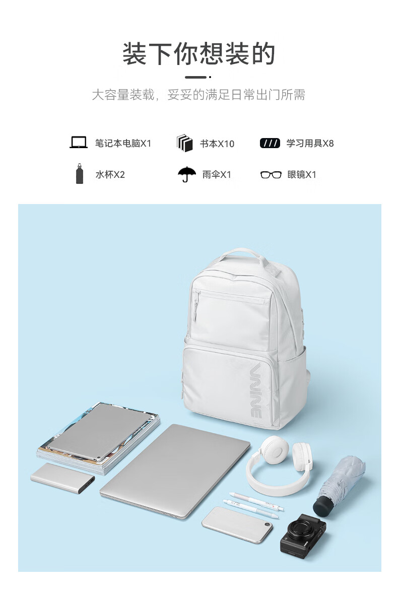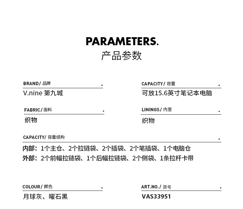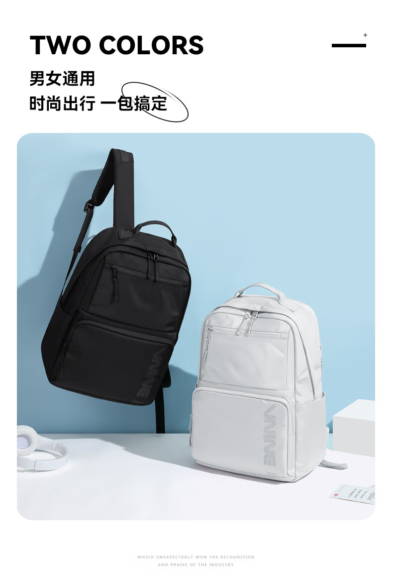 The9 (V.NINE) Backpack Computer Bag Men's Backpack Business Middle School Student Bag Female High School Student College Backpack Obsidian Black